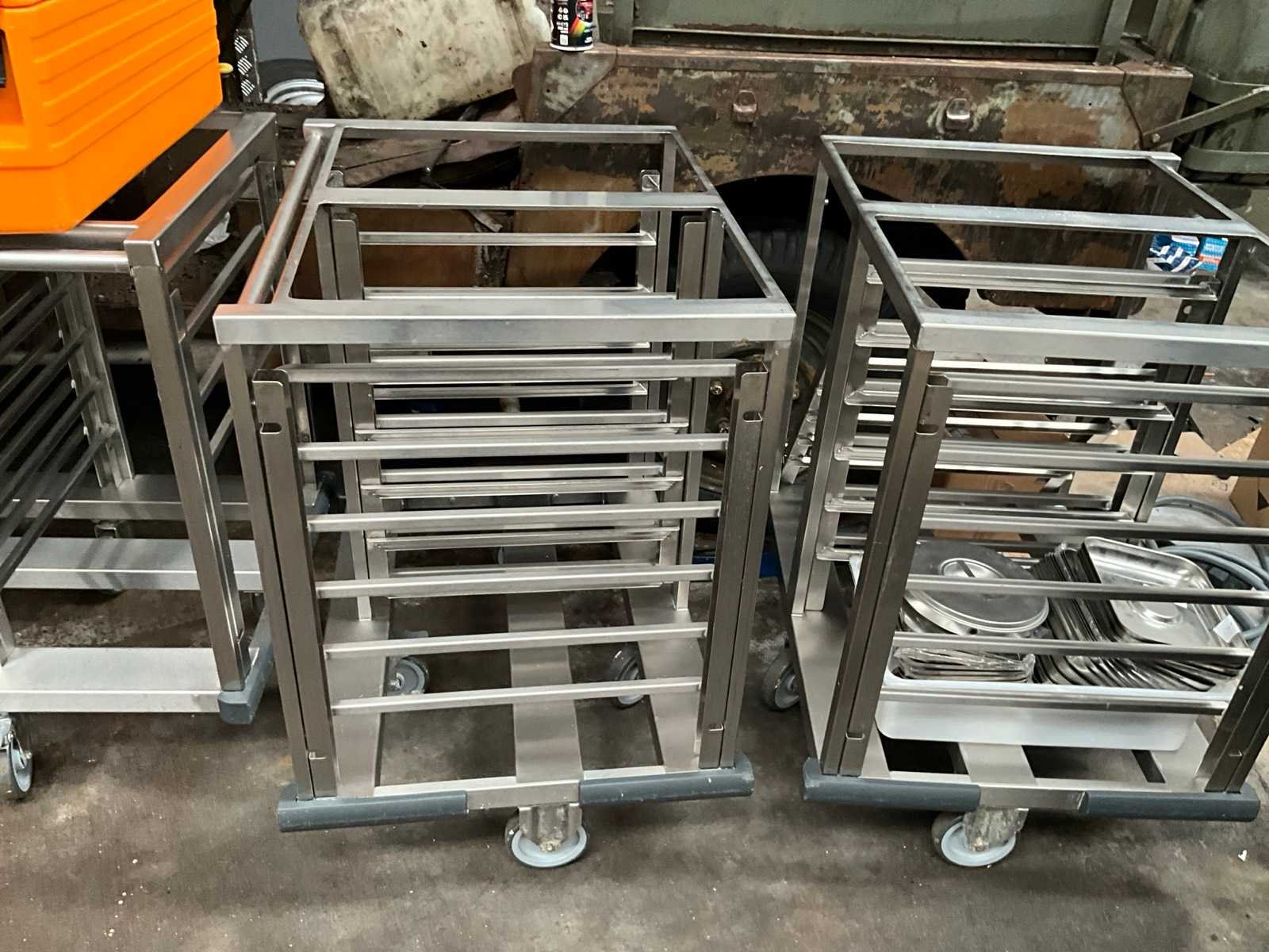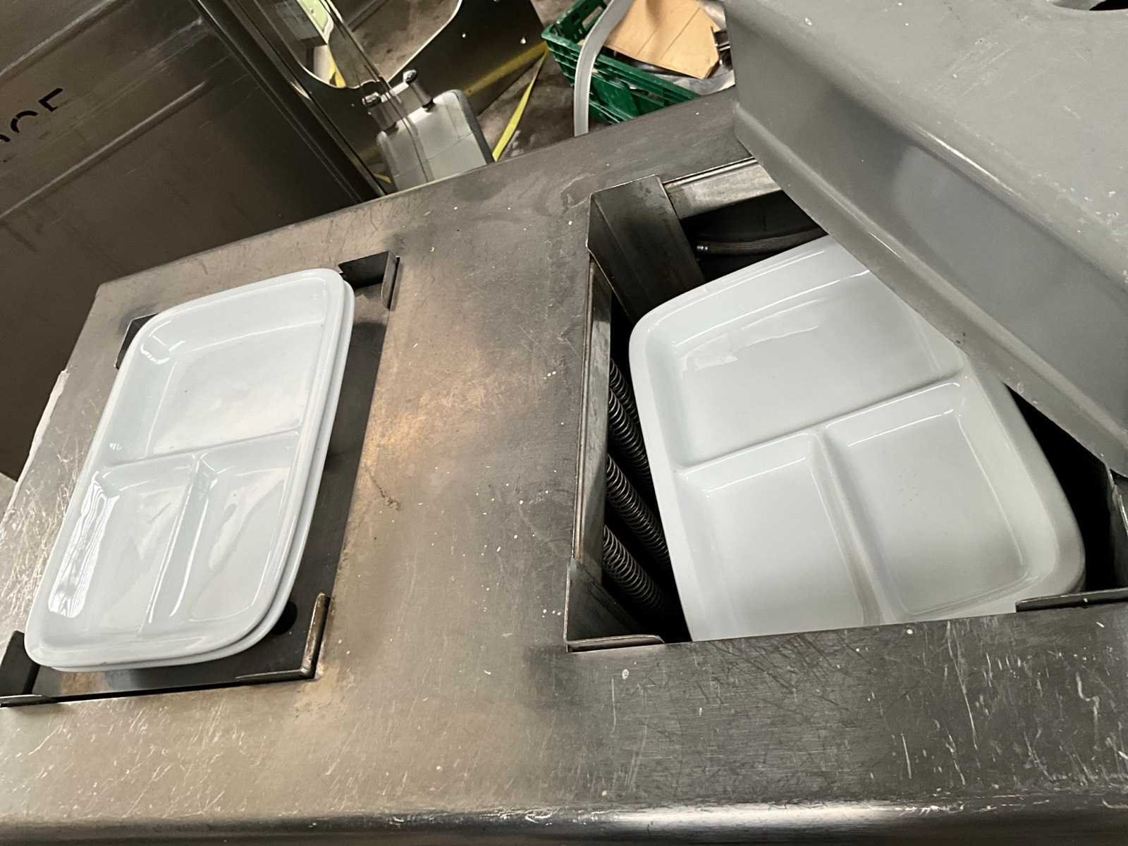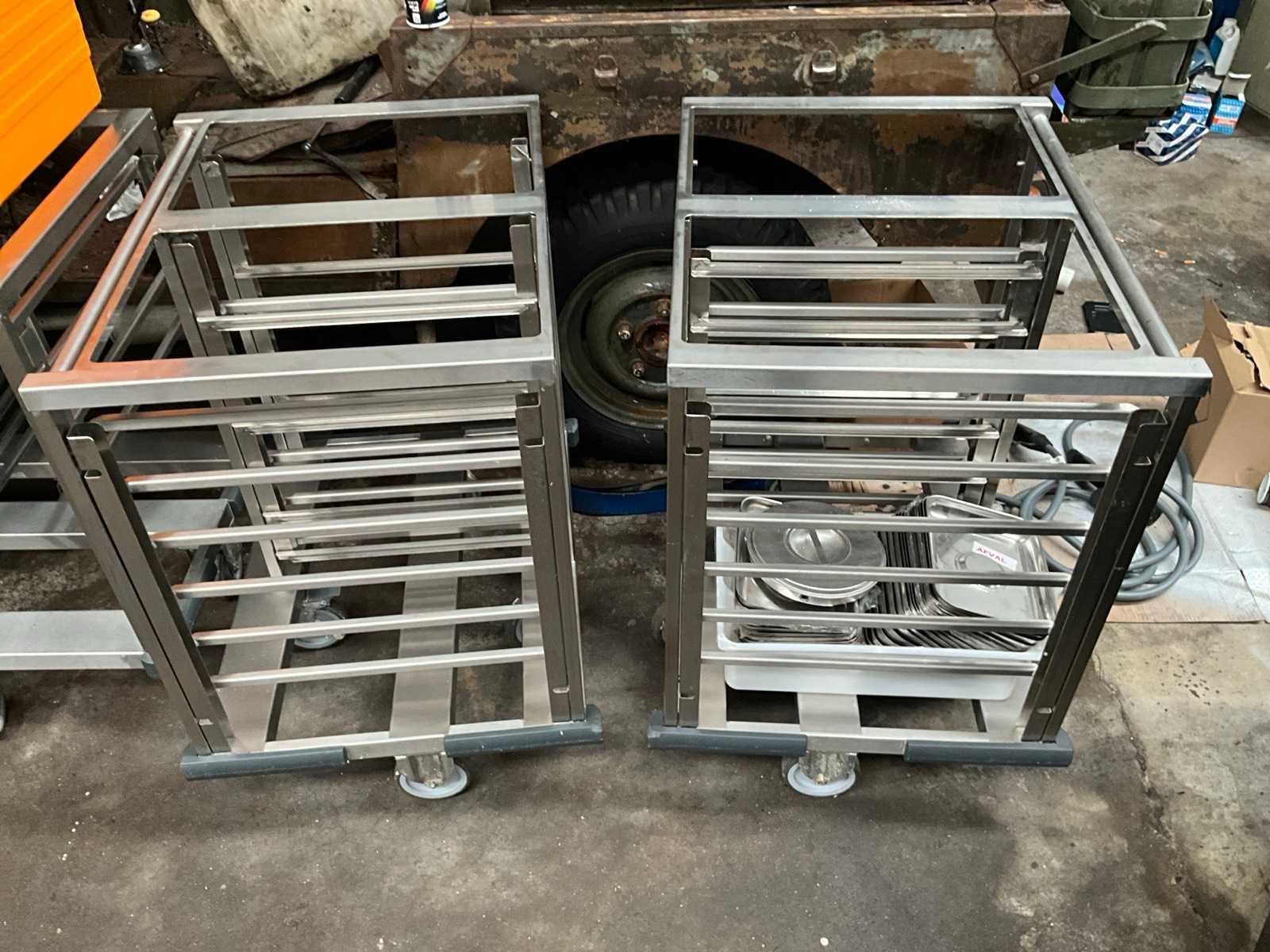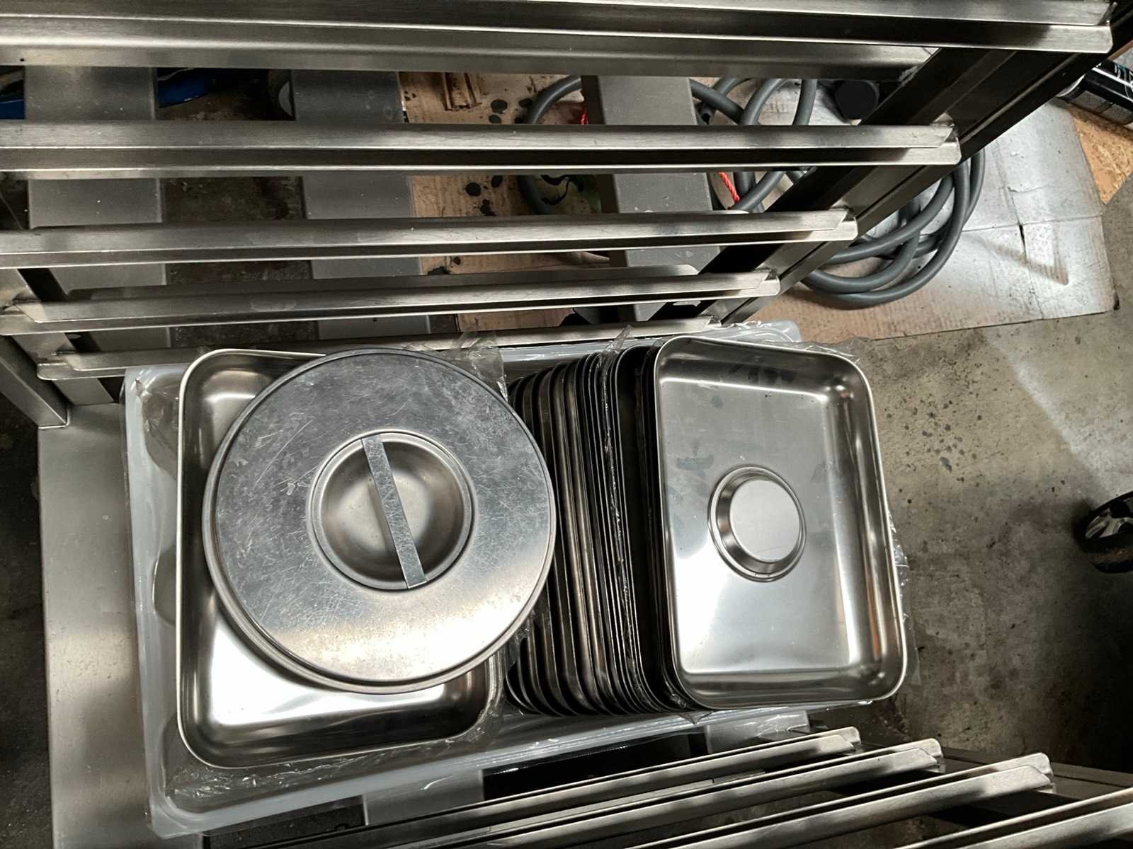 Waaronder 3 mobiele onderstellen, een stoomoven, warm/koud hou machine, bordverwarmers met borden en diverse plateaus en 3 warmte houders. ( + diverse extra’s) Nee