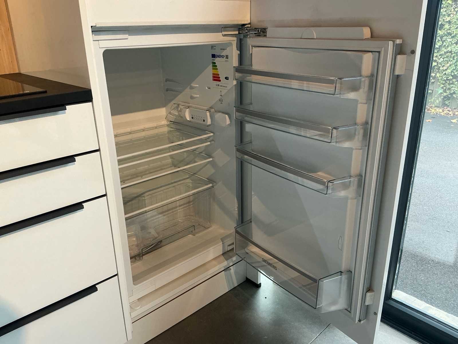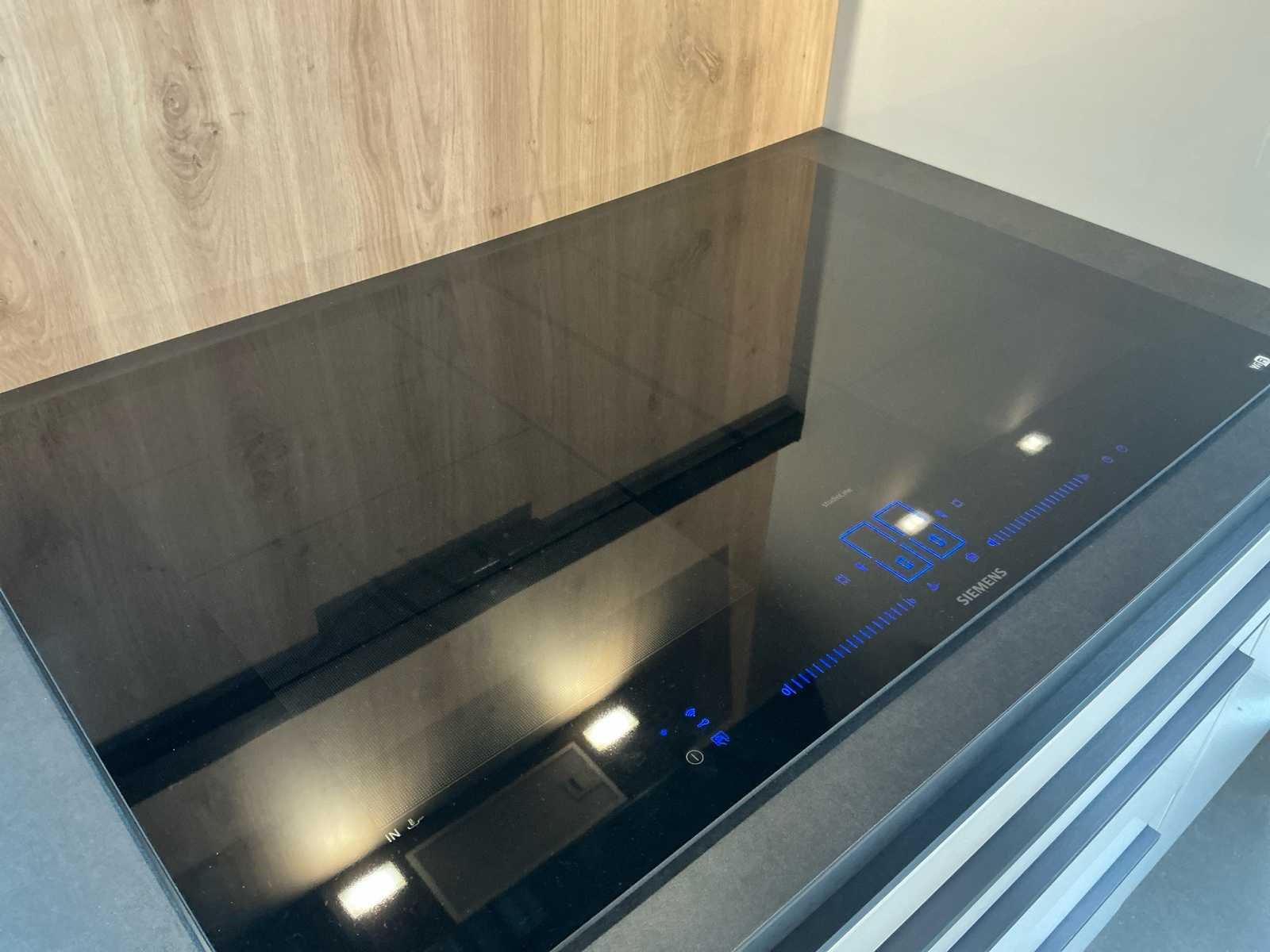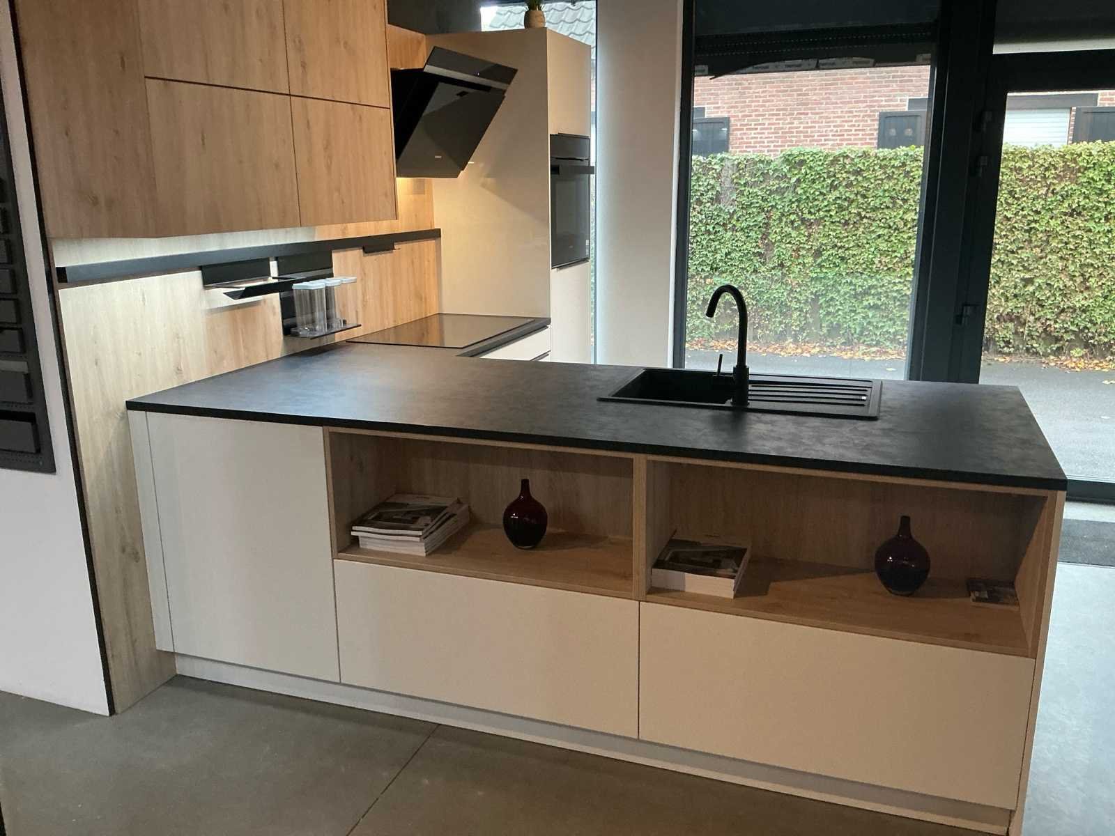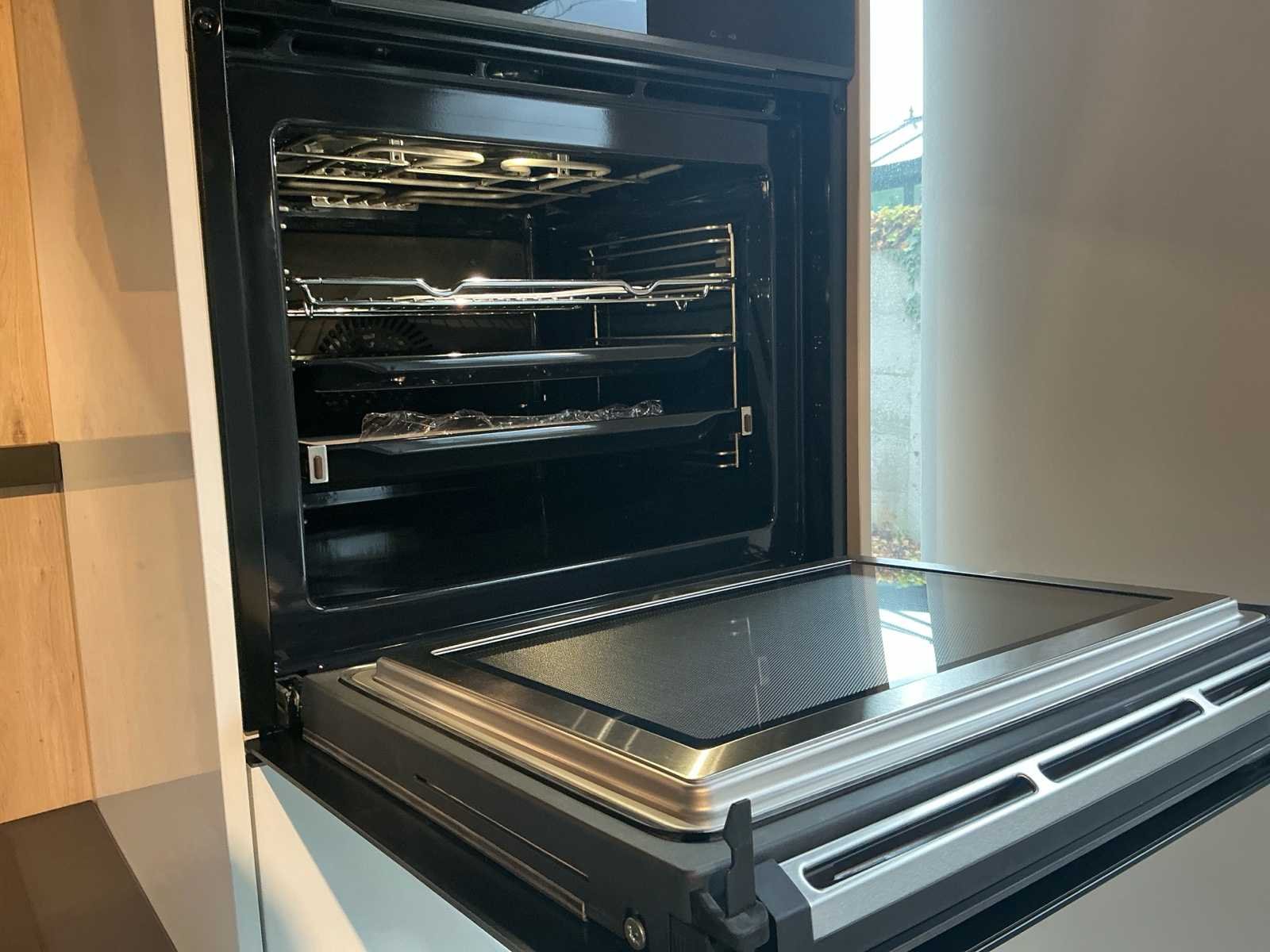 Zelf te demonteren Ophaling 5 Januari 2026 Scandinavische designkeuken – Siemens & Bosch premium Strak kristalwit hoogglans laminaat, geplamuurd beton-look werkblad. Achterwand, bovenkasten & regalen in warm licht eiken. Le Mans-hoekonderkast + alle deuren soft-close. Massief houten bestekindeling. Toestellen (inbouw, ongebruikt): Siemens LC87KHM60 schuine wandafzuigkap Siemens KI18RNFF2 inbouwkoelkast Siemens EX877NYV6E 80cm flex-inductie Siemens HM936GCB1 combi-oven/magnetron Bosch SMV6EB800E volledig geïntegreerde vaatwasser No Merk: Hacker Model: Concept Type keukenopstelling: L-vormig Kraan: Blanco Mida Gootsteen: Blanco Legra 6 Werkblad hoogte: 930cm Aanrechtblad: Laminaat Magnetron: Siemens Fornuis: Inductie siemens Koelkast: Siemens Oven: Siemens Vaatwasser: Bosch Hoofdkleur: Glans wit / Wit eik Style: Scandinavisch Kleur: Wit/Licht eik Materiaal: Laminaat