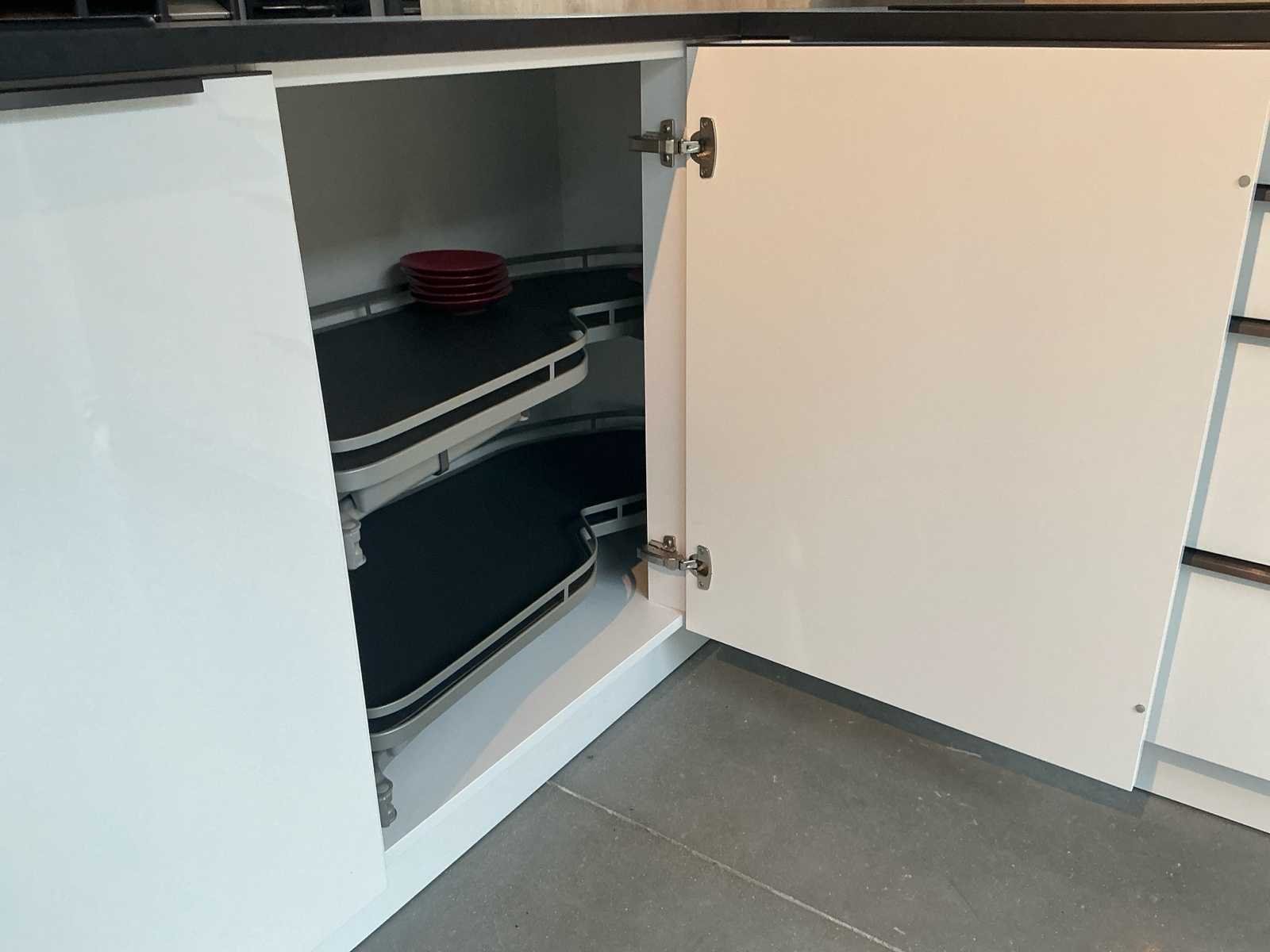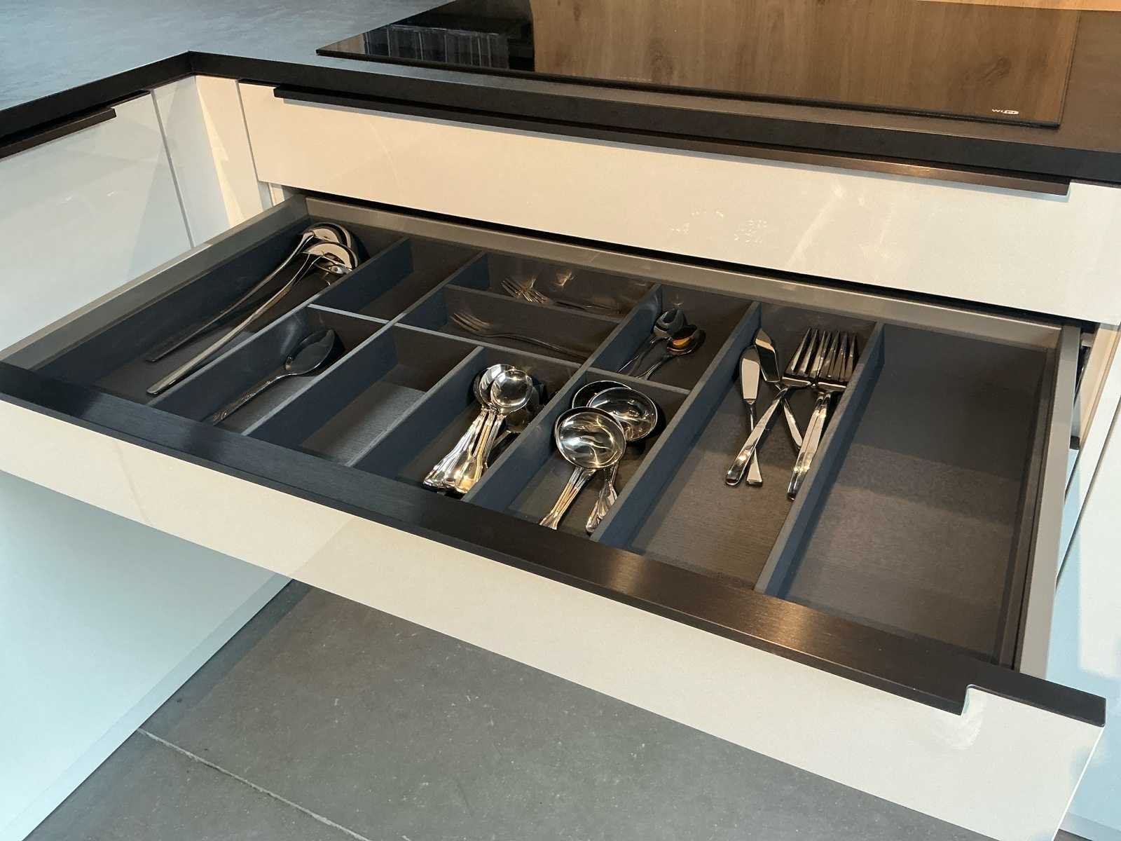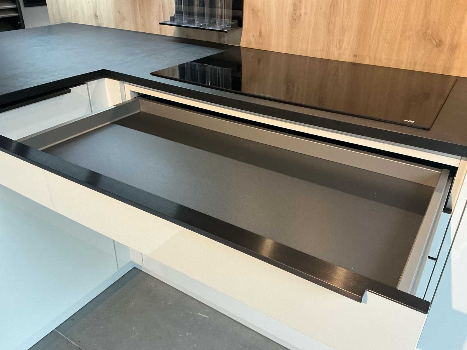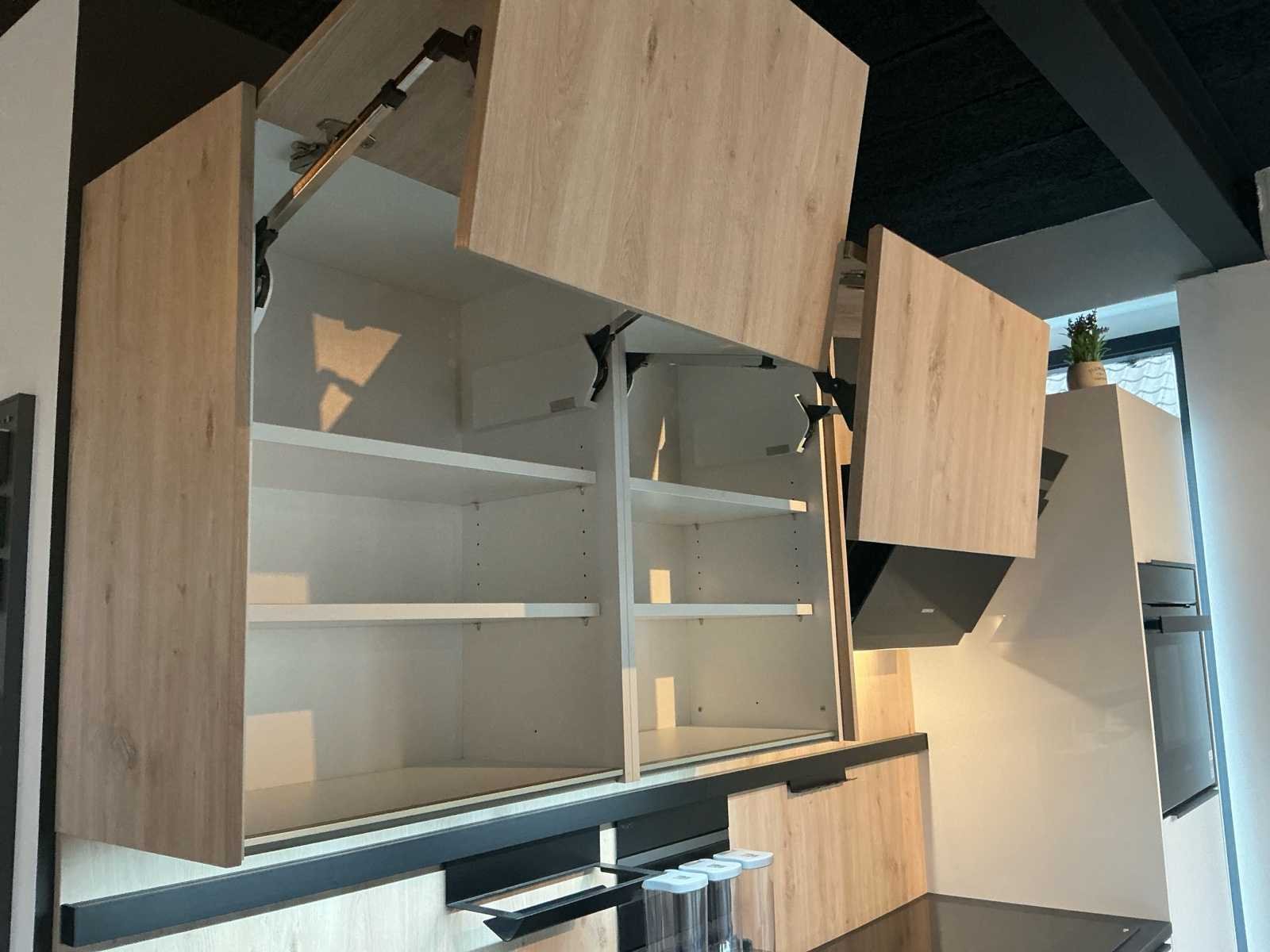 Zelf te demonteren Ophaling 5 Januari 2026 Scandinavische designkeuken – Siemens & Bosch premium Strak kristalwit hoogglans laminaat, geplamuurd beton-look werkblad. Achterwand, bovenkasten & regalen in warm licht eiken. Le Mans-hoekonderkast + alle deuren soft-close. Massief houten bestekindeling. Toestellen (inbouw, ongebruikt): Siemens LC87KHM60 schuine wandafzuigkap Siemens KI18RNFF2 inbouwkoelkast Siemens EX877NYV6E 80cm flex-inductie Siemens HM936GCB1 combi-oven/magnetron Bosch SMV6EB800E volledig geïntegreerde vaatwasser No Merk: Hacker Model: Concept Type keukenopstelling: L-vormig Kraan: Blanco Mida Gootsteen: Blanco Legra 6 Werkblad hoogte: 930cm Aanrechtblad: Laminaat Magnetron: Siemens Fornuis: Inductie siemens Koelkast: Siemens Oven: Siemens Vaatwasser: Bosch Hoofdkleur: Glans wit / Wit eik Style: Scandinavisch Kleur: Wit/Licht eik Materiaal: Laminaat