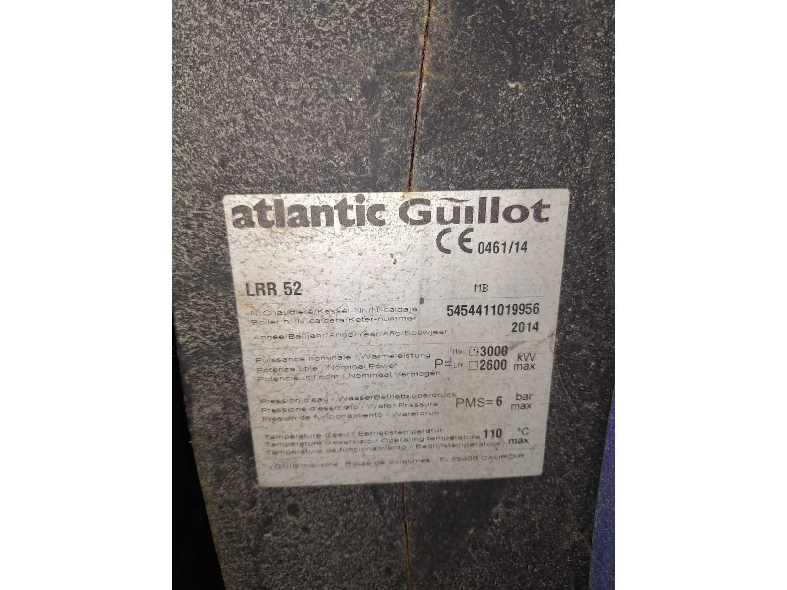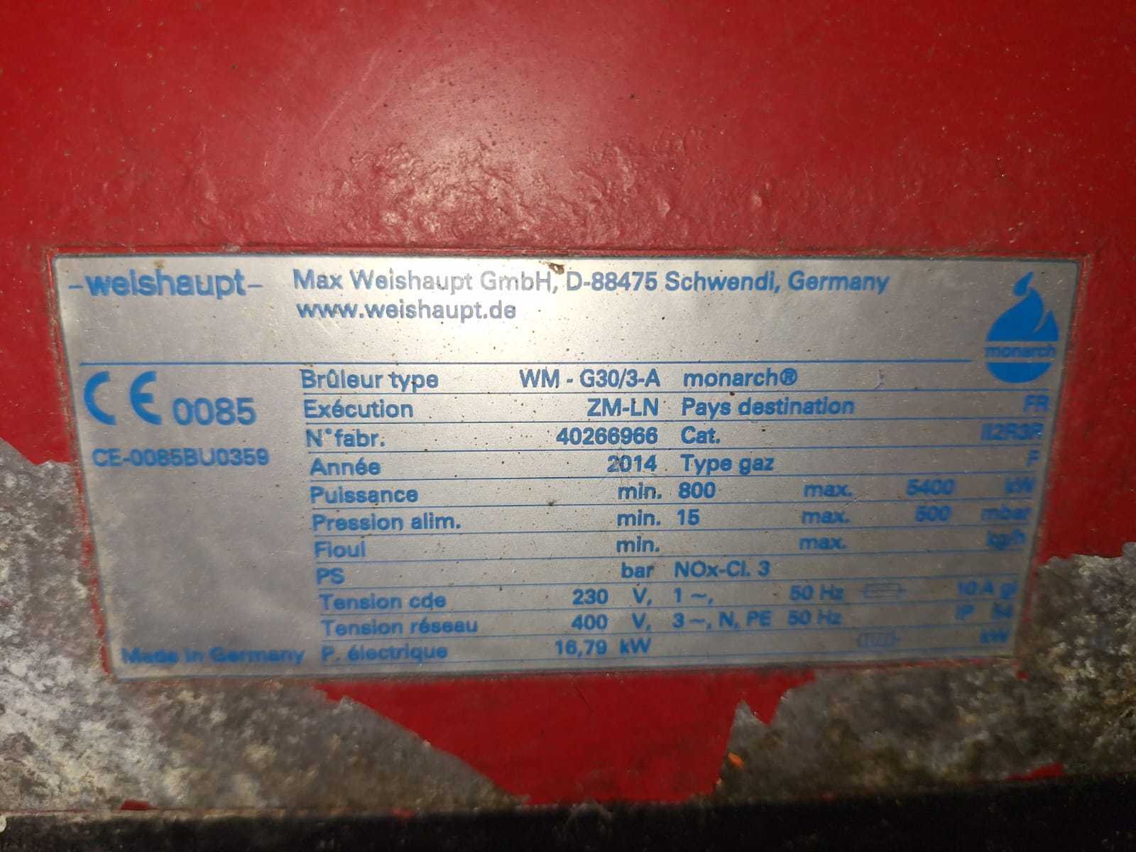 Atlantic Guillot horizontale industriële ketel type LRR 52, bedoeld voor de productie van industrieel warm water, geïnstalleerd in een overdekte technische ruimte. Het systeem is uitgerust met een Weishaupt gasbrander type WM-G30/3-A, gemonteerd aan de voorkant, met besturingskast, bedrading en zichtbare aansluitingen. De ketel wordt geleverd zoals te zien is op de foto's. 🔹 Technische gegevens – Ketel Merk: Atlantic Guillot Type / Model: LRR 52 Bouwjaar: 2014 Serienummer: 5454411019956 Maximaal nominaal vermogen: 3.000 kW Bruikbaar vermogen ca.: 2.600 kW Maximale werkdruk: 6 bar Maximale bedrijfstemperatuur: 110 °C Vloeistof: heet water CE-markering: ja 🔹 Technische gegevens – Burner Merk: Weishaupt Type: WM-G30/3-A Uitvoering: ZM-LN Jaar: 2014 Productienummer: 40266966 Energie: gas Voeding: Regeling: 230 V – 50 Hz Netwerk: 400 V – 50 Hz Mogelijkheid om een dubbele brandstofbrander te hebben Non Merk: Atlantic Guillot Type: LRR 52 Bouwjaar: 2014 Serienummer: 5454411019956 Vermogen: 3000kW