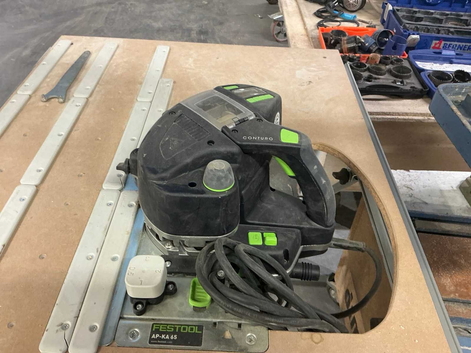 Voorzien van opplooibare tafel; inclusief accessoires en 3 kunststof machinekoffers Nee Merk: Festool Type: AP-KA 65 Aansluiting: 230V Afmeting l: 750mm Afmeting b: 1130mm Afmeting h: 900mm