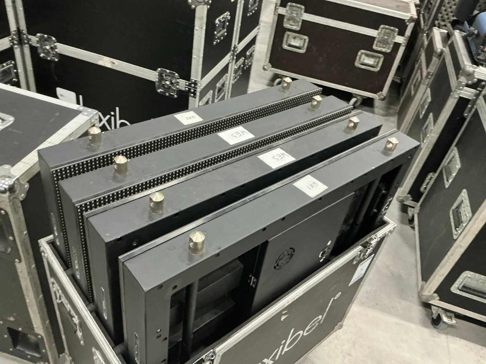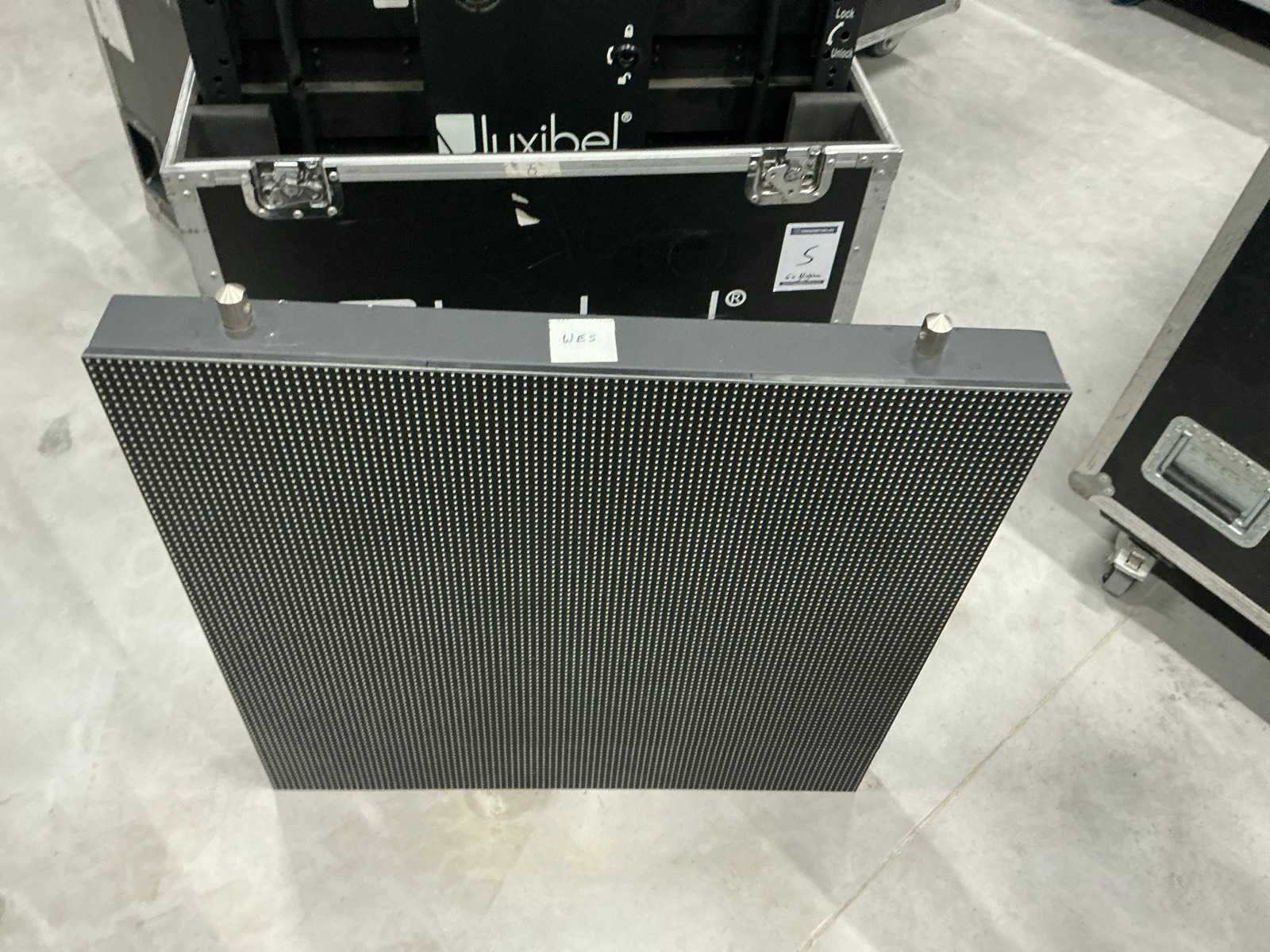 Bestaande uit 24 tegels, gestapeld in 6 flightcases/ inclusief: videoprocessor DMT Nee Merk: Luxibel Type: P8 Indoor: true Aansluiting: 230V Met flightcase: true Totale afmeting L: 770mm Totale afmeting Breedte: 770mm