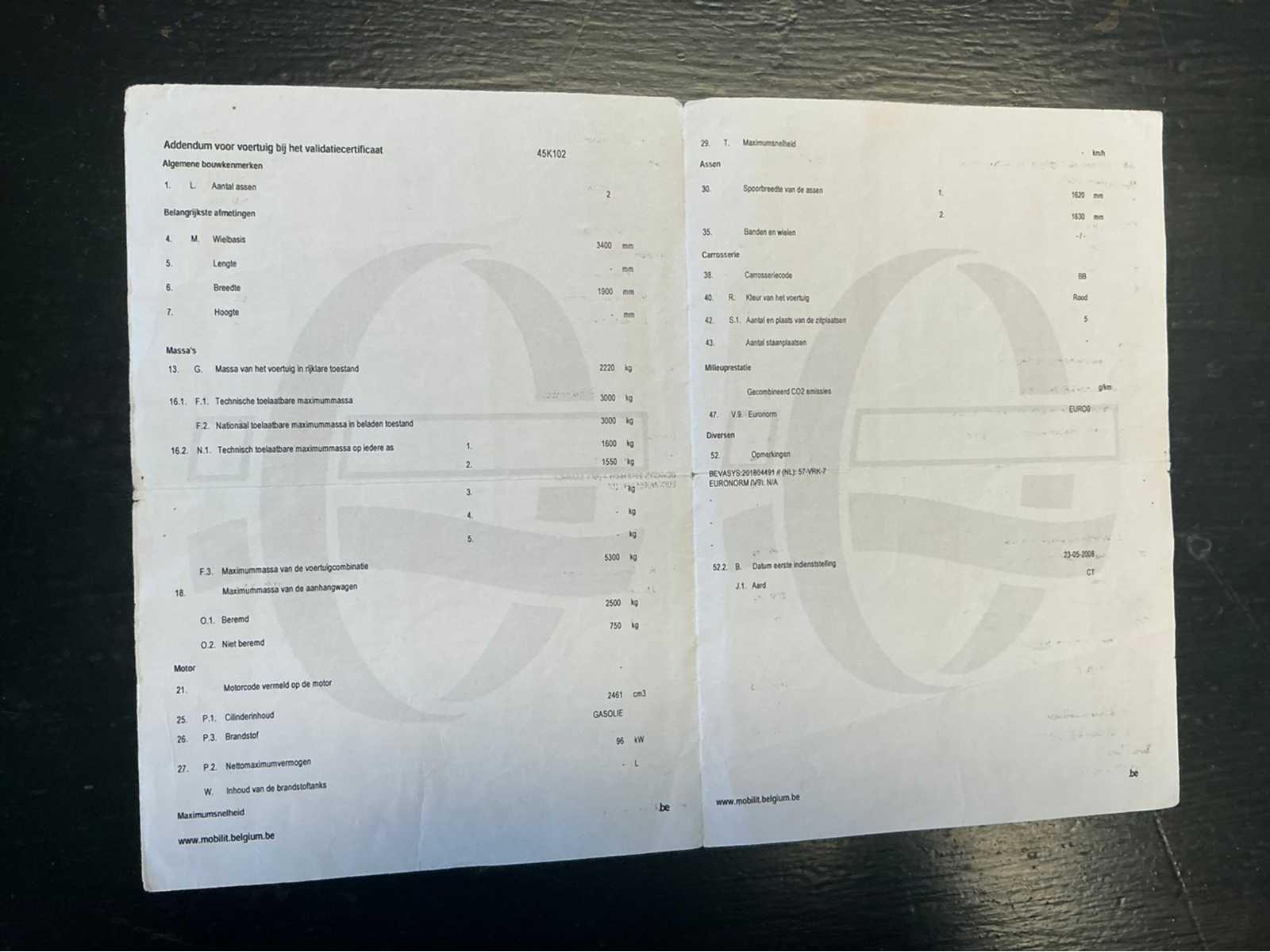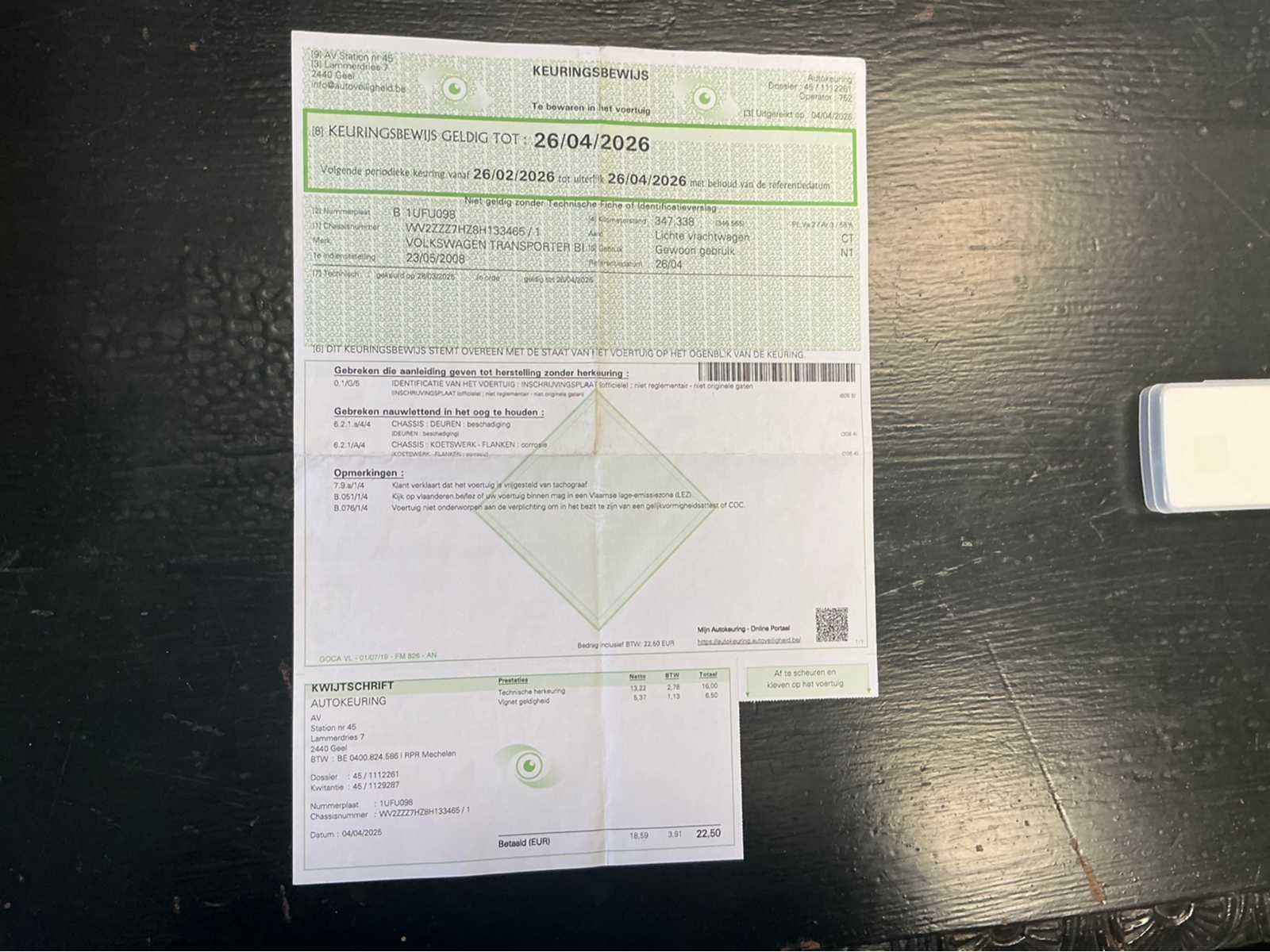 Reeds achterkant bewerkt voor eventueel slaapzone met speciale getinte ruiten. Nee Merk: Volkswagen Model: Transporteur Type: 4motion Bouwjaar: 2008 Cilinderinhoud: 2499cc Vermogen (kW): 96kW Brandstof: Diesel Chassisnummer: WV2ZZZ7HZ8H133465 Datum eerste toelating: 23/05/2008 Vermogen (pk): 130hp Aandrijving: Voorwielaandrijving Aantal zitplaatsen: 2 Maximaal trekgewicht ongeremd: 750kg Maximaal trekgewicht geremd: 2500kg Kleur: Rood-Bordeaux achtig Transmissie: Handgeschakeld Stuurwiel: Links Emissieklasse: Euro4 Aantal deuren: 4 Aantal sleutels: 2 Aantal cilinders: 4 Nationaliteit documenten: België Start en rijdt: Ja Keuringsrapport geldig tot: 26/04/2026 startinformatie : Ok Zichtbare schade: Zie foto’s Vavato voert geen technische keuring uit.: true Inschrijvingsbewijs - deel 1 : Aanwezig Inschrijvingsbewijs - deel 2: Aanwezig