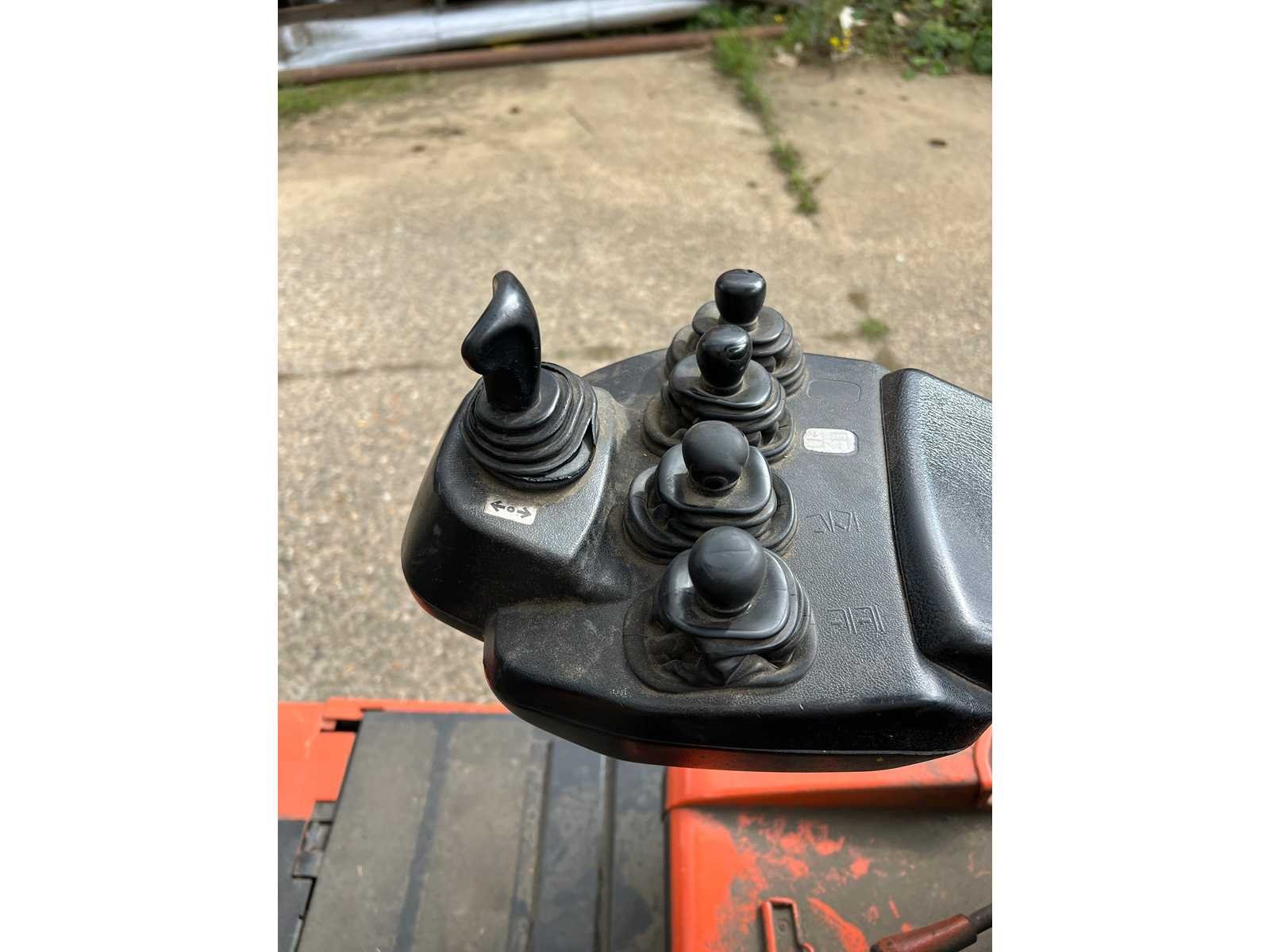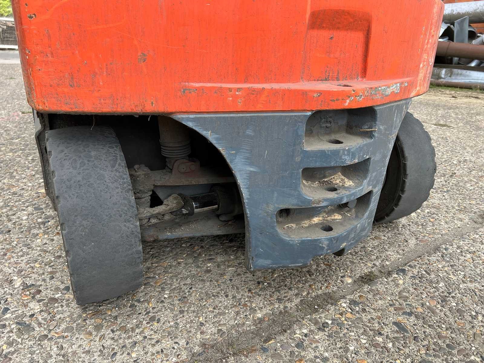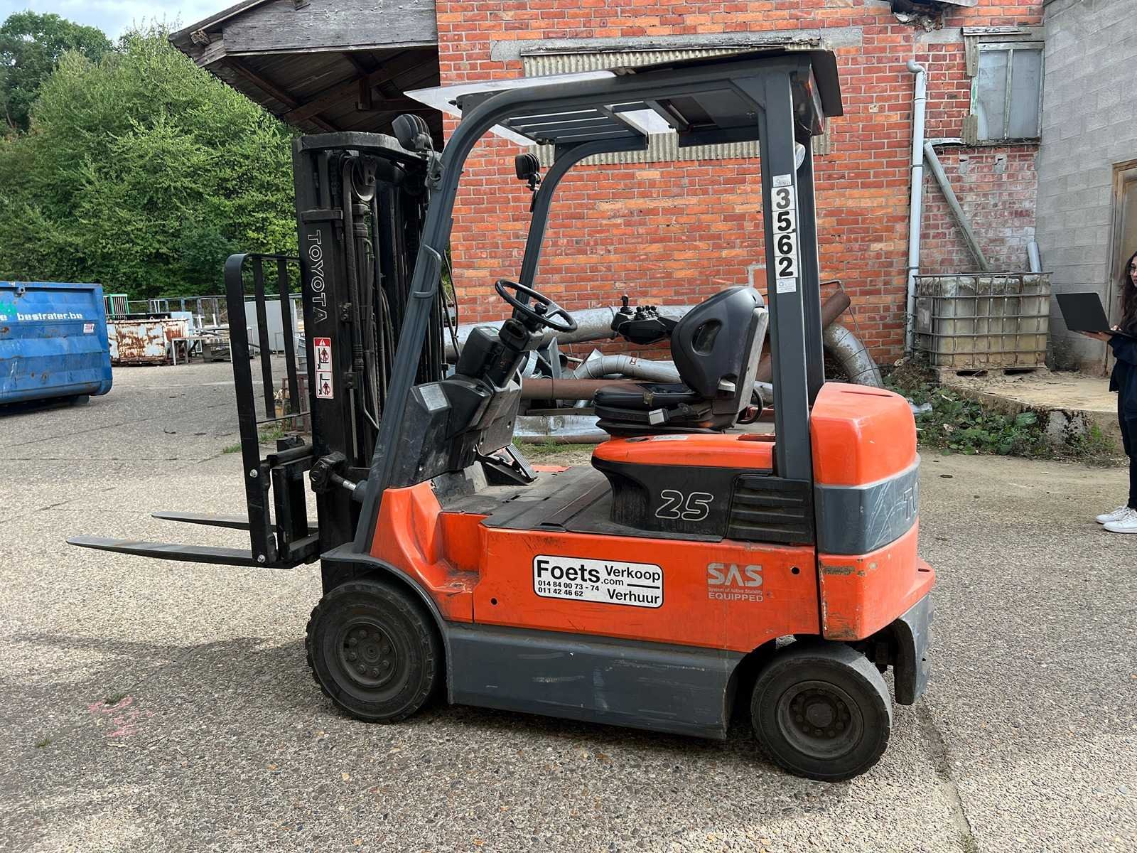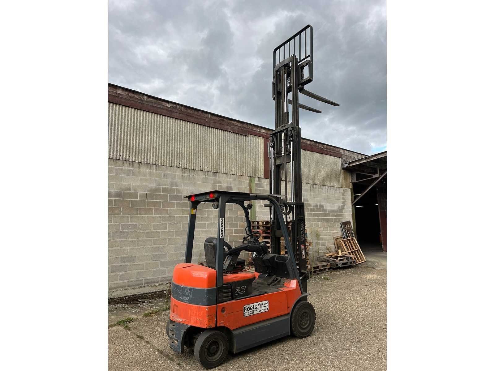Toyota 7FBMF25 elektrische heftruck. Degelijke en betrouwbare vorkheftruck uit de 7-serie van Toyota, ontworpen voor intensief gebruik in magazijnen en productiehallen. Uitgerust met drieweg hydrauliek en ergonomische bediening. Specificaties Fabrikant: Toyota Type: 7FBMF25 Uitvoering: Elektrische vorkheftruck, 4-wiel Hefvermogen: 2.500 kg Hefhoogte: ca. 3.000 – 4.700 mm (afhankelijk van masttype, standaard duplex/triplex) Doorrijhoogte: ca. 2.100 – 2.300 mm Aandrijving: elektrisch, 80V tractiebatterij Bediening: hydraulische hendels, stuurbekrachtiging Voorzien van: sideshift Gewicht (incl. batterij): ca. 4.000 – 4.500 kg Ophaling op afspraak na de 2e afhaaldag ( vanwege gebruik tijdens afhaaldagen). Nee Merk: TOYOTA Type: 7FBMF25 Bouwjaar: 2006 Serienummer: 7FBMF25 Brandstof: elektrisch Aantal wielen: 4 Afgelezen urenstand: 30812 Accu lader: true Eigen gewicht: 3230kg Hefvermogen: 2500kg Lepellengte: 1200mm Hefhoogte: 4700mm Luchtbanden: false Vol rubber banden: true Minimale doorrijhoogte: 2200mm Totale afmeting L: 3600mm Totale afmeting Breedte: 1200mm Totale afmeting Hoogte: 2200mm