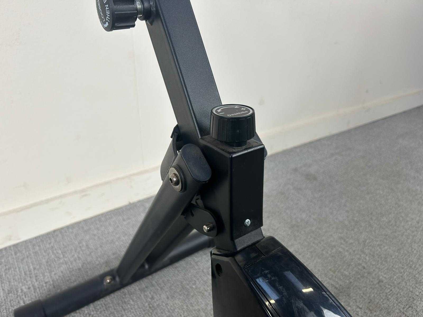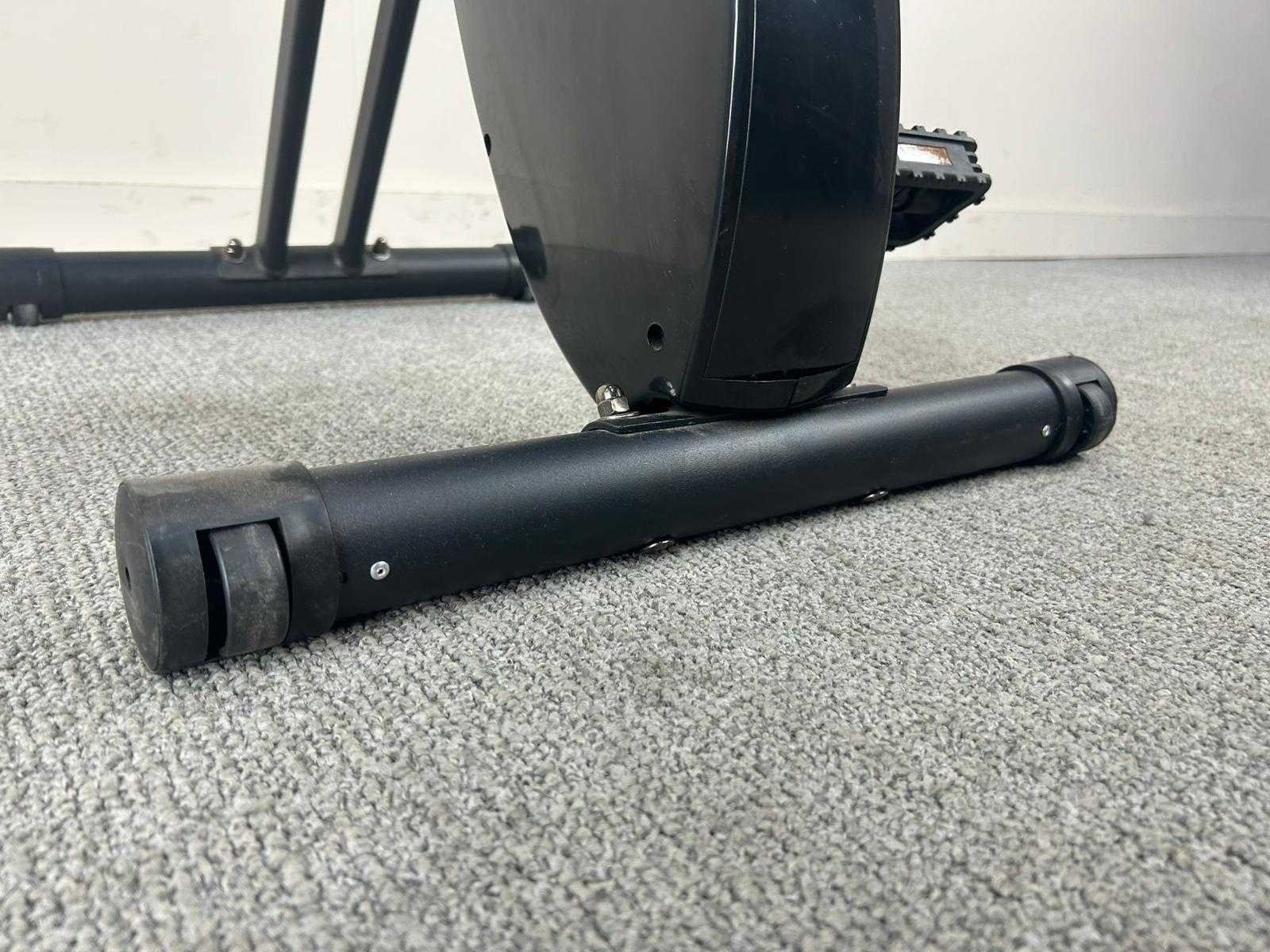 Omschrijving Compacte hometrainer, geschikt voor thuisgebruik of lichte professionele toepassingen (kantoor, fitnessruimte, revalidatie). Voorzien van verstelbaar zadel en stabiel frame. Eenvoudig en onderhoudsarm toestel. Kenmerken (zichtbaar) Type: hometrainer / fitnessfiets Weerstand: manueel instelbaar (draaiknop) Zadel: in hoogte verstelbaar Frame: metaal, zwart Pedalen: kunststof met antislip Aandrijving: gesloten behuizing Nee