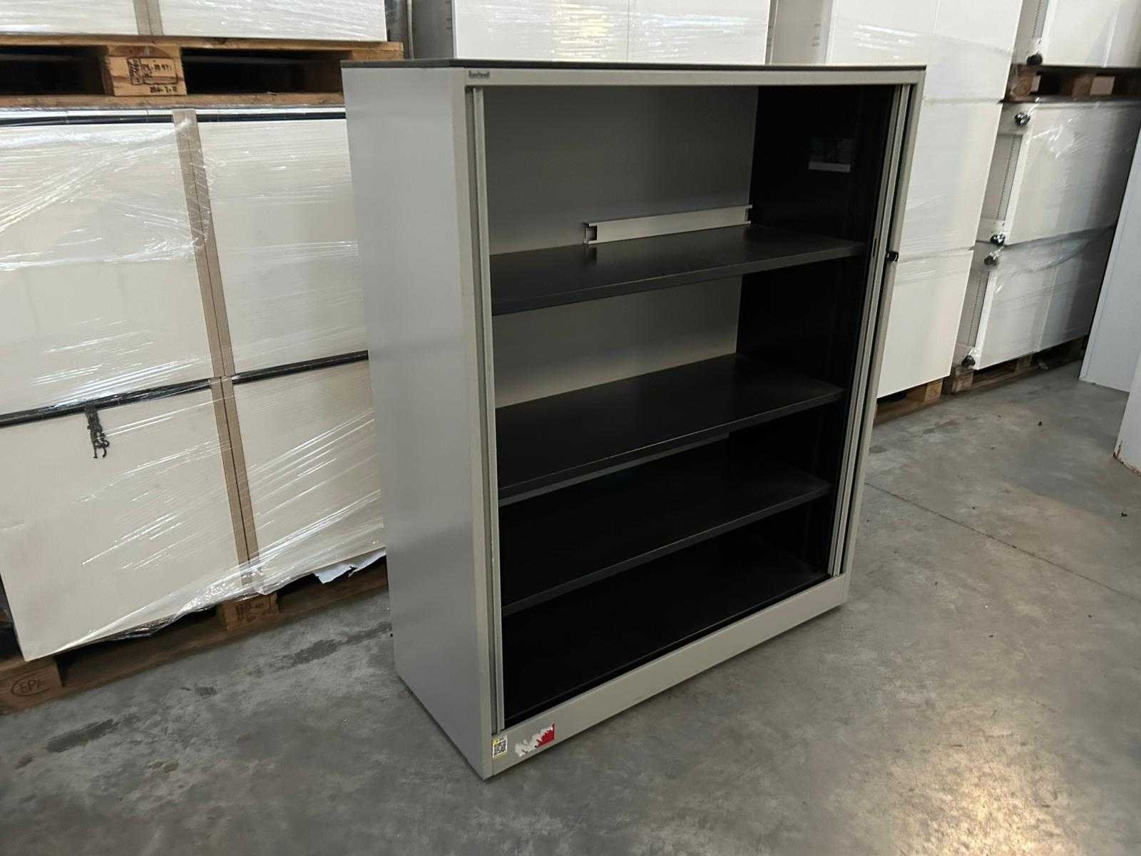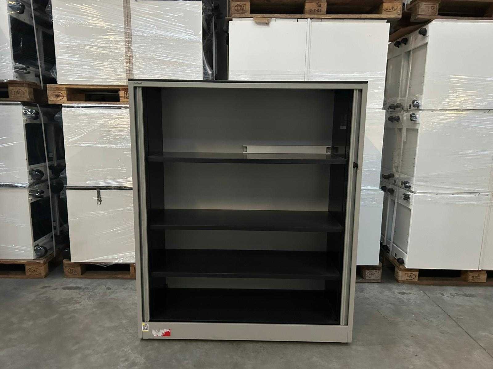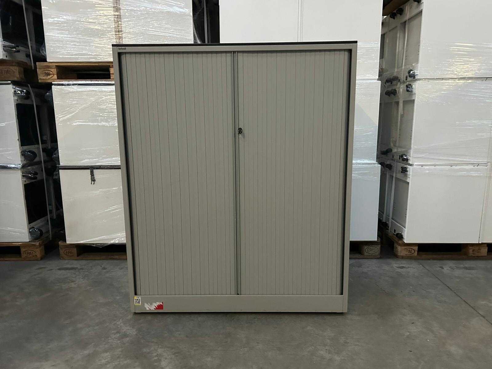 Metalen roldeurkast Ahrend met 3 leggers Nee Merk: Ahrend Type: Roldeurkast Kleur: Grijs Gewicht: 30kg Lengte: 120cm Breedte: 45cm Hoogte: 145cm Materiaal: Metaal