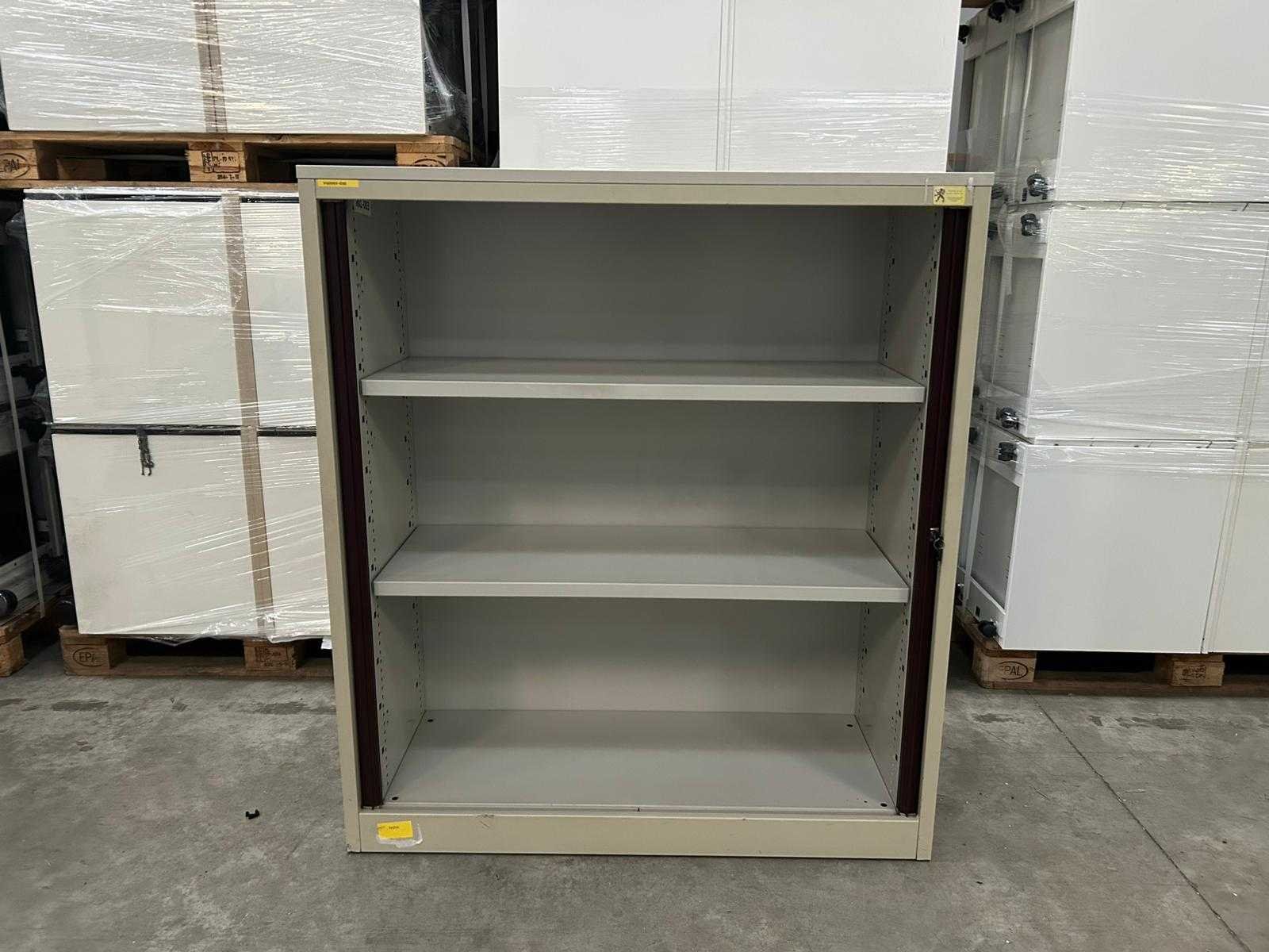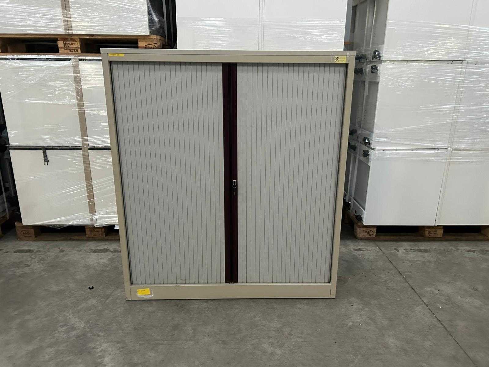 Halfhoge verticale roldeurkast Pami Grijs/bordeaux Nee Merk: Pami Lengte: 120cm Breedte: 45cm Hoogte: 135cm Materiaal: Metaal