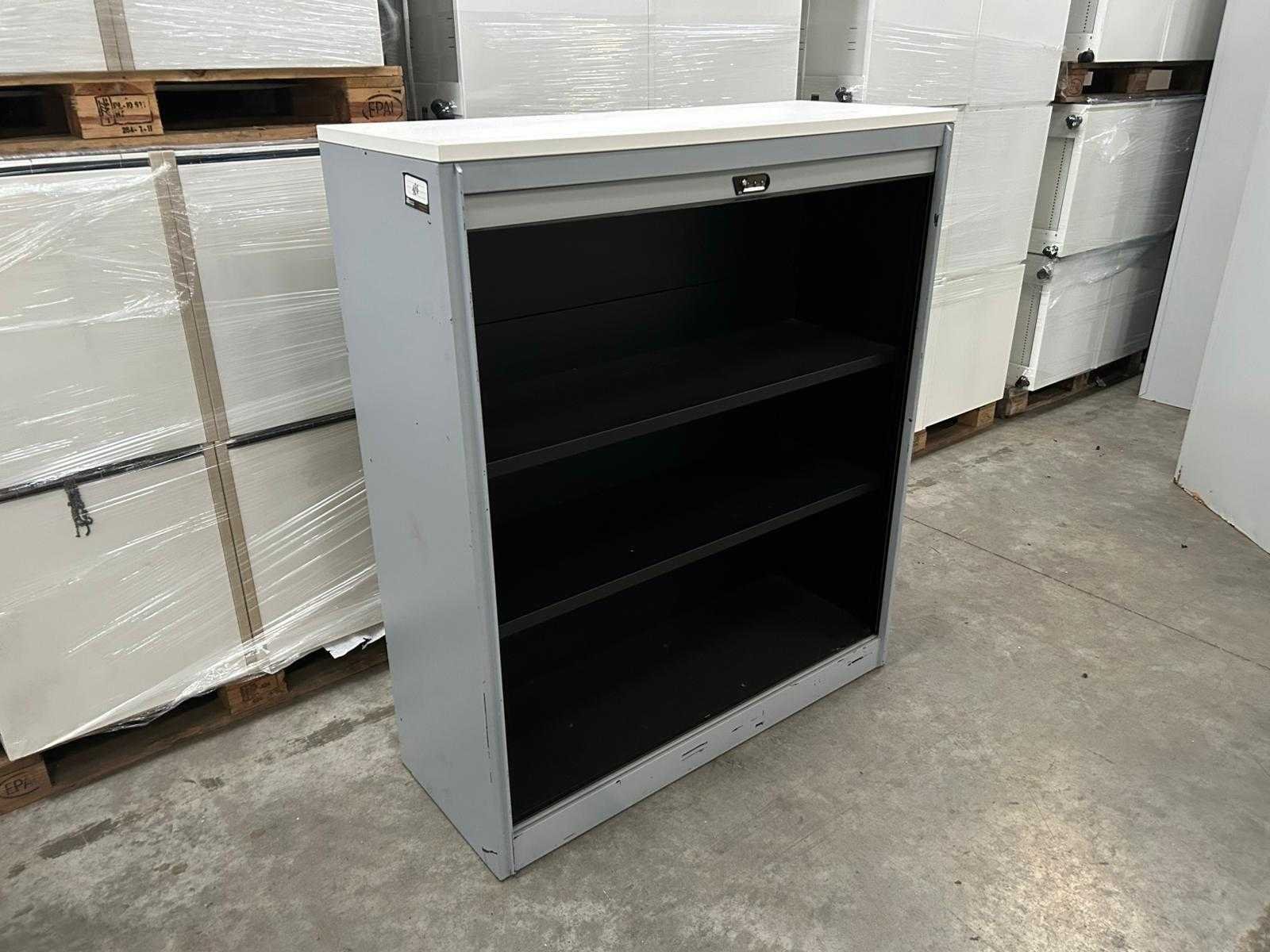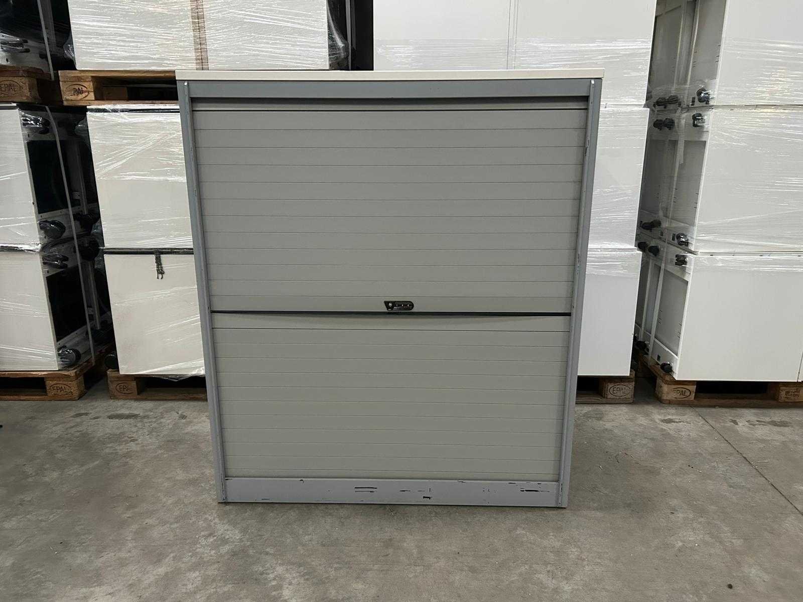 Bulo Halfhoge roldeurkast met 2 leggers Nee Merk: Bulo Type: Roldeurkast Kleur: Grijs Gewicht: 30kg Lengte: 120cm Breedte: 48cm Hoogte: 140cm Materiaal: Metaal