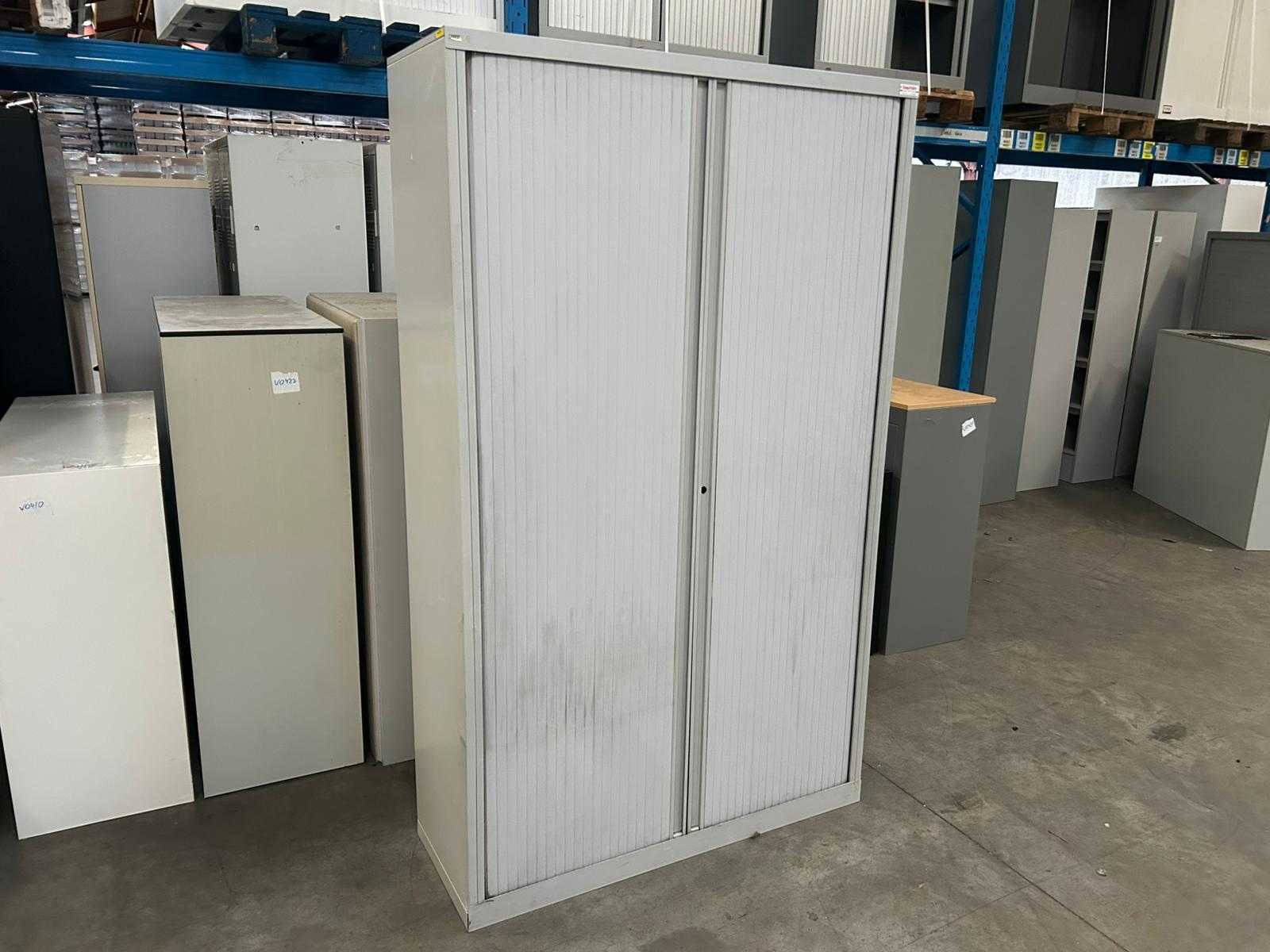 Hoge metalen dossierkast Vinco met 4 leggers Nee Merk: Vinco Type: Roldeurkast Lengte: 120cm Breedte: 42cm Hoogte: 198cm Materiaal: Metaal