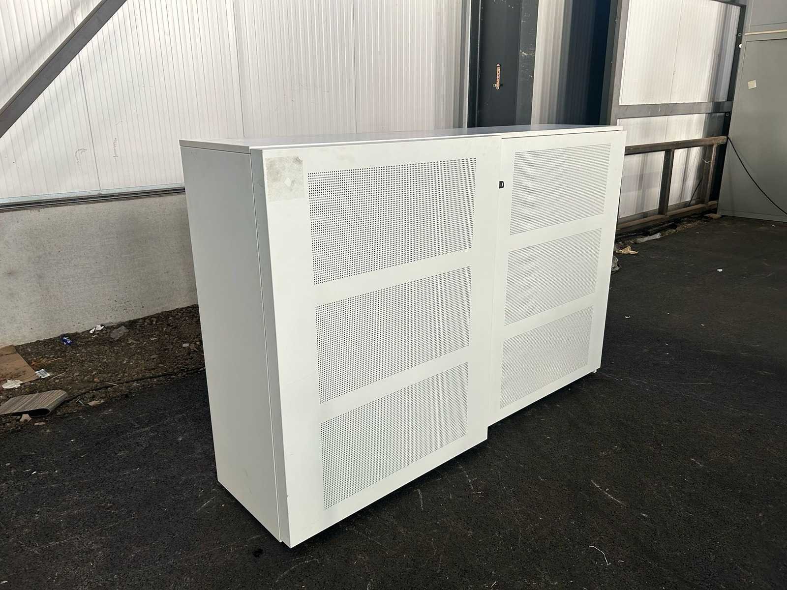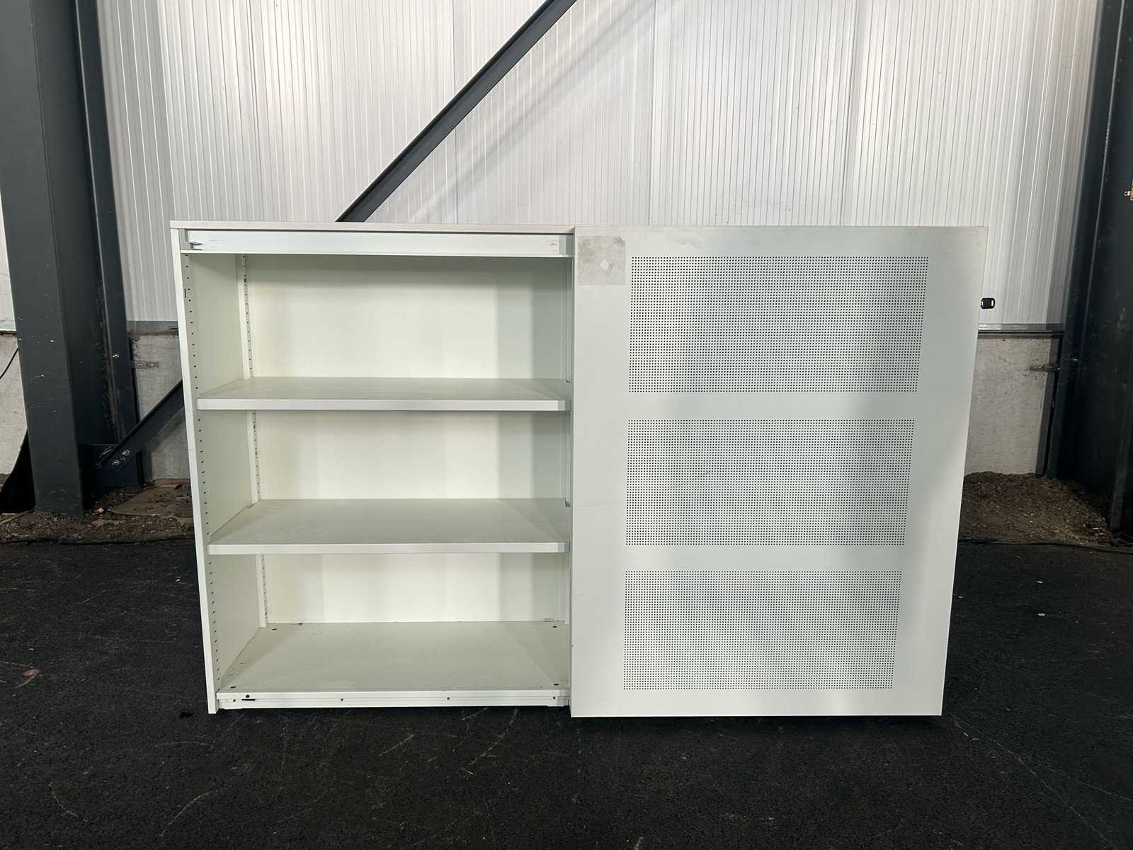 Schuifdeurkast Ahrend, met 2 leggers per zijde, sleutel is niet gegarandeerd, gebruiksporen aanwezig Nee Merk: AHREND Model: schuifdeurkast Kleur: wit Gewicht: 60kg Breedte: 180cm Hoogte: 120cm Diepte: 48cm Materiaal: metaal
