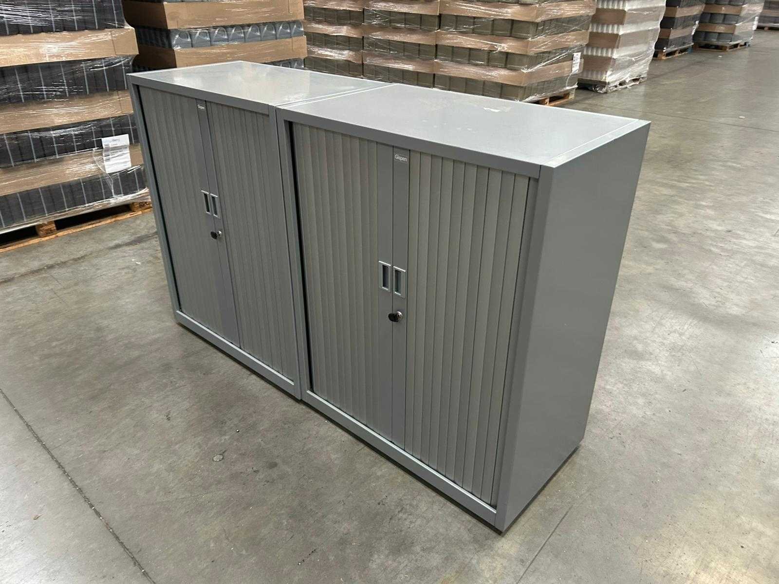 Kenmerk Omschrijving Merk Gispen Model Metalen roldeurkast, halfhoog Materiaal Volledig staal met kunststof roldeuren Kleur Lichtgrijs (RAL 7035) Afmetingen per kast ca. 80 × 47 × 100 cm (b×d×h) Deuren Horizontale kunststof roldeuren met metalen handgrepen Slot Beide kasten voorzien van slot Legborden 2 verstelbare legborden per kast Gebruik Archiefkast / kantooropslag Gewicht ca. 45–50 kg per kast Staat Goede gebruikte staat. Lichte gebruikssporen zichtbaar aan fronten en bovenbladen. Beide kasten sluiten correct Binnenin netjes, geen roestvorming of vervorming. Nee Merk: GISPEN Kleur: zilvergrijs Breedte: 80cm Hoogte: 100cm Materiaal: metaal Diepte: 47cm