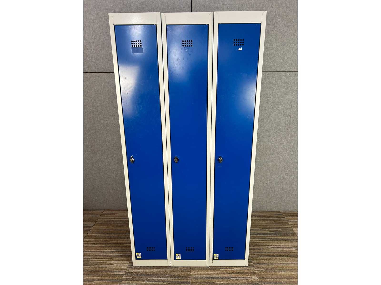 Ideaal voor kleedruimstes, voorzien van 1 legger , bestaat uit 3 afzonderlijke delen, afmetingen per sectie H180 X D50 X B30, gebruiksporen aanwezig Nee Kleur: grijs/blauw Gewicht: 20kg Breedte: 30cm Hoogte: 180cm Materiaal: metaal Diepte: 50cm