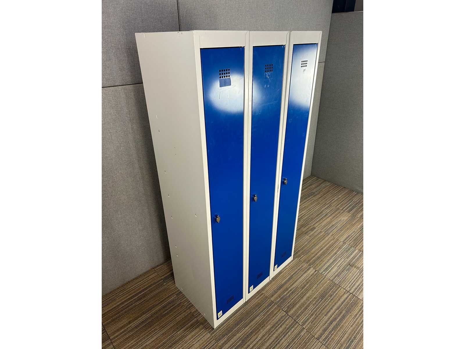 Ideaal voor kleedruimstes, voorzien van 1 legger , bestaat uit 3 afzonderlijke delen, afmetingen per sectie H180 X D50 X B30, gebruiksporen aanwezig Nee Kleur: grijs/blauw Gewicht: 20kg Breedte: 30cm Hoogte: 180cm Materiaal: metaal Diepte: 50cm