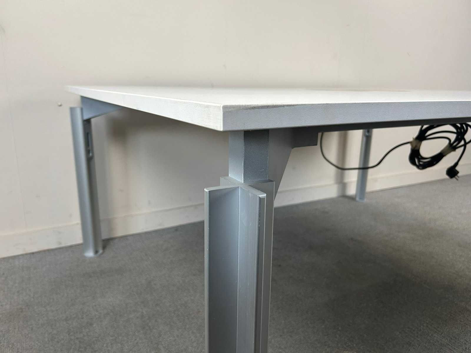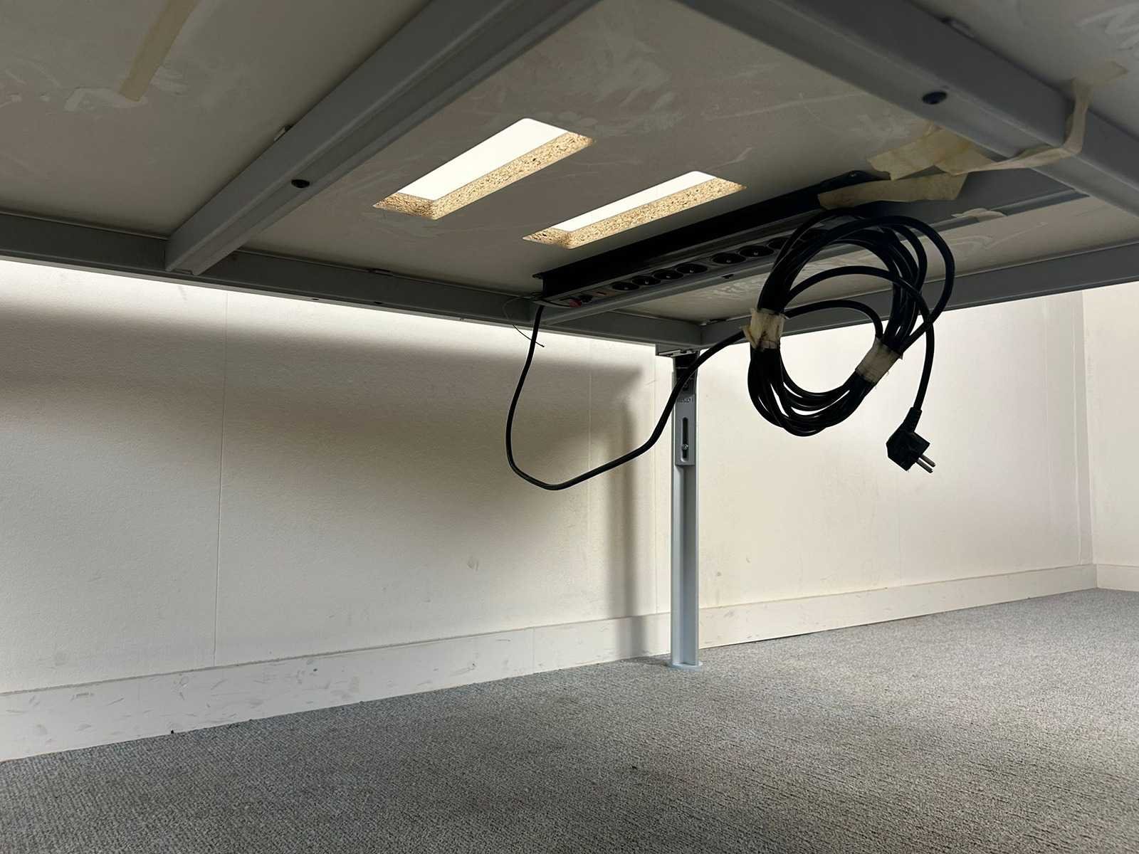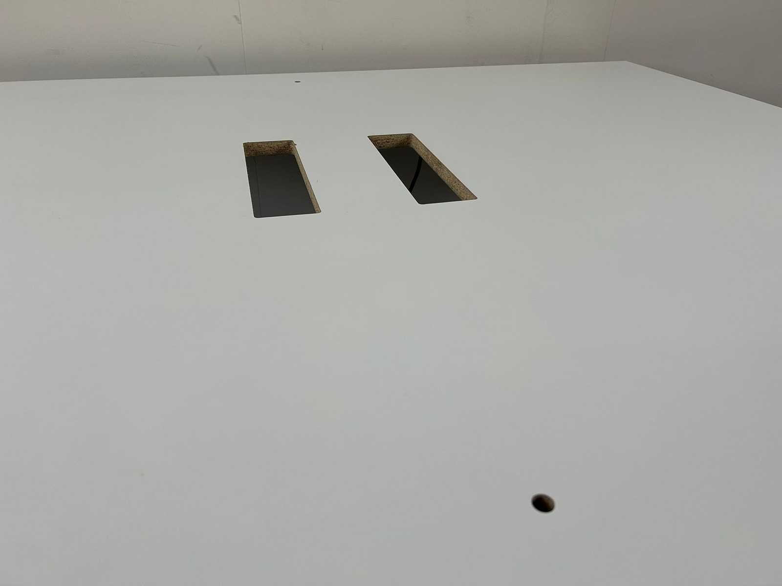 Bulo 2p-workbench met een wit melamine tafelblad en vierpoots metalen onderstel, handmatig verstelbaar, komt met 2 kabeldoorvoergaten. Met gebruikssporen Nee Merk: BULO Product type: 2p-Workbench Kleur: Wit Gewicht: 50kg Lengte: 140cm Breedte: 180cm Hoogte: 65-78cm Materiaal: Melamine