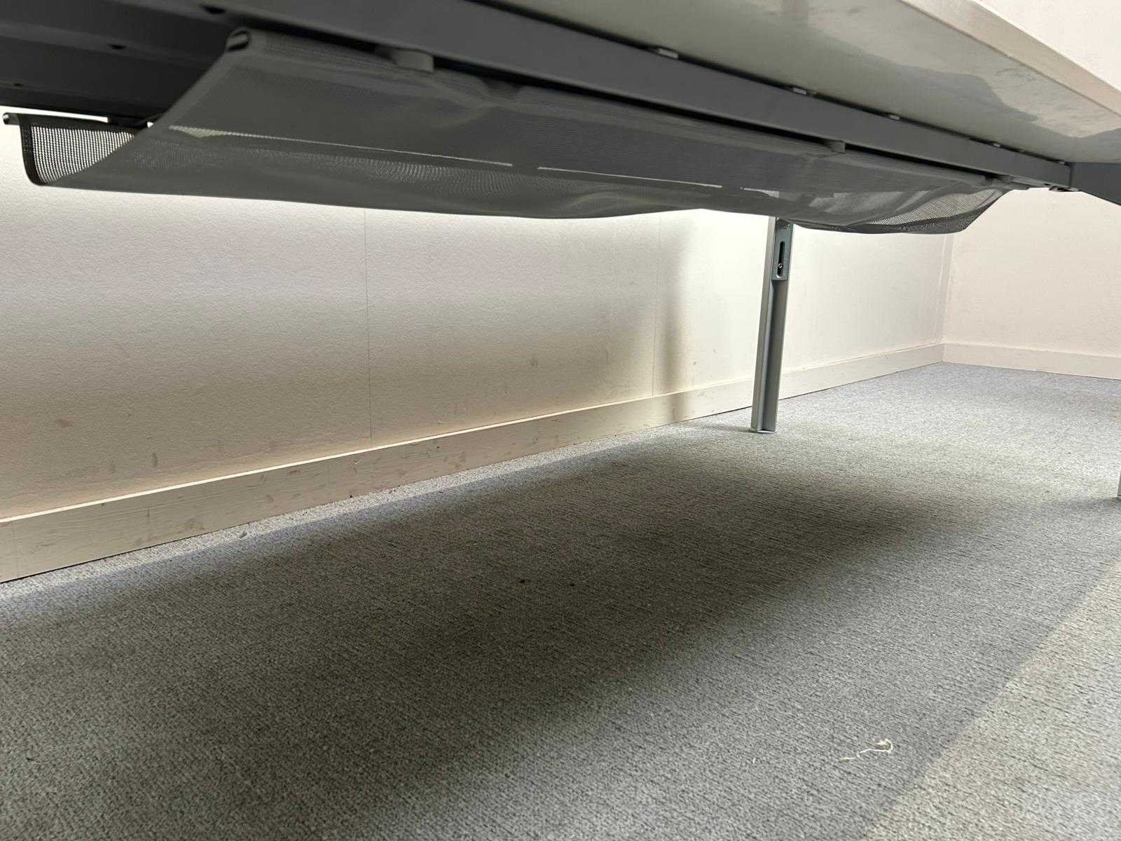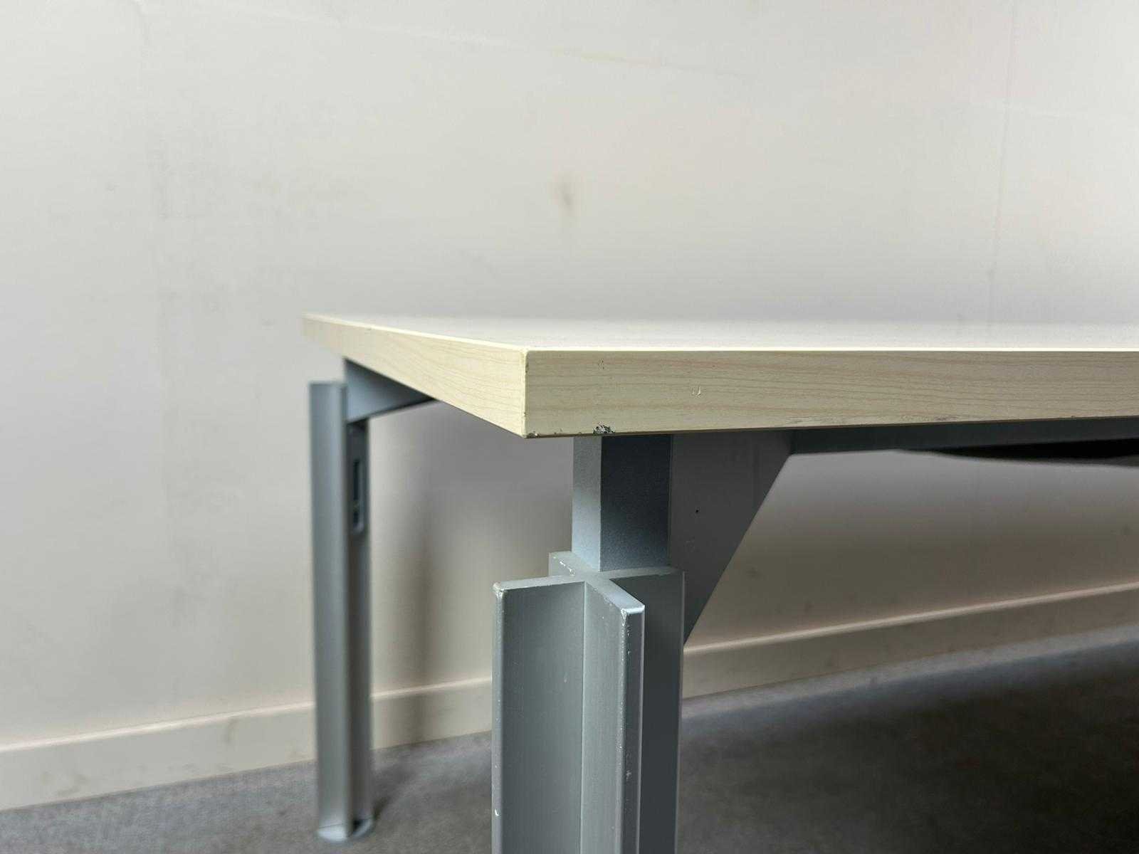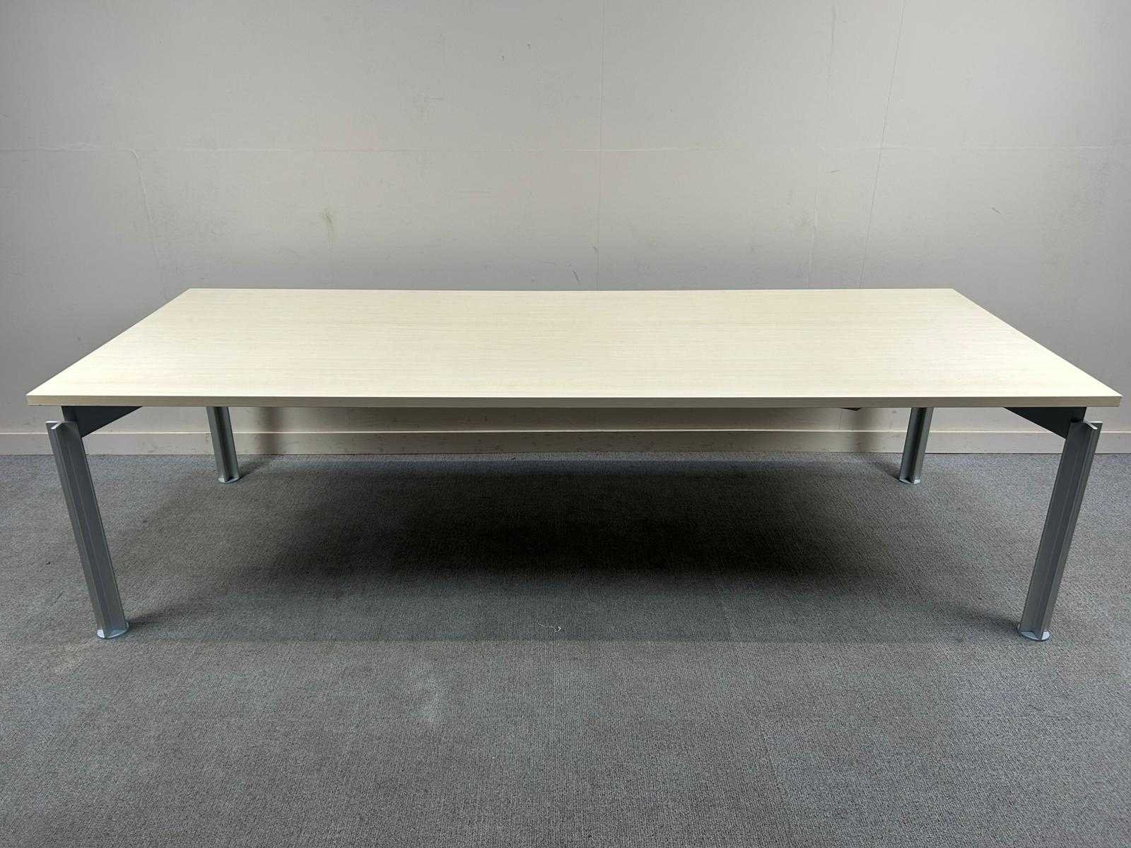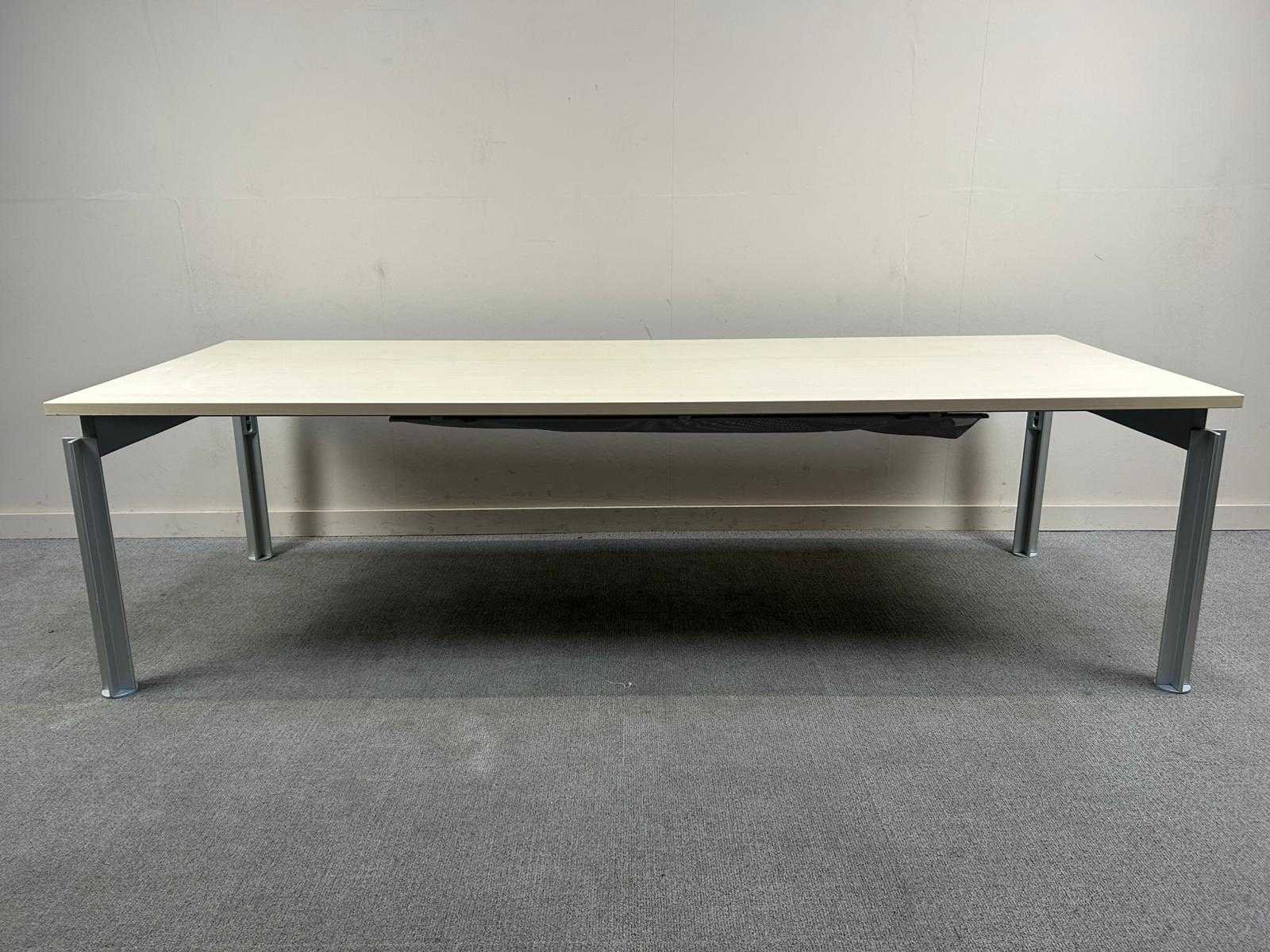 Bulo vergadertafel met een creme tafelblad (270x80) en een stevig metalen vierpoot onderstel, handmatig verstelbare hoogte van 72 tot 82cm Nee Merk: BULO Type: Vergadertafel Kleur: Wit Gewicht: 60kg Lengte: 270cm Breedte: 80cm Hoogte: 72-82cm Materiaal: Hout