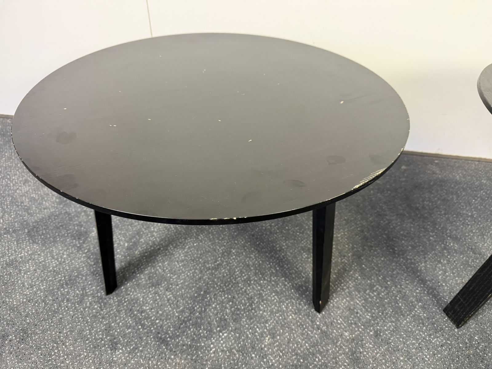 Duo van 2 HAY houten koffietafels (Diameter 60cm) op houten vierpoot. Enkele zichtbare krassen. Nee Merk: HAY Product type: Koffietafel Vorm: Rond Kleur: Hout Gewicht: 50kg Lengte: 60cm Breedte: 60cm Hoogte: 40cm Materiaal: Hout