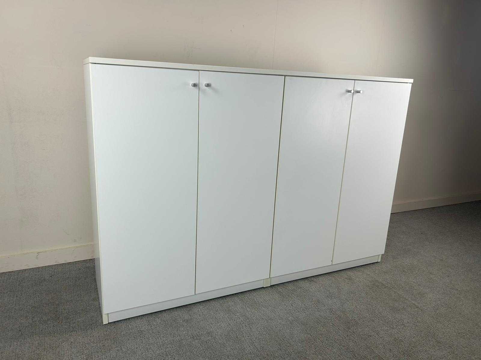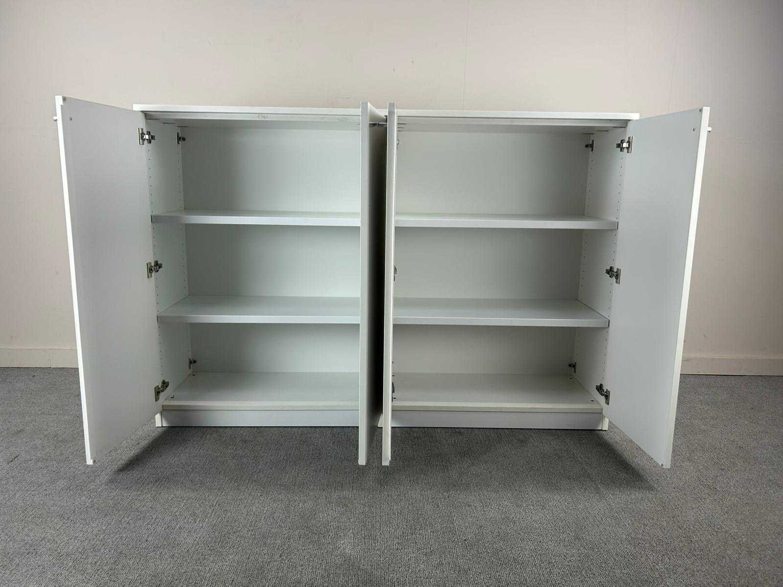 Strakke witte dubbele opbergkasten met een moderne, minimalistische uitstraling. De kasten zijn ideaal voor kantoor, archiefruimte of thuisgebruik. Nee Type: Dubbele Draaideurkast Kleur: wit Gewicht: 40kg Breedte: 182cm Hoogte: 124cm Materiaal: melamine Diepte: 49cm