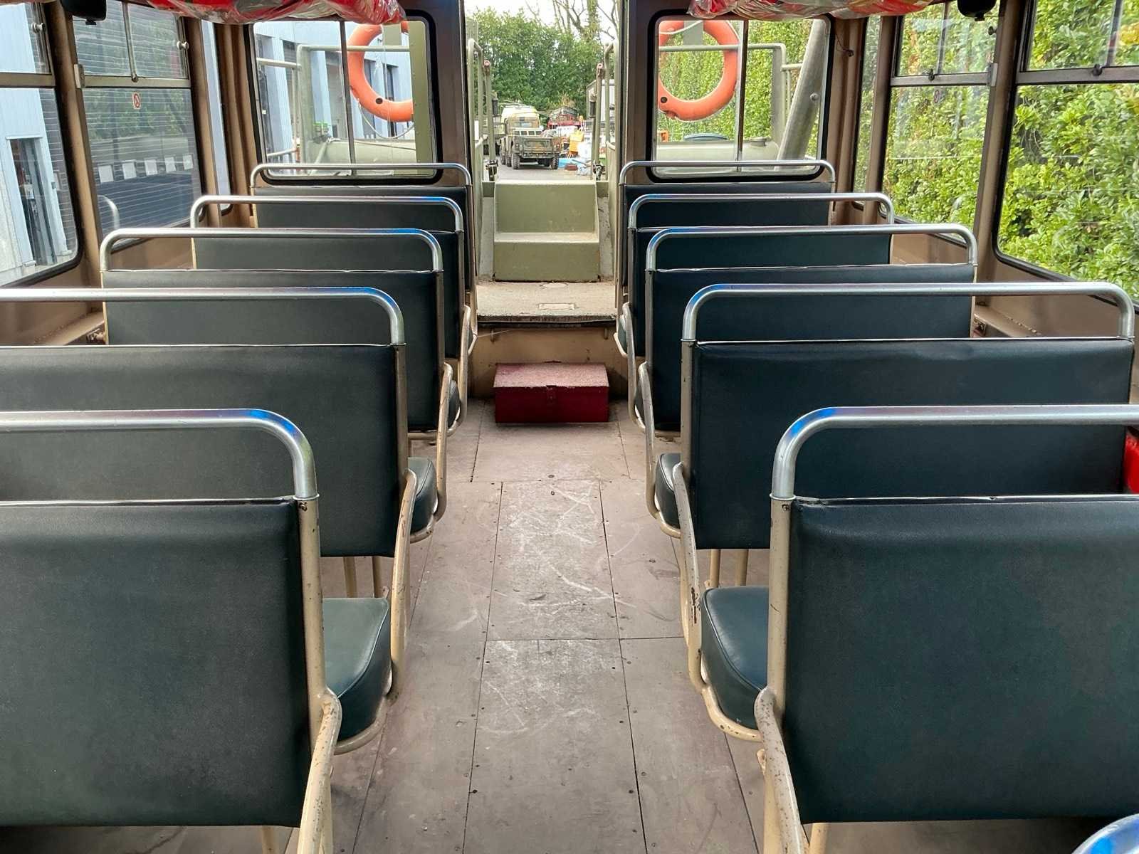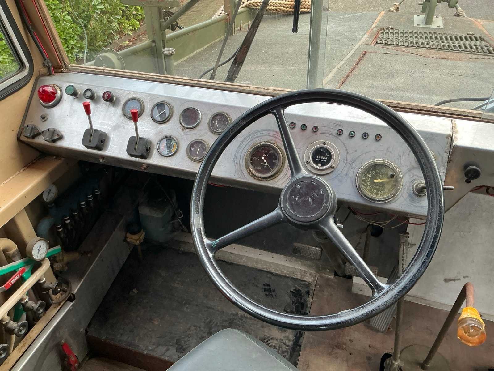 Volledig stalen frame met lengte x breedte: 9,81m x 2,94m, documenten: inschrijvingsbewijs en meetbrief voor binnenvaarvoertuigen Nee Merk: GMC Type: Canadian River Duck Bouwjaar: 1944 Chassisnummer: 3537268 Afgelezen kilometerstand: 3842 Brandstof: Diesel Datum eerste inschrijving: 15/09/1944 Transmissie: Manueel Cilinderinhoud: 4400
