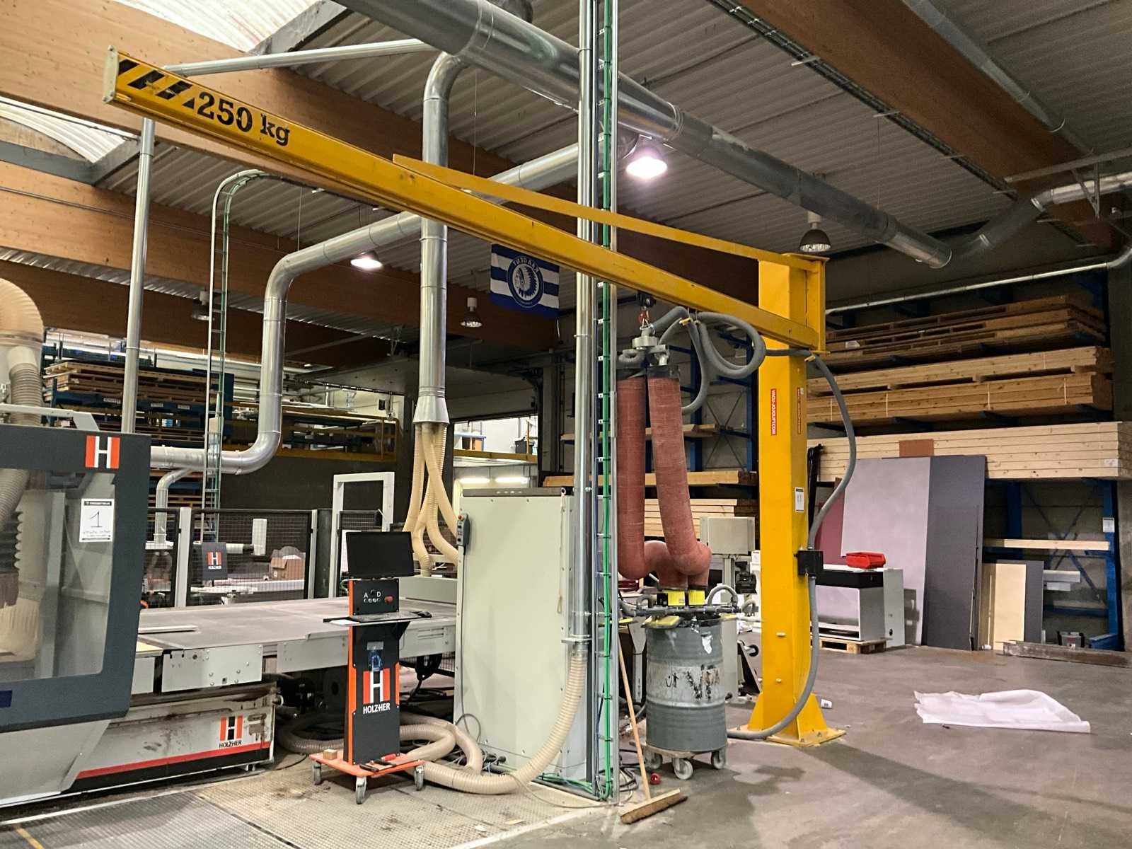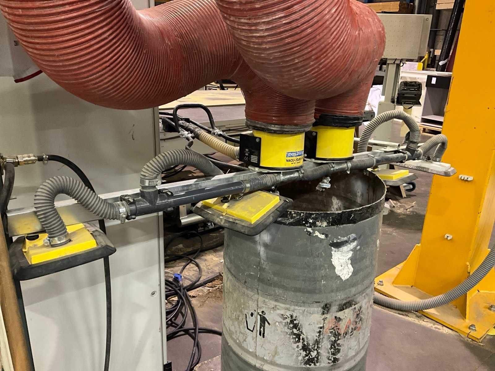 Bestaand uit zwenkarm lengte 6 meter, vacuüm heffer met 4x zuiger, vacuüm pomp Nee Merk: Vacu-Jojolift Type: Two-B Bouwjaar: 2008 Hijsvermogen: 250kg Afmeting l: 6000mm Afmeting b: 800mm Afmeting h: 4000mm