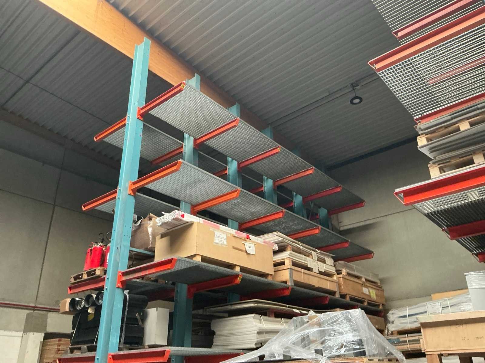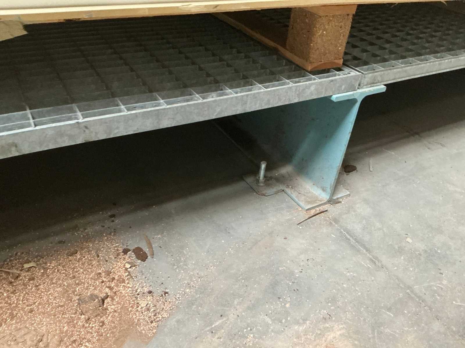 Voorzien van roostervloeren, ca 50 stuks/ Inhoud niet inbegrepen/ stelling te demonteren door koper Nee Aantal staanders: 6 Aantal liggers: 48 Geconstrueerd: true Totale afmeting L: 280cm Totale afmeting Breedte: 760cm Totale afmeting Hoogte: 870cm