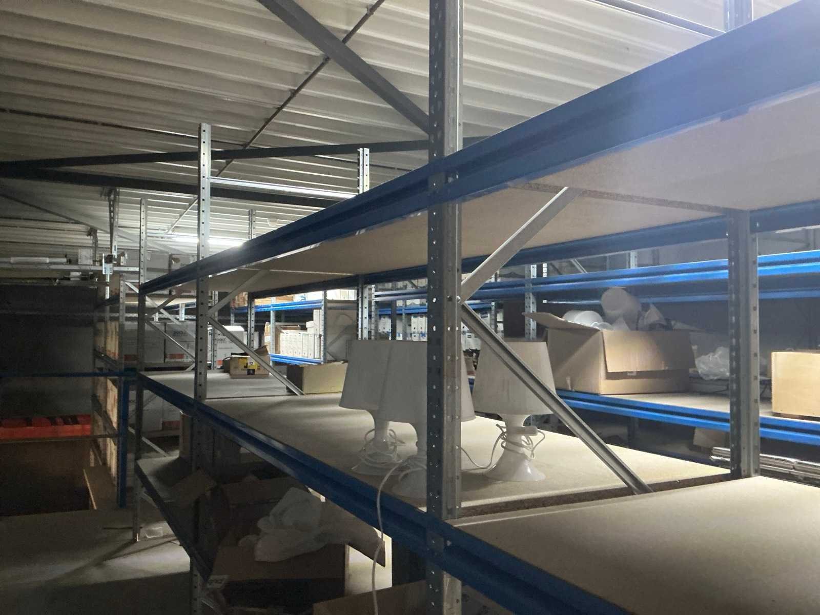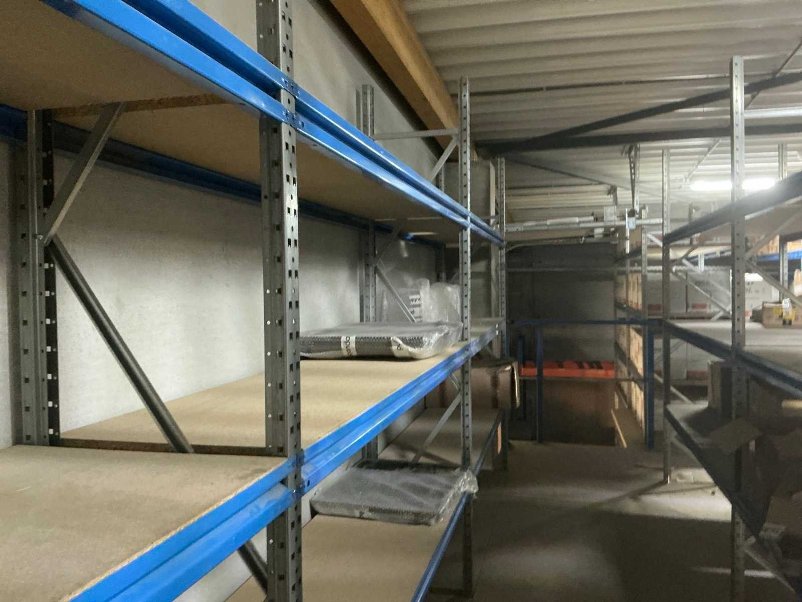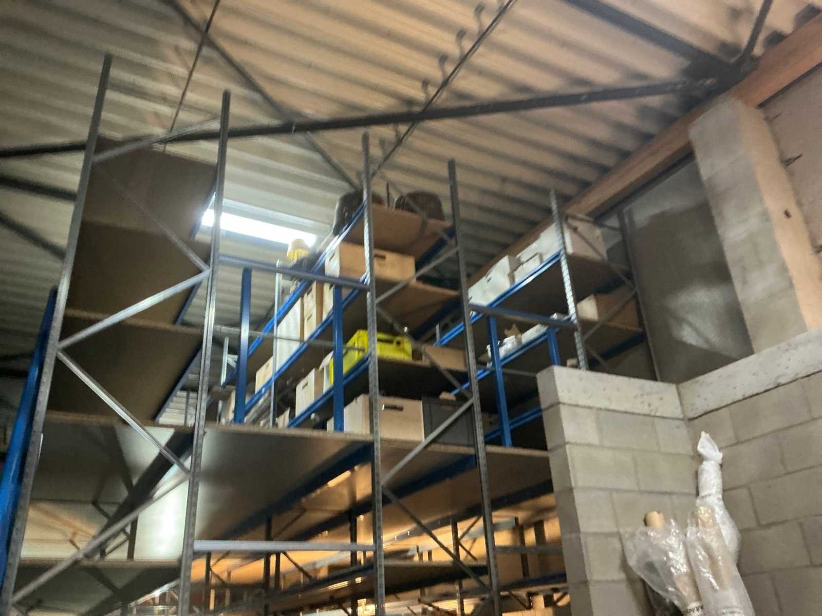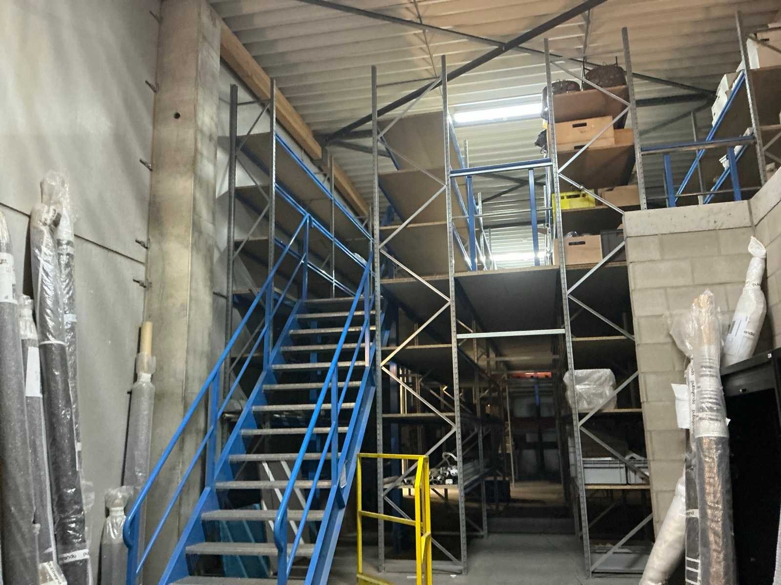 Opgebouwd in 2 verdiepingen; voorzien van trap met 15 rooster-treden; Afmetingen staanders: 50/80 x 500 cm; lengte liggers: 200cm; inclusief inhoud waaronder: partij diverse verlichting, grote partij verlengkabels, rvs inbouw spoelbakken, enzovoort; met inbegrip van palletstelling = 3 staanders (110x320cm) en 8 liggers met lengte 270 cm; opgelet: boekhouding NIET INBEGREPEN! Nee Aantal staanders: 26 Aantal liggers: 236 Geconstrueerd: true