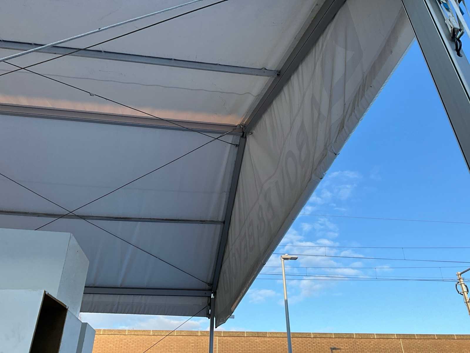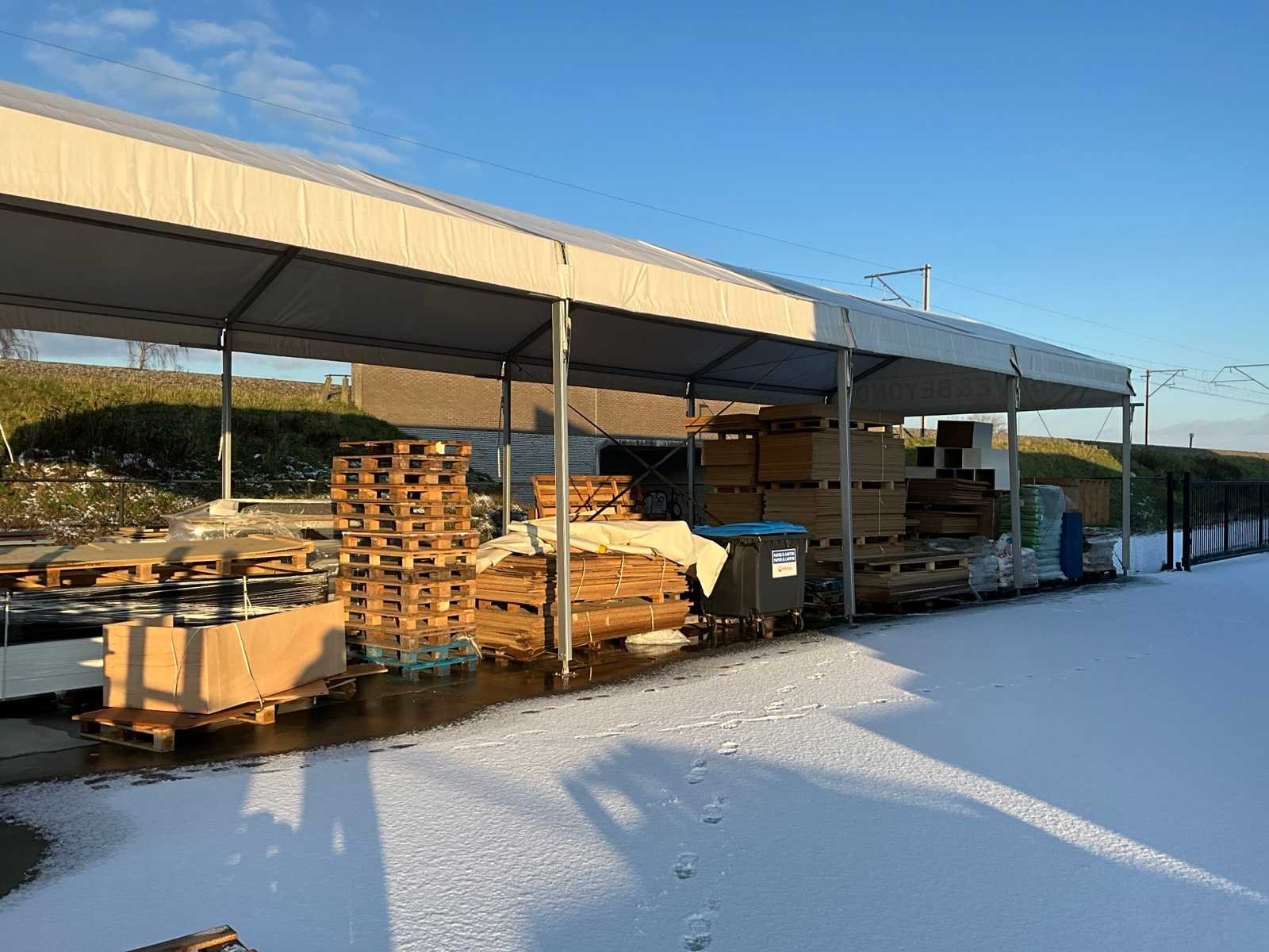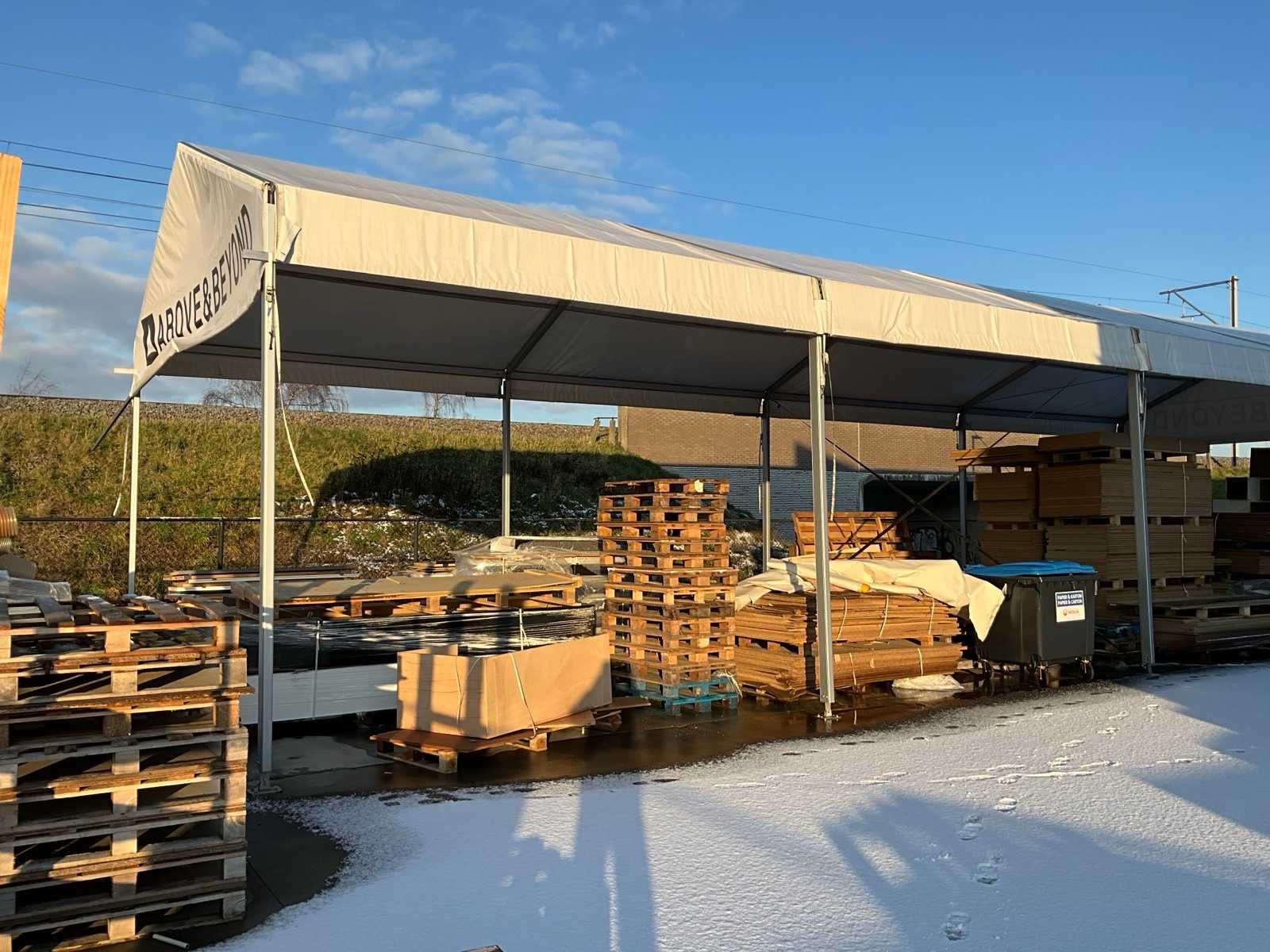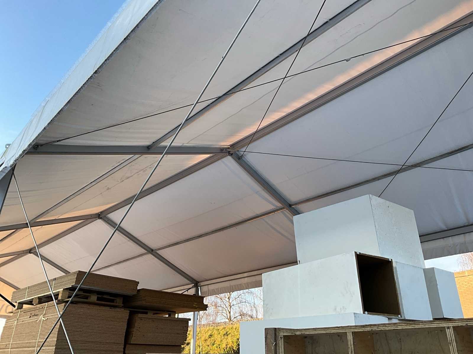 Demonteerbare Tent met enkel dakzeil bestaande uit aluminium constructie met 10 staanders, ZONDER INHOUD!! Nee Lengte: 2000cm Breedte: 700cm Hoogte: 600cm