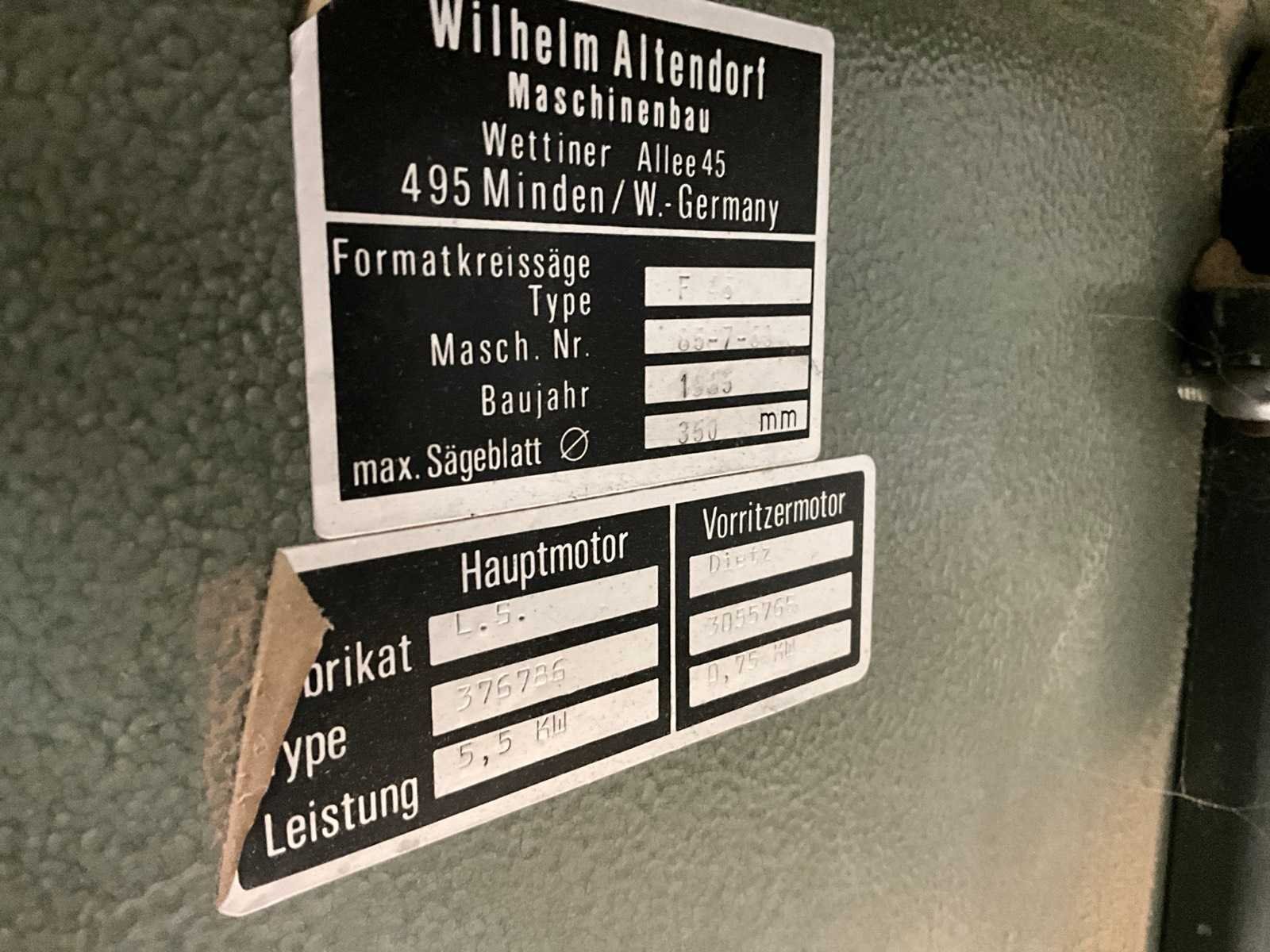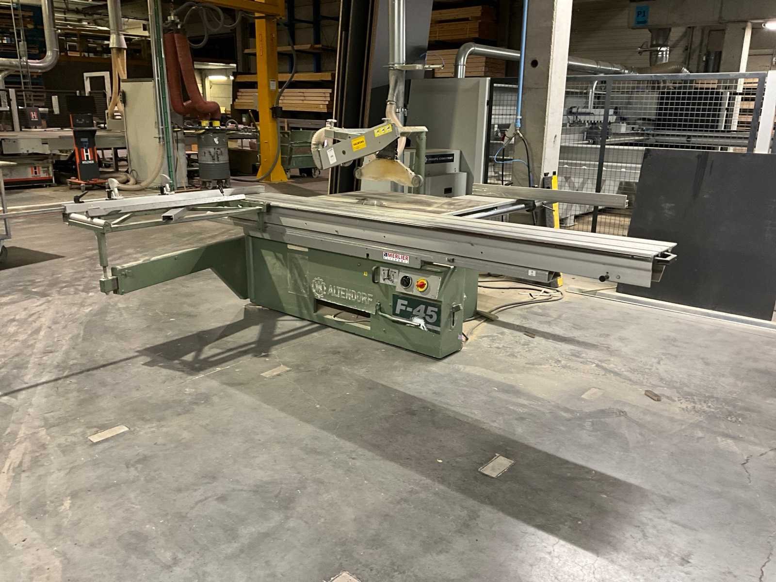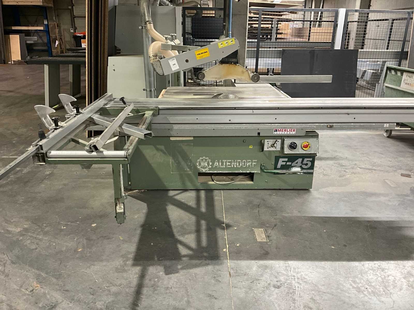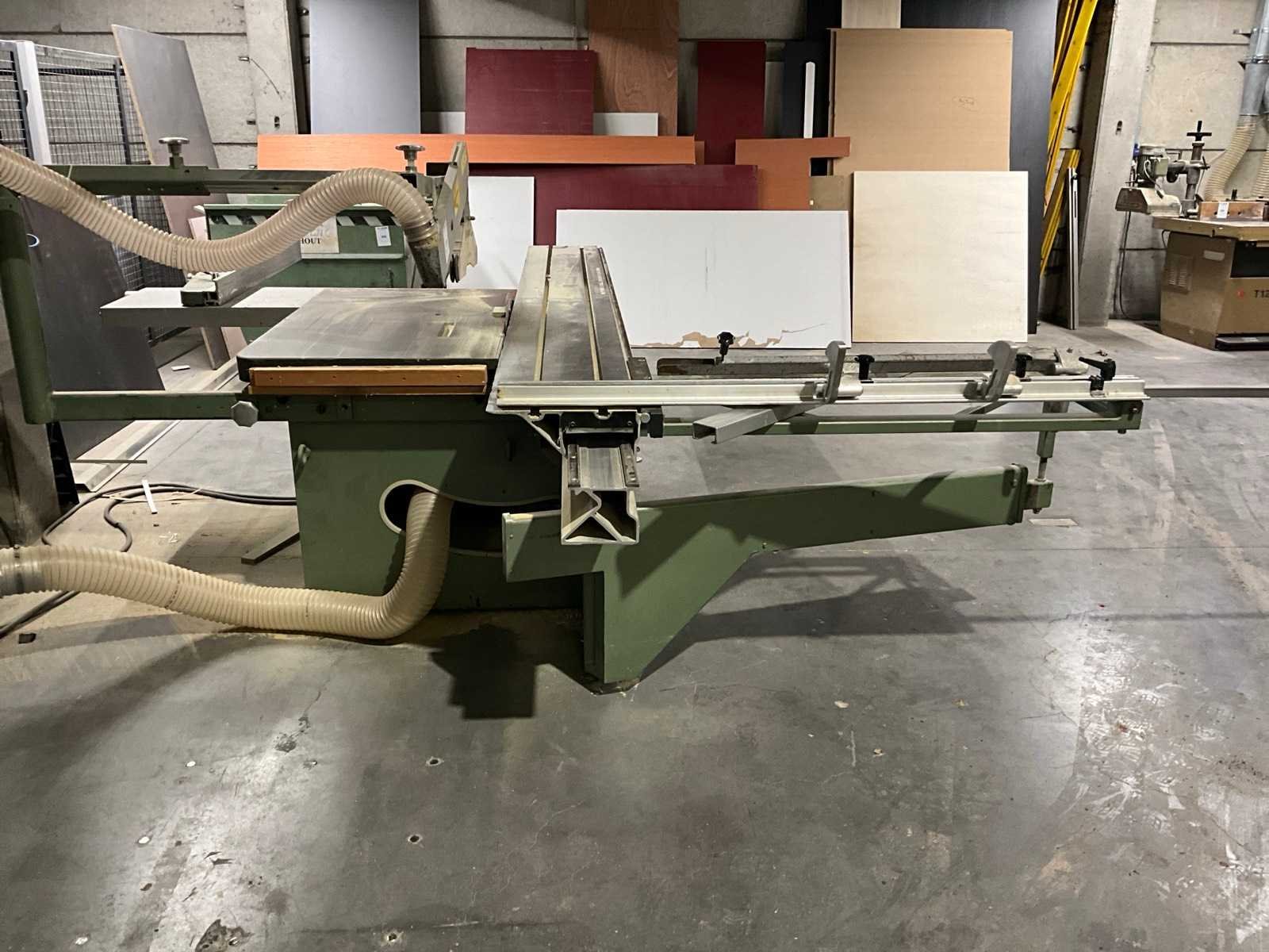 Voorzien van aluminium tafel, stofafzuigkap Nee Merk: Altendorf Type: F-45 Bouwjaar: 1985 Serienummer: 85-7-60 Zaagblad Ø: 350mm Tafel afmeting l: 3200mm Tafel afmeting b: 1800mm Aansluiting: 400V Verstek: true Onderliggende afkortzaag: true Afmeting l: 3200mm Afmeting b: 3200mm Afmeting h: 1500mm