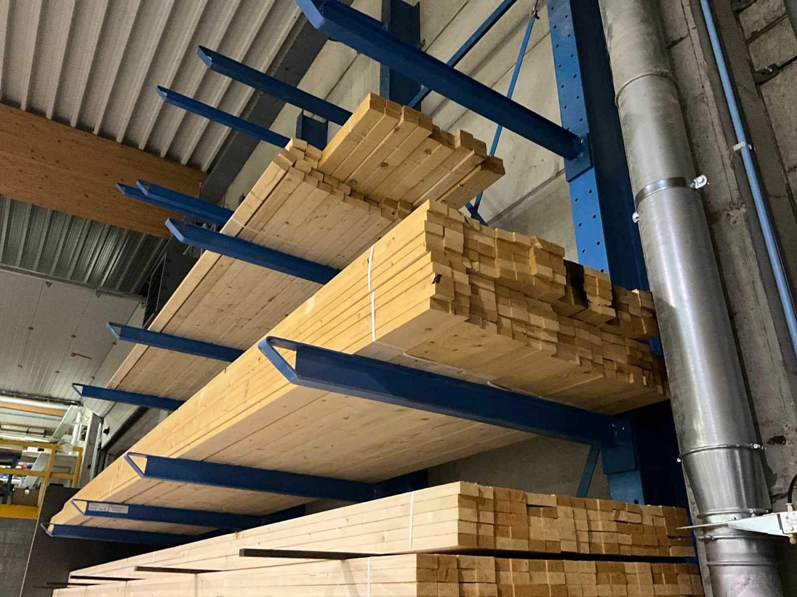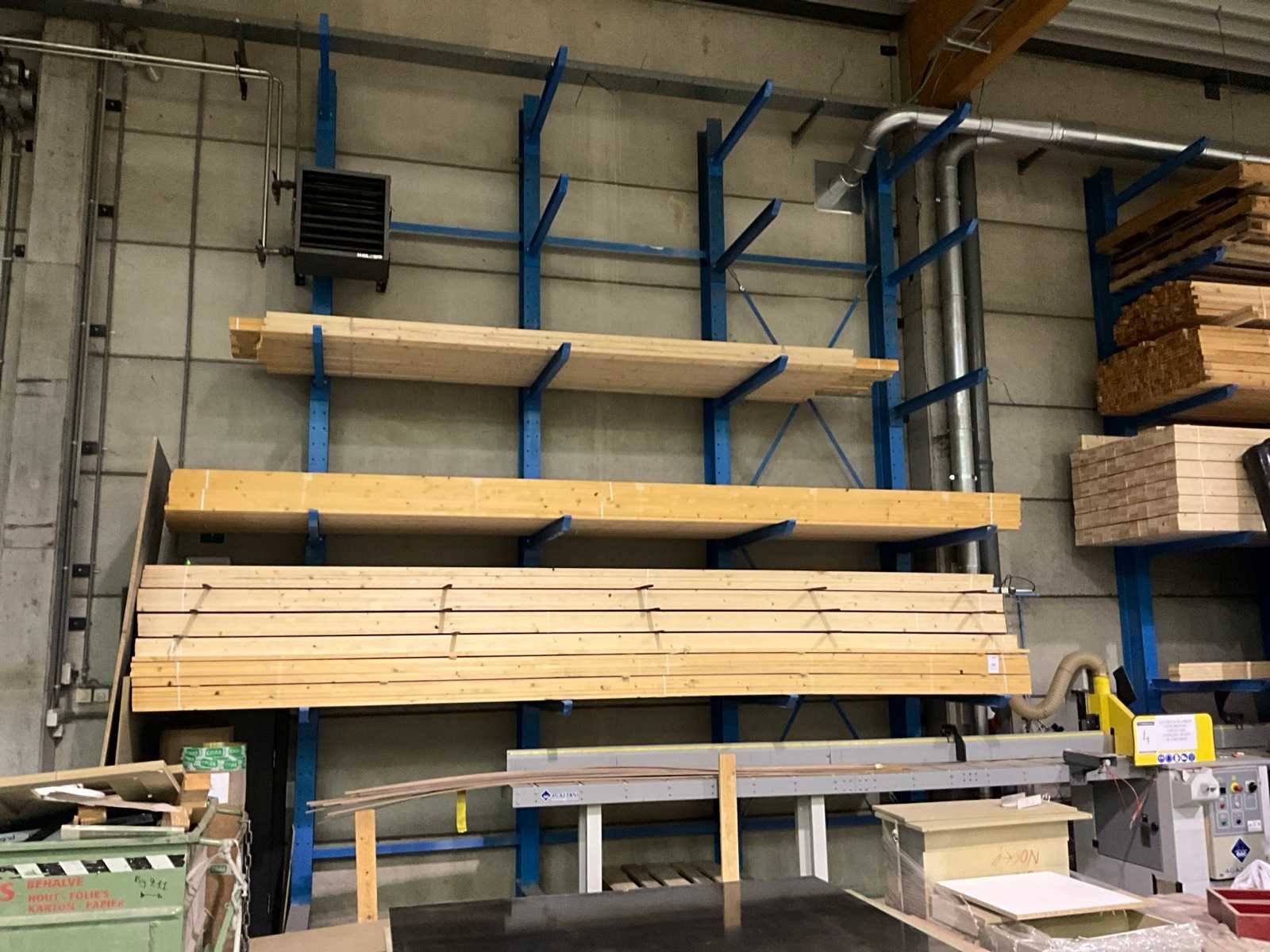 Draagarmstelling met inhoud houtvoorraad