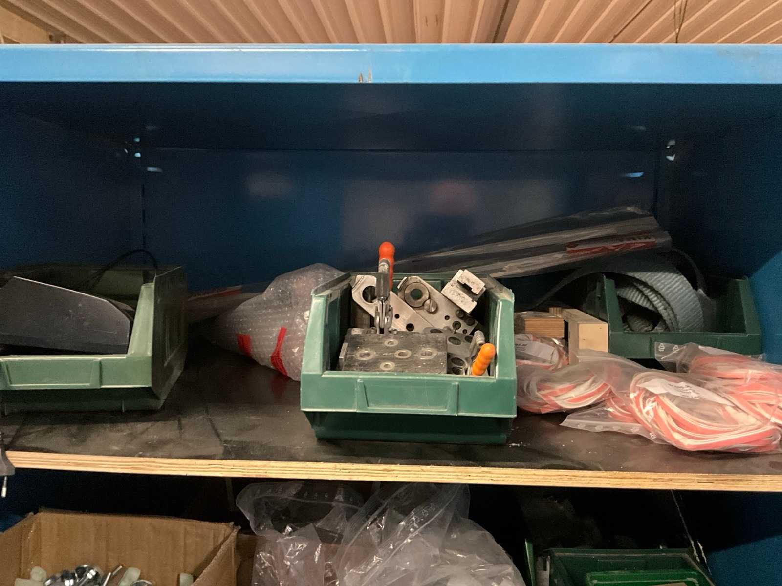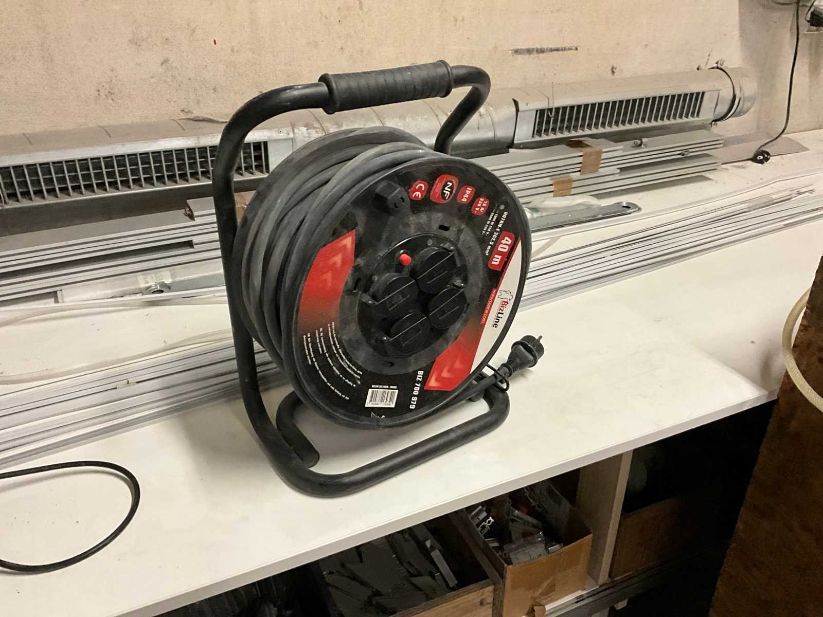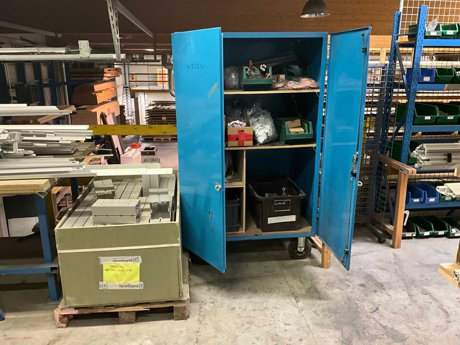 Bestaand uit Kolomboormachine tafelmodel, kabelhaspel Billie 40 meter 3G2,5 mm2, 2x werktafel met inhoud breedtes 3+4 meter, +1x pallet met koppelstukken aluminium, 1x 2-deurs magazijnkast met inhoud diverse montagetools, +1x pneumatische ponsmachine, + houten vouwladder met 2x 9 sporten Nee