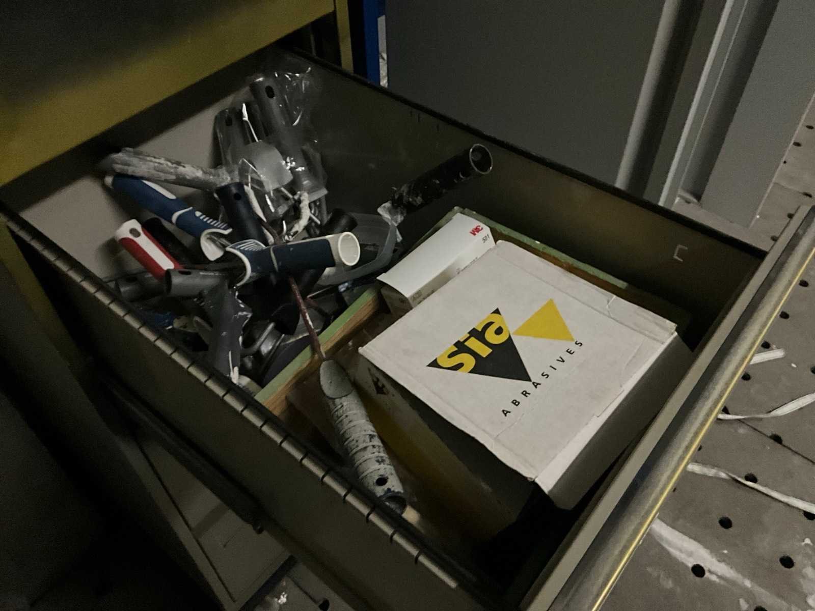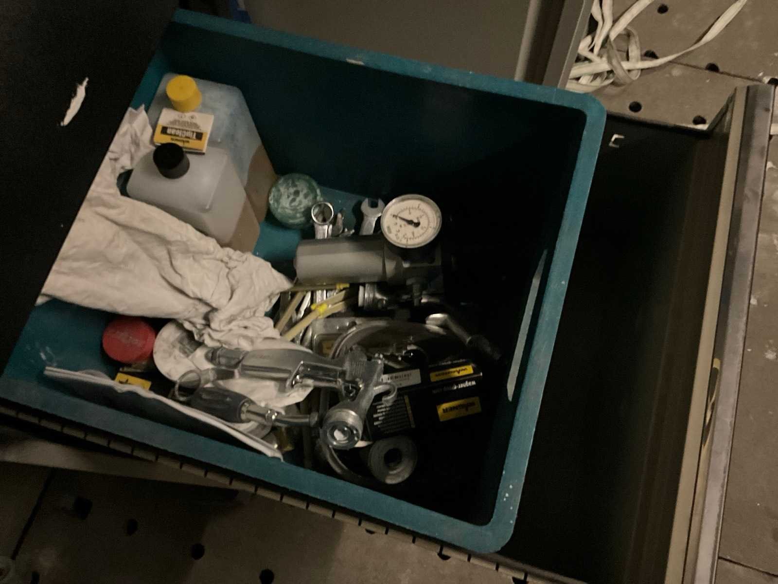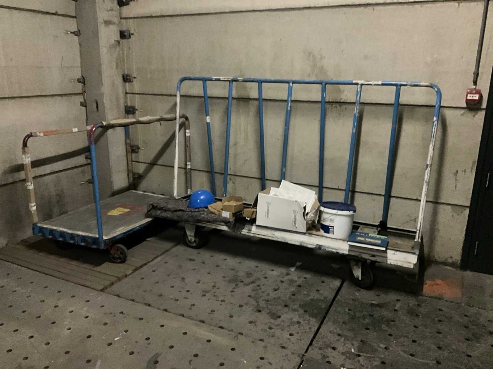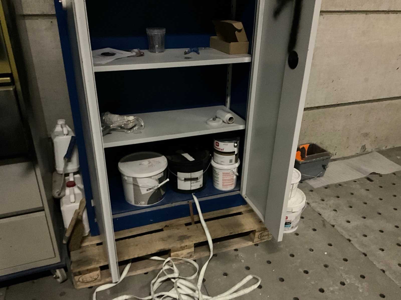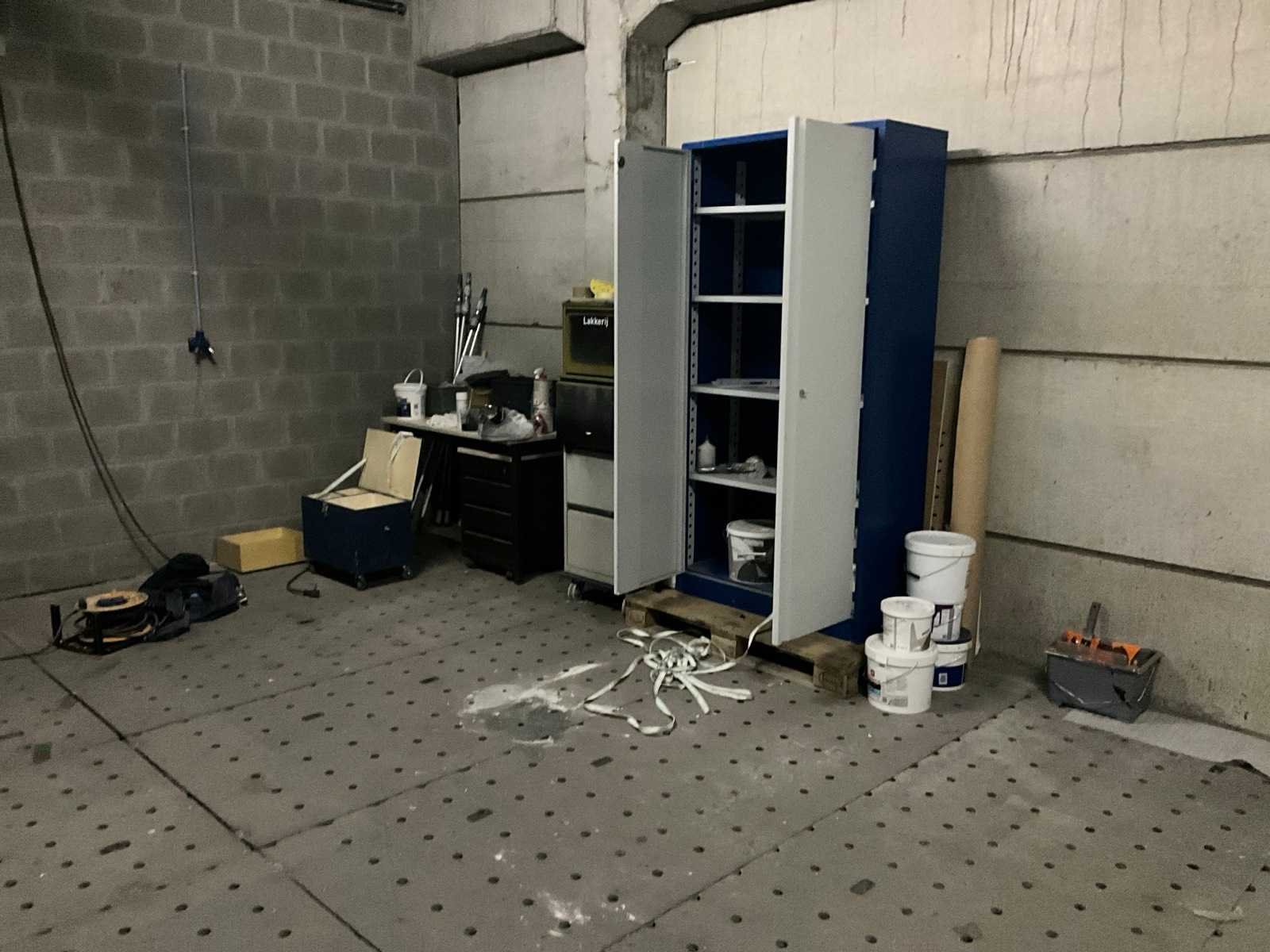 Bestaand uit 1x plantenkar lengte 240 cm, +1x magazijnkar 140x100 cm, +2x kabelhaspel 40+20 meter, +3x plaatstalen opbergkasten met inhoud waaronder verfpistolen Nee