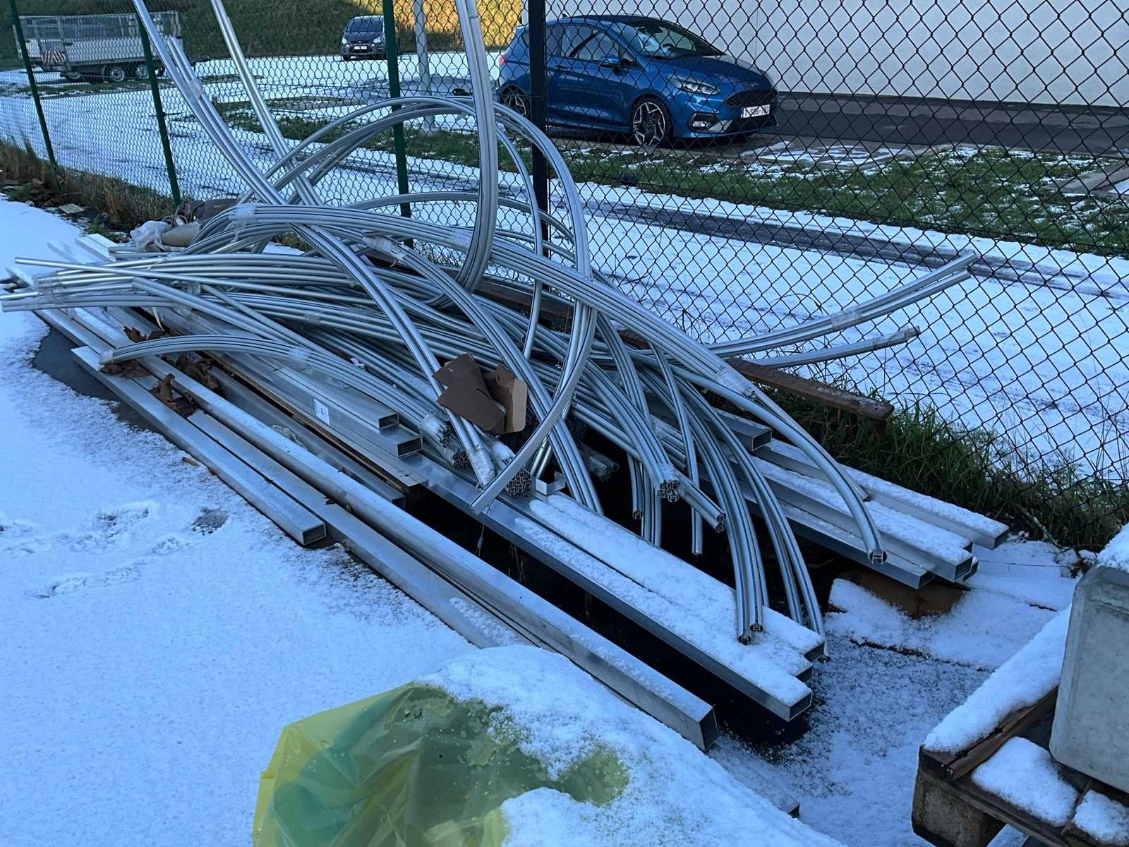 Bestaand uit diverse profielen, + circa 10 betonnen gewichtblokken afmetingen kubus 30 cm met bevestigingshaak Nee