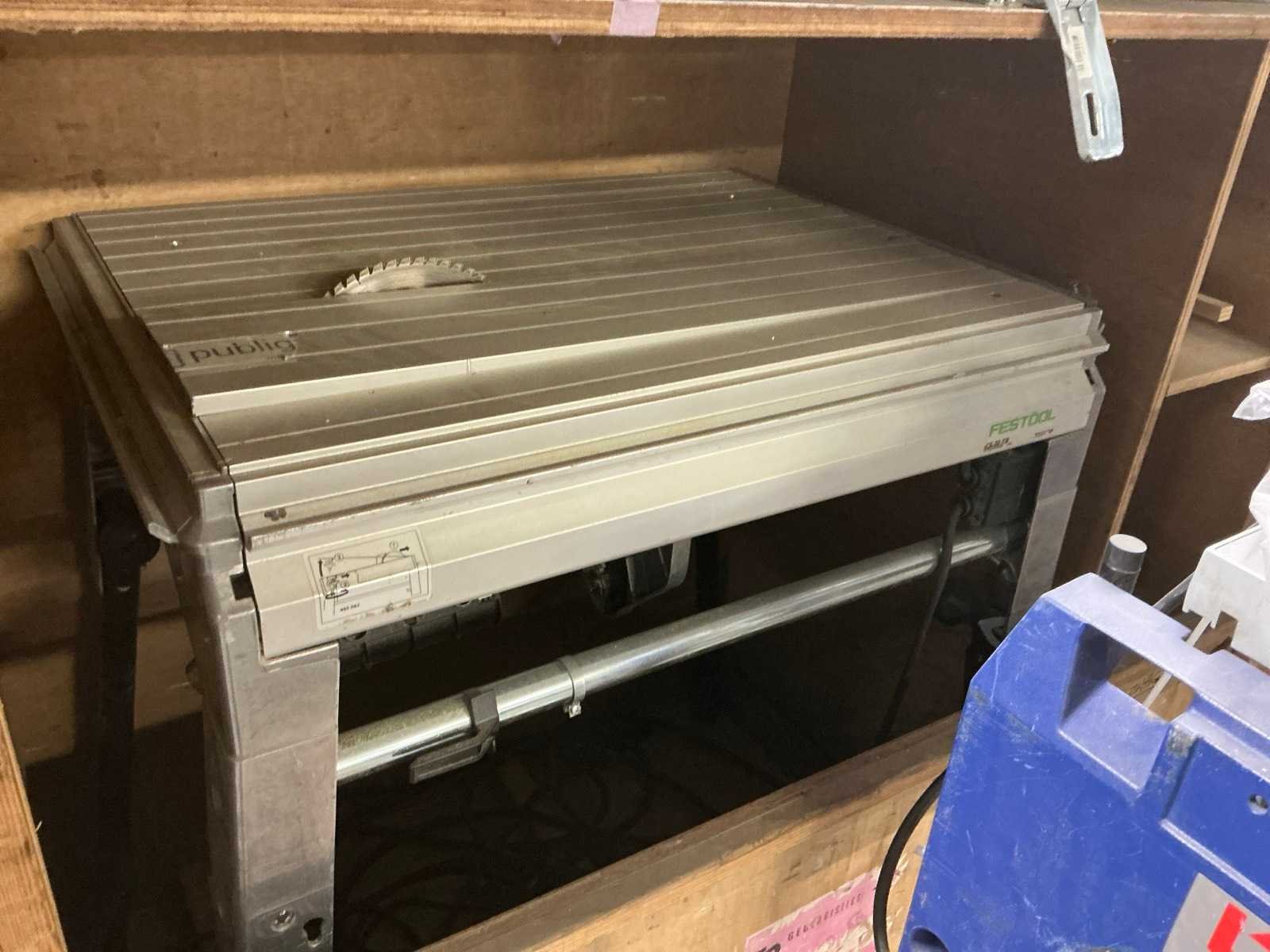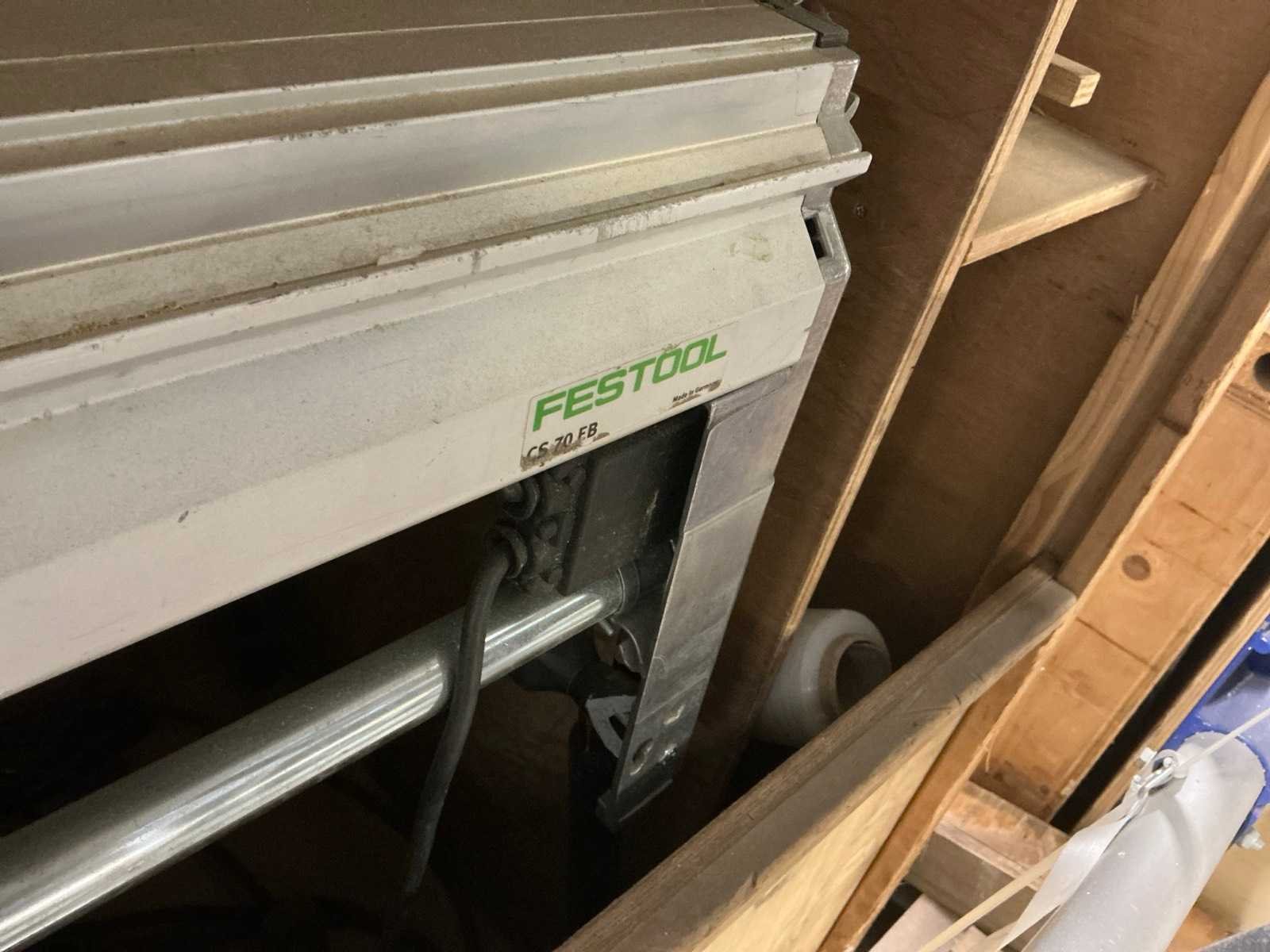 In houten kist Nee Merk: Festool Type: CS 70 FB Verstek: true Onderliggende afkortzaag: true Tafel afmeting l: 500mm Tafel afmeting b: 700mm Aansluiting: 230V