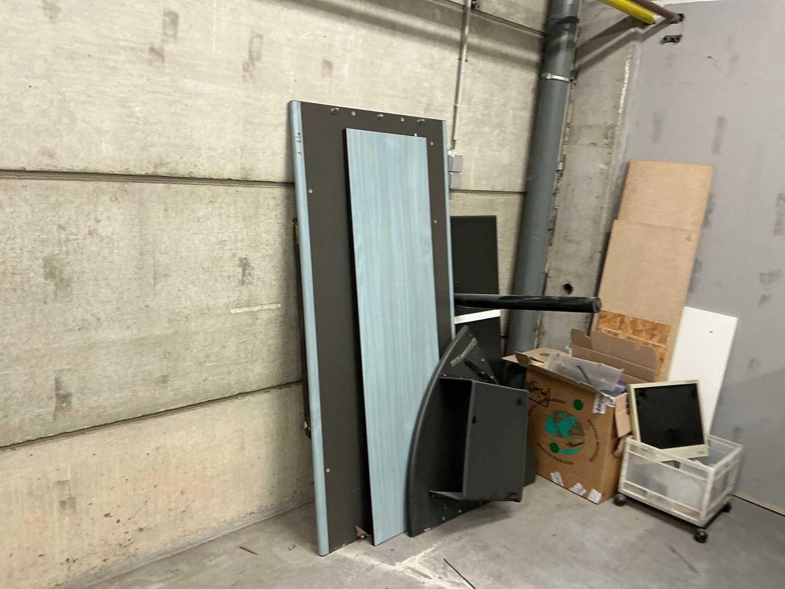 Bestaande uit 2 diverse archiefkasten, gedemonteerde bureautafel, koelkast Nee