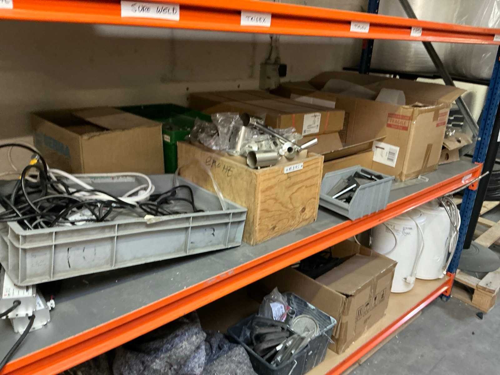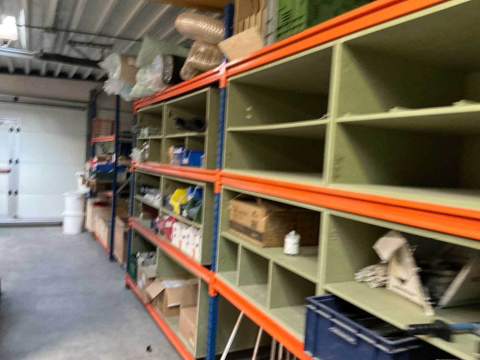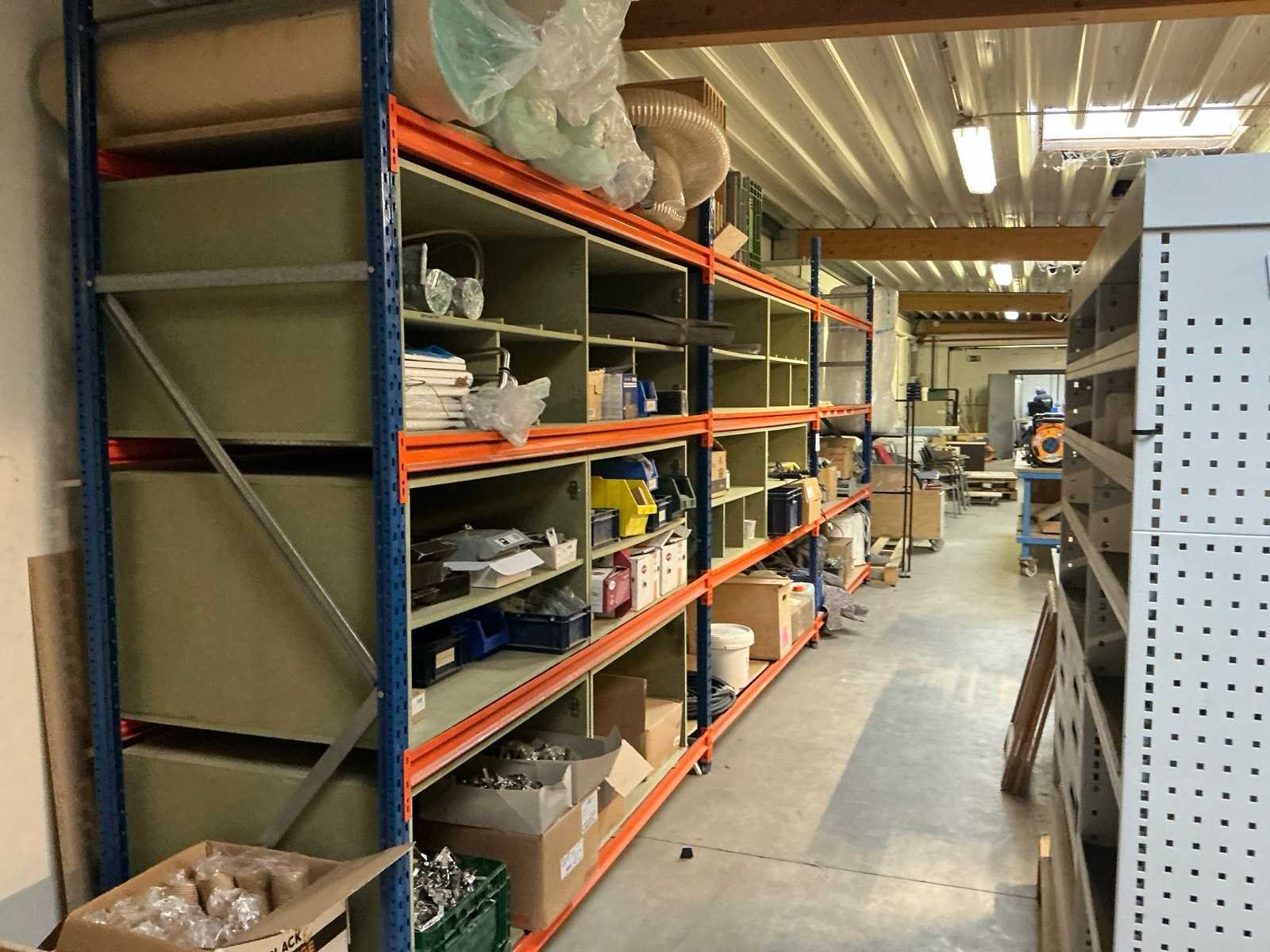 Magazijn-legbordstelling met inhoud