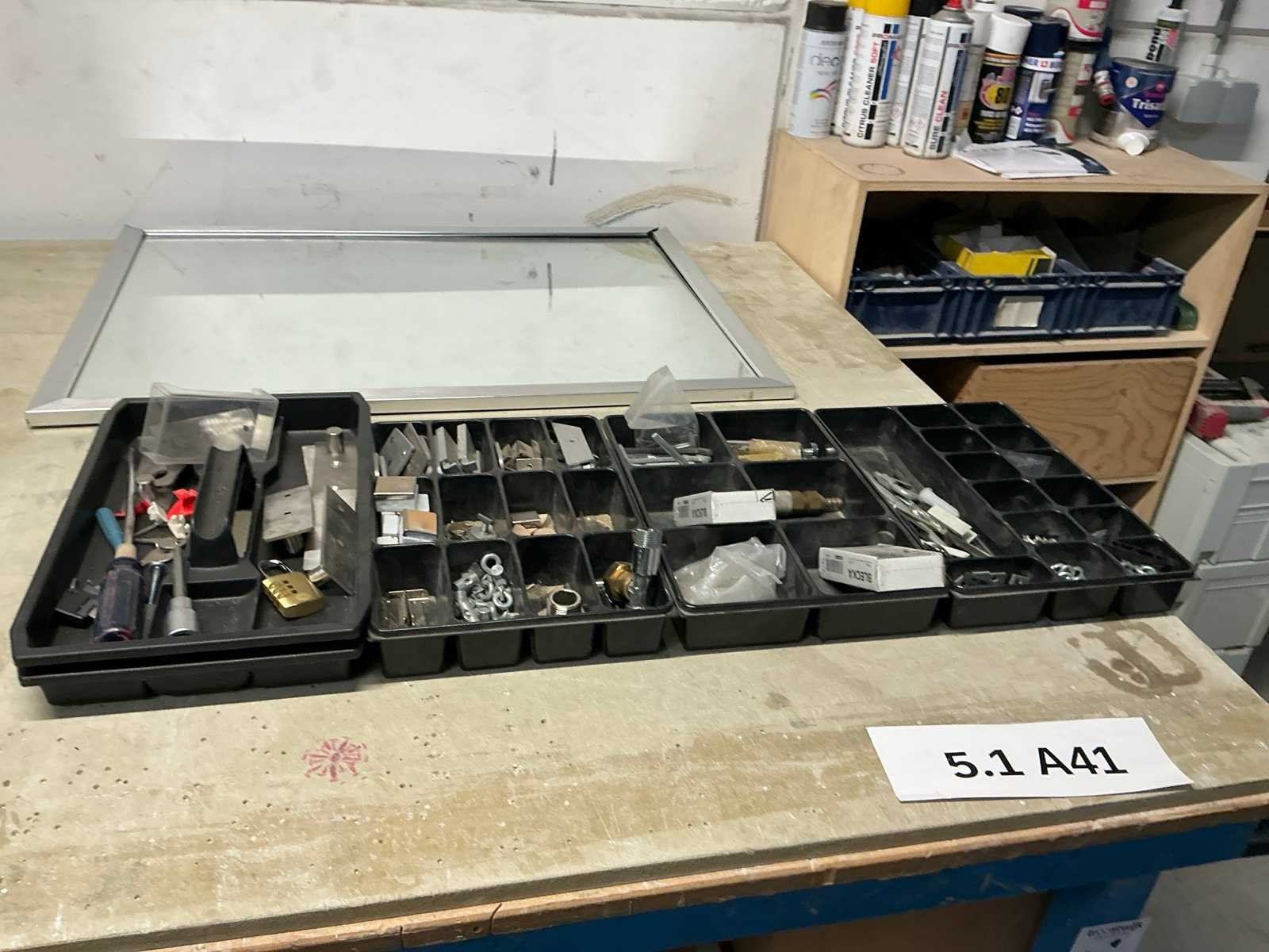 Inhoud bestaande uit: kleine partij bevestigingsmaterialen, vakkenkastje, 3 Festool machinekoffers, Nee Breedte: 3040mm Lengte: 1200mm Hoogte: 940mm