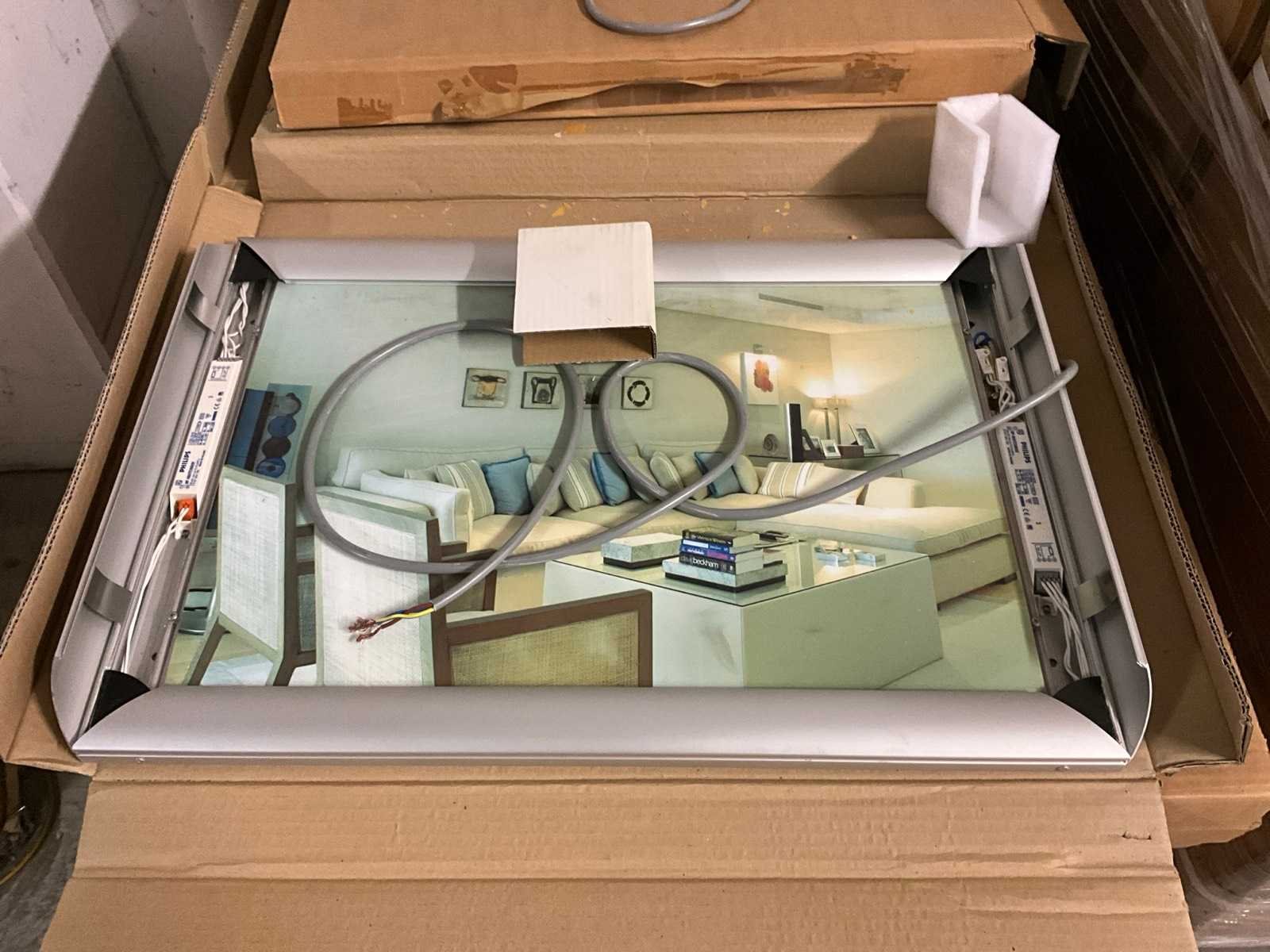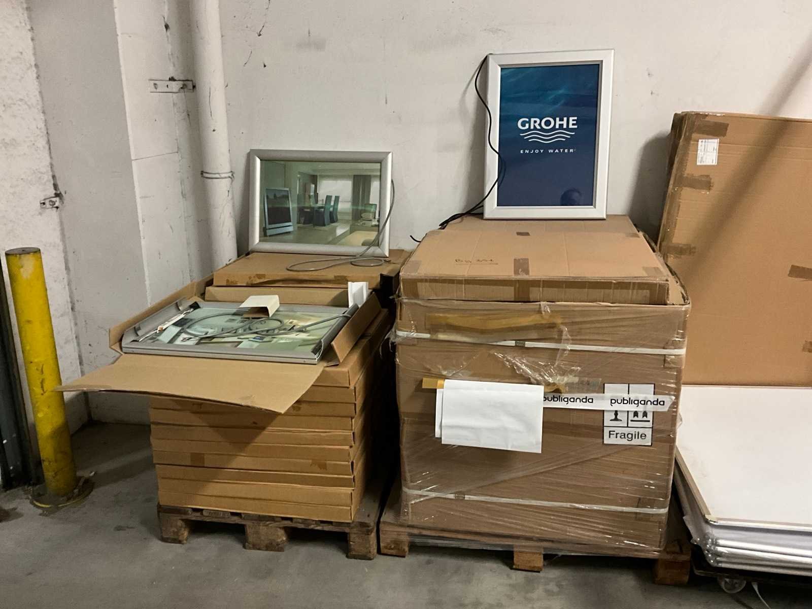 Bestaand uit 2x pallet met circa 40 kaders met verlichting, afmeting per kader 48x70 cm, 2 soorten-1 met grijze kleur en 1 met aluminium kleur, in originele verpakking Nee