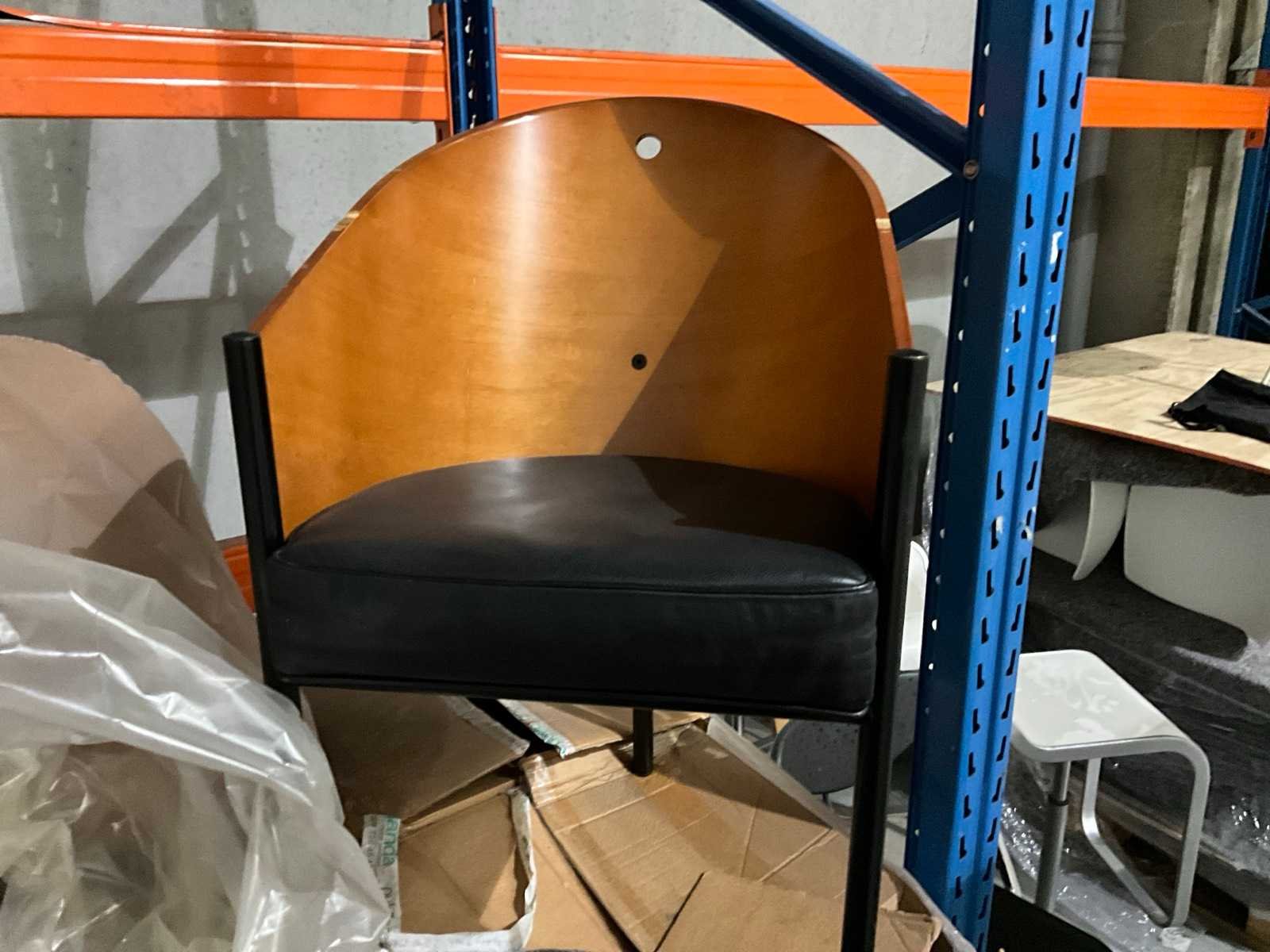 Voorzien van houten gebogen rugleuning, lederlook zit zwart Nee Lengte: 50cm Breedte: 48cm Hoogte: 80cm