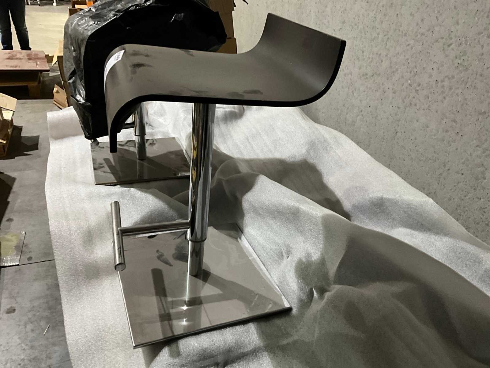 Voorzien van RvS voet en houten S-vormige zit Nee Lengte: 38cm Breedte: 40cm Hoogte: 65cm