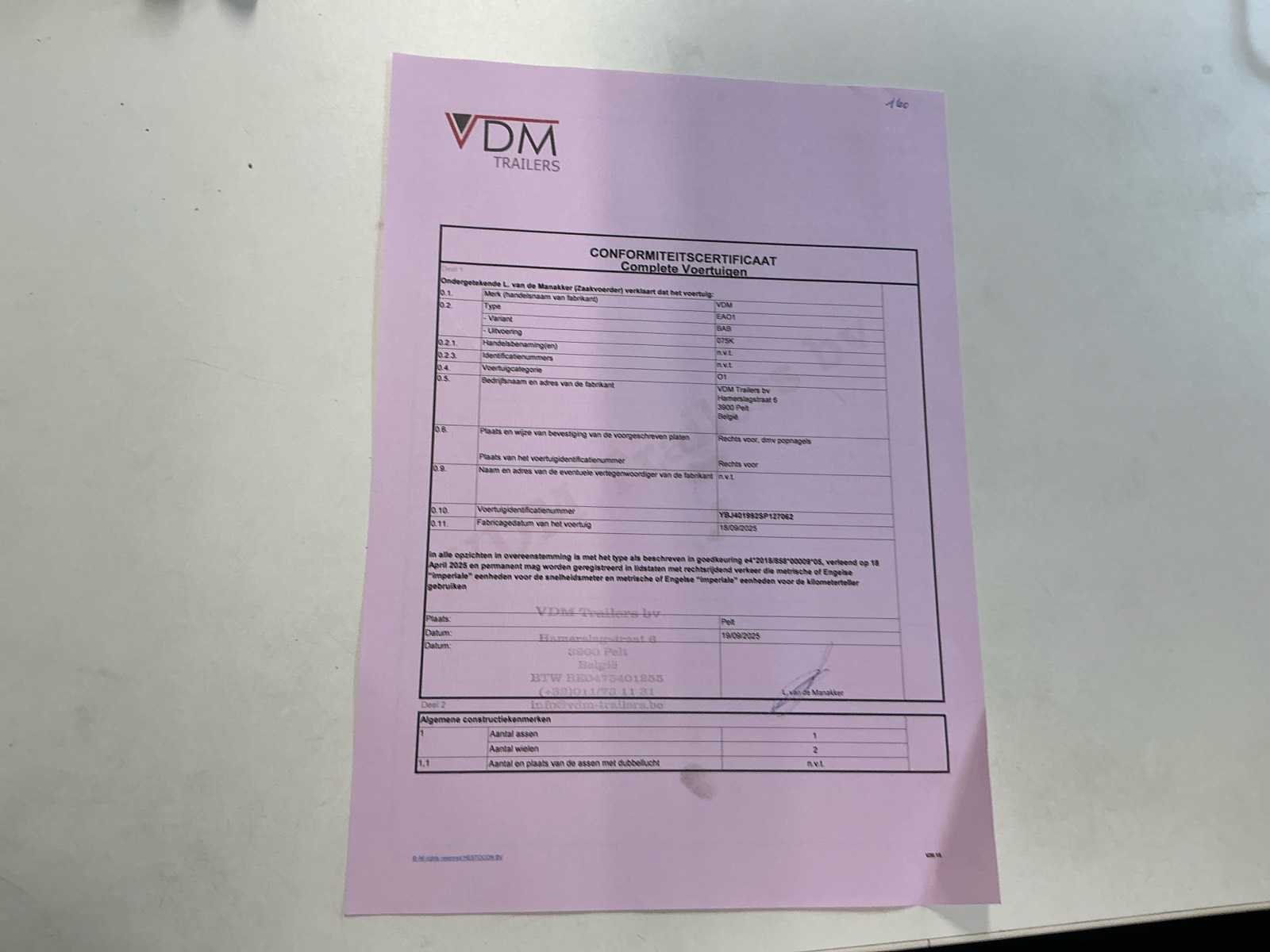 2025 vdm trailers eao1 aanhangwagen *ongebruikt/garantie*