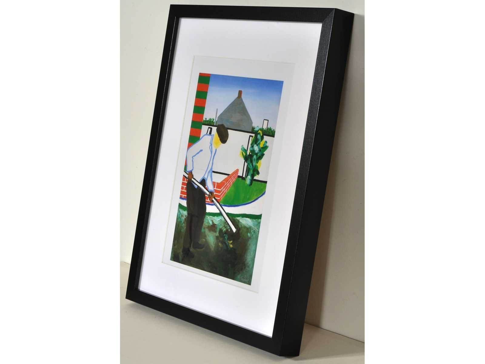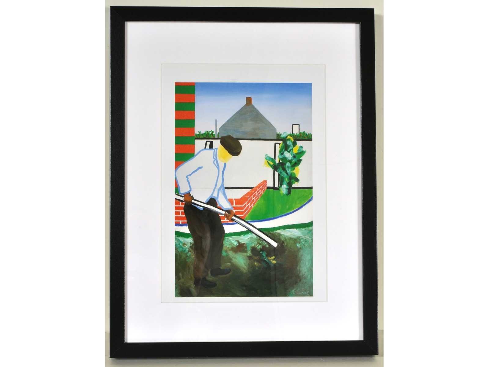Uitgebracht op 500 exemplaren ter gelegenheid van de tentoonstelling "De Wereld van Roger Raveel" in de lokettenzaal van het Vlaams Parlement te Brussel – ingelijst met passe-partout (30x40 cm) Nee Kunstenaar: Roger Raveel Titel van werk: Mijn tuinman, maar laat dit een hulde zijn aan de Vlaamse expressionisten Techniek: offset Oplage: 500 Hoogte: 40cm Breedte: 30cm Frame: true