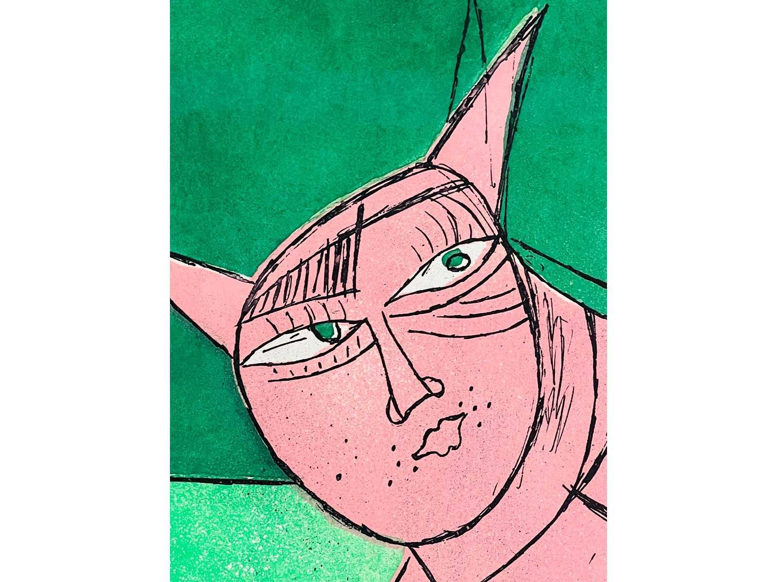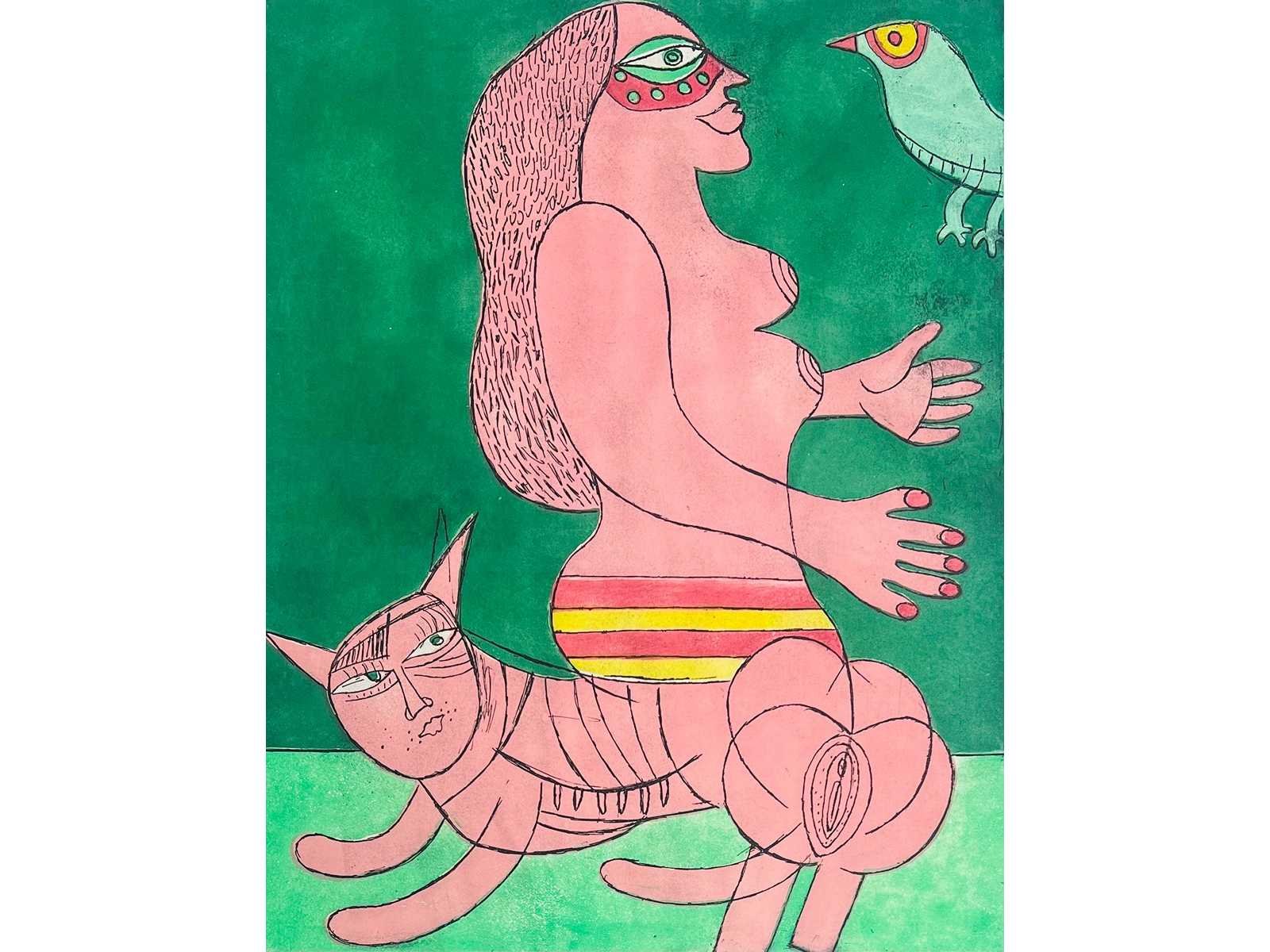 Zeldzame kleurenets uit 1977 - uitgegeven door GKM, Malmö (Zweden) - uitzonderlijk HC (hors commerce) exemplaar - mooi ingelijst met passe-partout - galerieprijs: 750 euro (niet ingelijst) @ galerie Michel Champetier Nee Kunstenaar: Corneille (Luik 1922-2010) Titel van werk: Femme et faune familière Periode: 1977 Techniek: Kleurenets Handtekening/oplage: true Gesigneerd: getekend en genummerd Hoogte: 76cm Breedte: 57cm