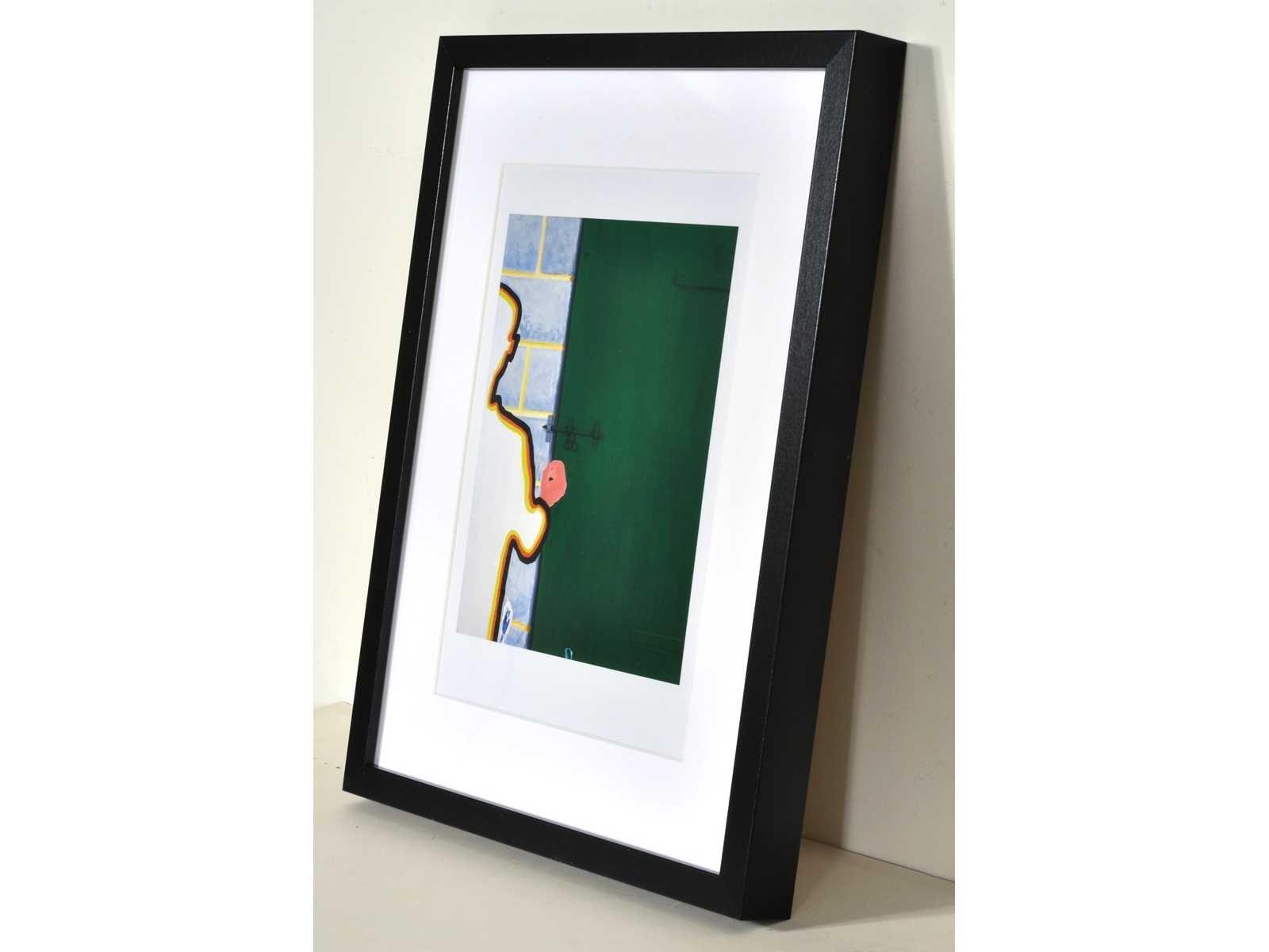 Uitgebracht op 500 exemplaren ter gelegenheid van de tentoonstelling "De Wereld van Roger Raveel" in de lokettenzaal van het Vlaams Parlement te Brussel – ingelijst met passe-partout (30x40 cm) Nee Kunstenaar: Roger Raveel Titel van werk: Man voor deur met grendel Techniek: offset Oplage: 500 Hoogte: 40cm Breedte: 30cm Frame: true