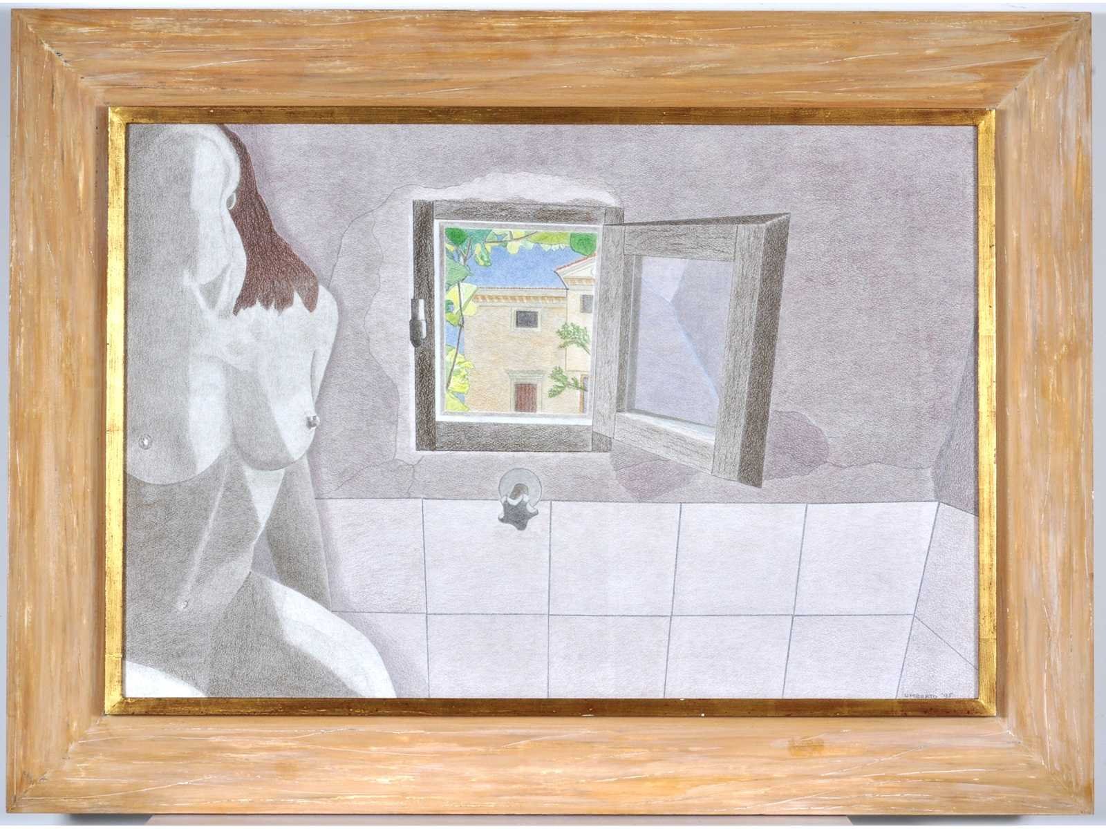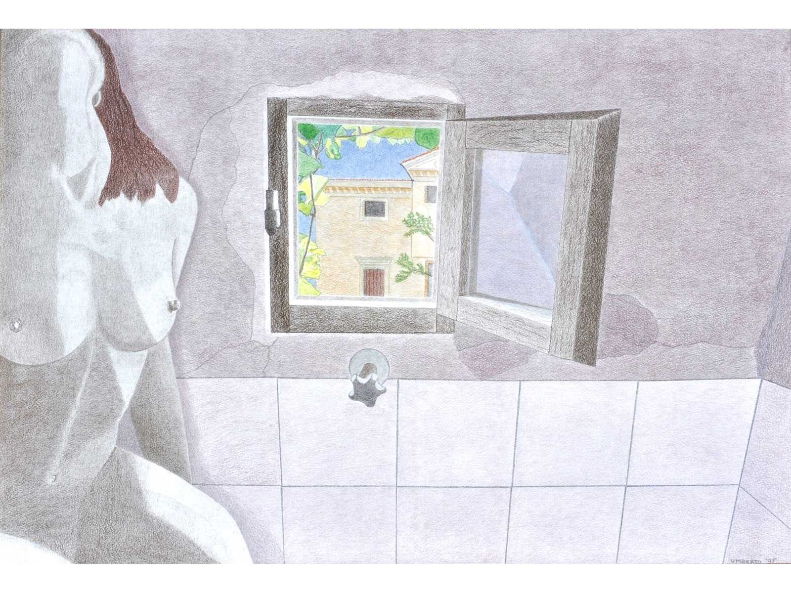 Umberto - naakt in badkamer - kleurpotloodtekening - 1995