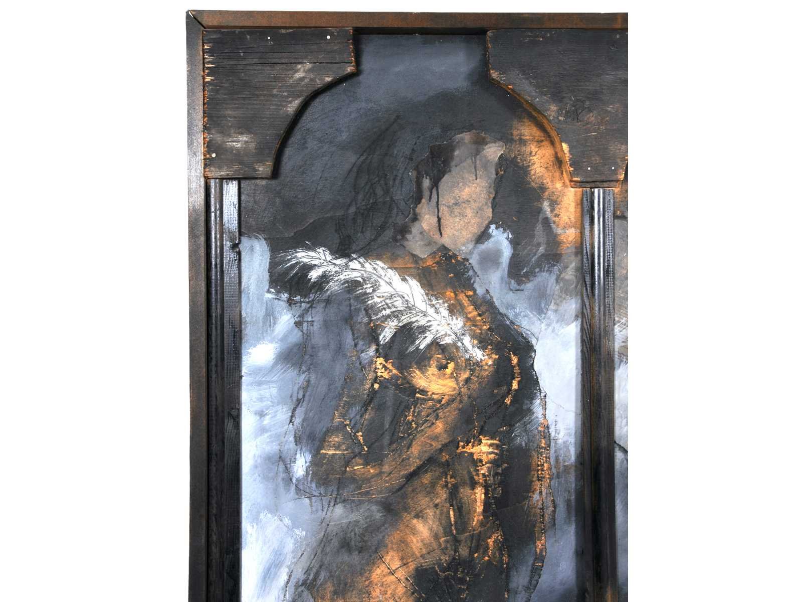 Prachtig hedendaags driedimensionaal werk - voor ons helaas onleesbaar signatuur Nee Kunstenaar: Onleesbaar signatuur Titel van werk: 3 Gratiën Datering: 1989 Techniek: Gemengde techniek op paneel Handtekening/oplage: true Gesigneerd: Gesigneerd, gedateerd en betiteld Hoogte incl. lijst: 126cm Breedte incl. lijst: 141cm Frame: true