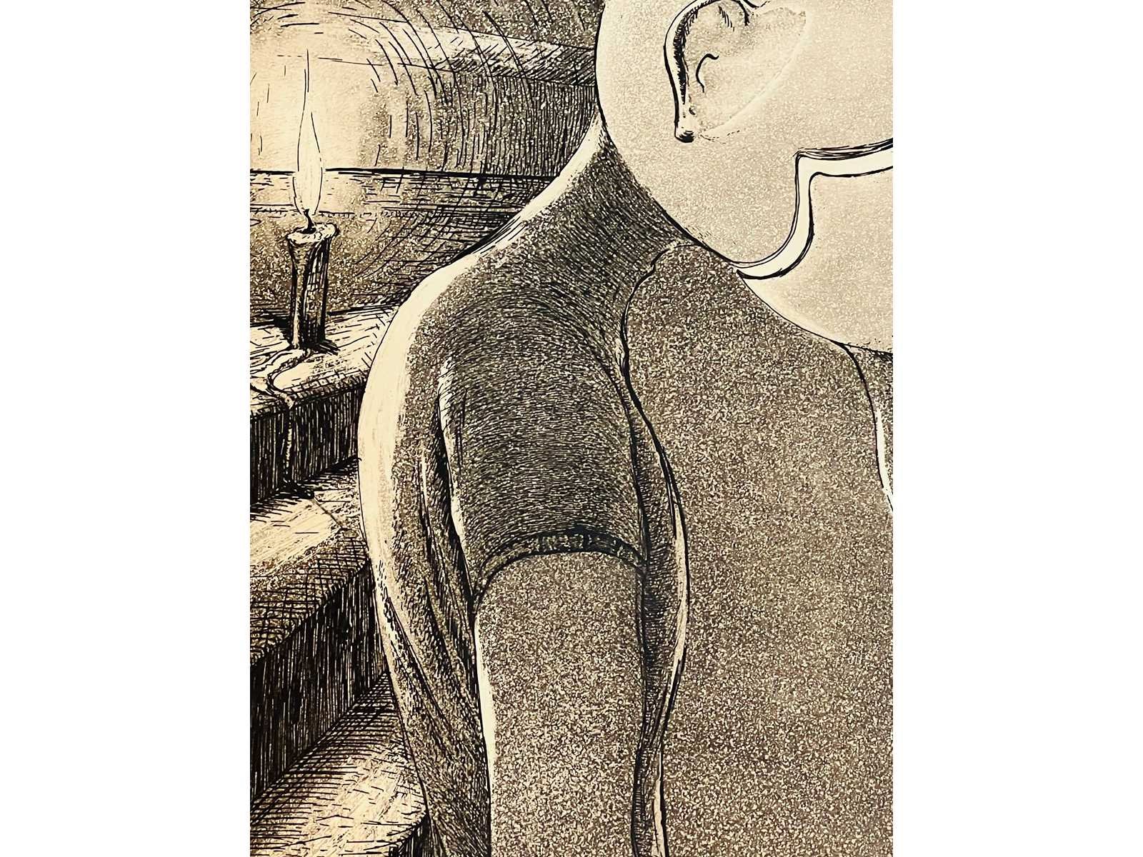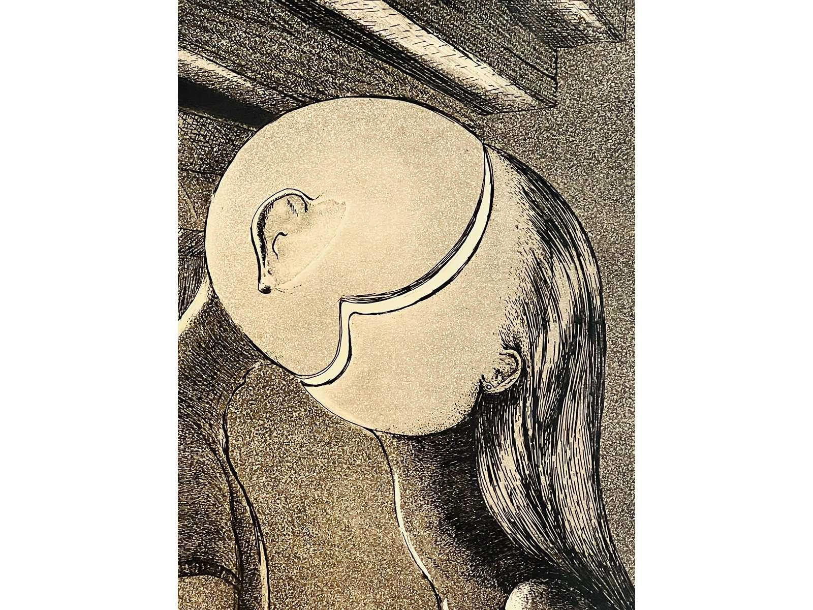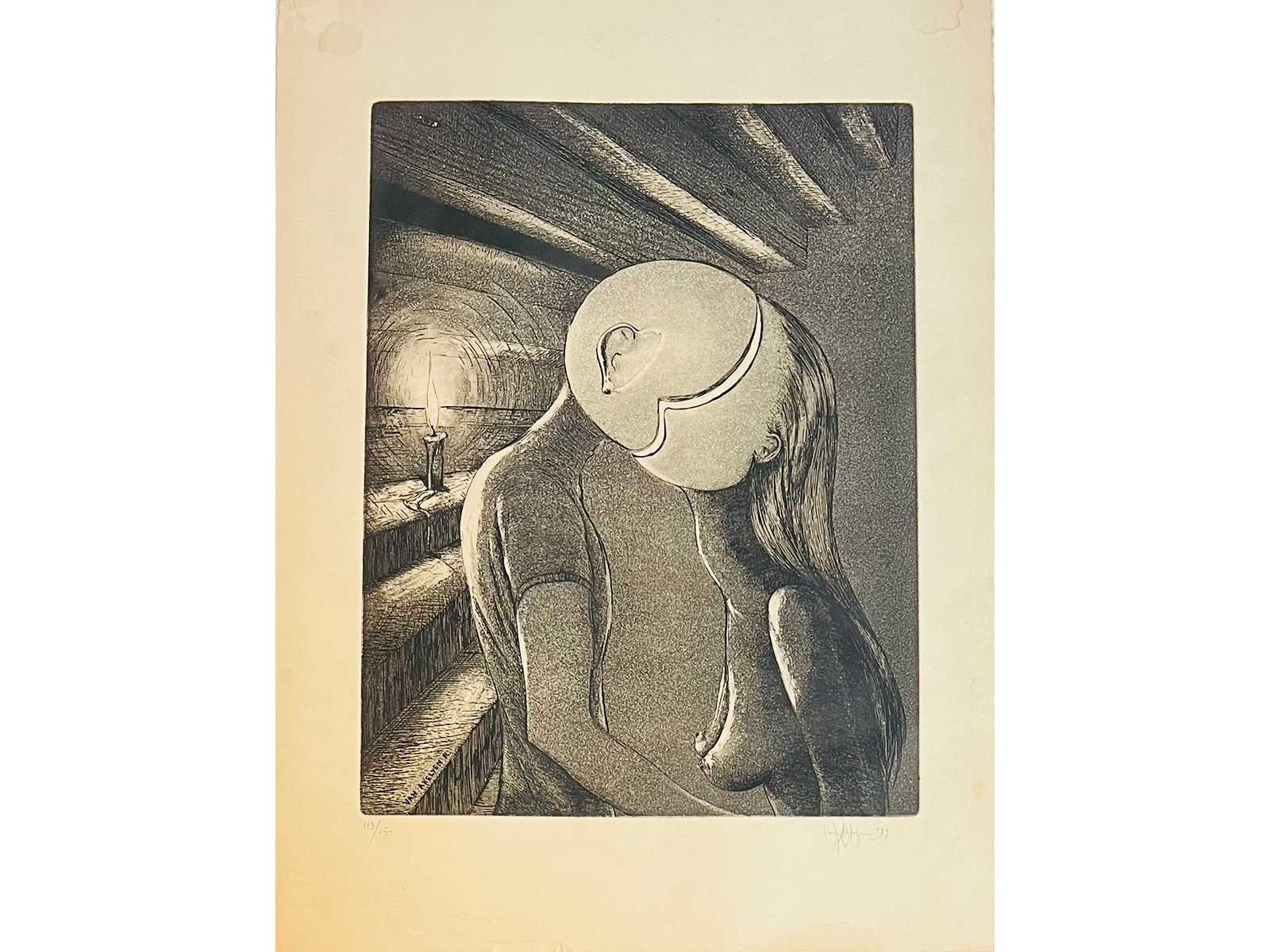 Zeldzame en mooie ets van Van Akelijen uit 1979 - getekend, gedateerd en genummerd in een oplage van 150 exemplaren - vergeling in de marges (weg te werken met passe-partout bij inlijsting) Nee Kunstenaar: Roger Van Akelijen (Antwerpen 1948) Periode: 1979 Techniek: ets Handtekening/oplage: true Oplage: 150 Gesigneerd: getekend Hoogte: 53cm Breedte: 39cm