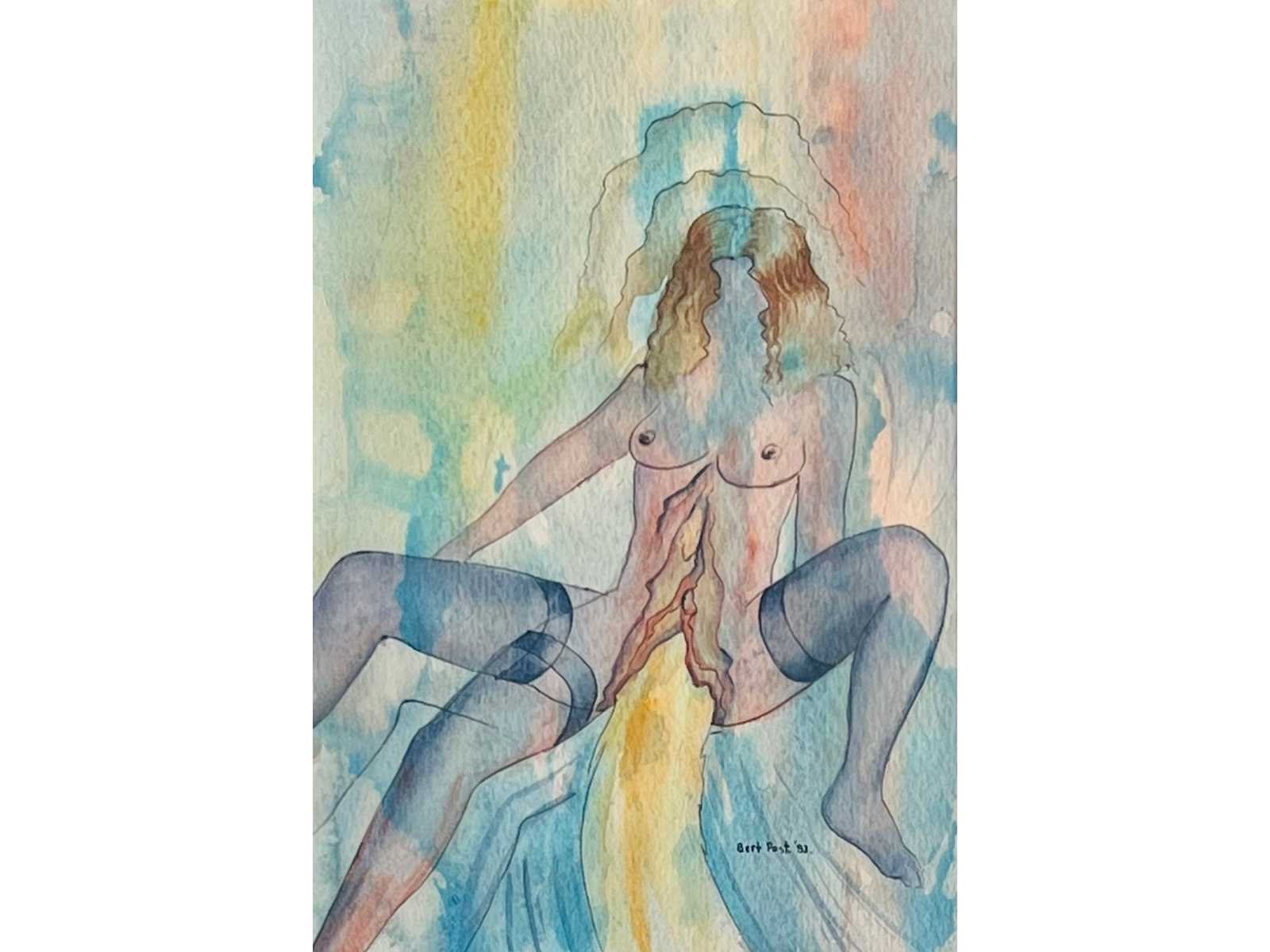 Originele aquarel - ingelijst in passe-partout (40x50 cm) Nee Kunstenaar: Bert Post Titel van werk: erotische compositie Techniek: aquarel op papier Handtekening/oplage: true Gesigneerd: getekend Hoogte: 29cm Breedte: 20cm