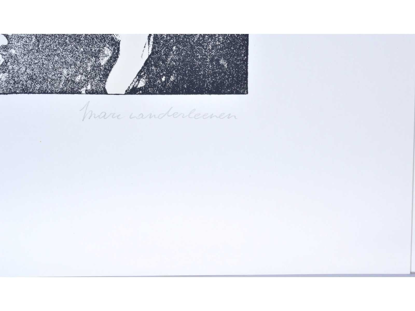 Mooie zeefdruk van Marc Vanderleenen - Zijn werk is getoond in onder meer Museum Dhont‑Dhaenens (Sint-Martens-Latem) in de tentoonstelling “Picture this: Marc Vanderleenen”- Drukatelier: Beca-Screen, Ekeren - Uitgever: Peter Bekaert, 1977 - In puntgave staat, nooit voorheen ingelijst, steeds in de grafiekmap bewaard - Bijgevoegd: bijhorende tekst op een afzonderlijk blad Nee Kunstenaar: Marc Vanderleenen (Mechelen, 1952) Periode: 1977 Datering: 1977 Techniek: Zeefdruk Handtekening/oplage: true Oplage: 214/250 Gesigneerd: Gesigneerd en genummerd Hoogte: 55cm Breedte: 42cm