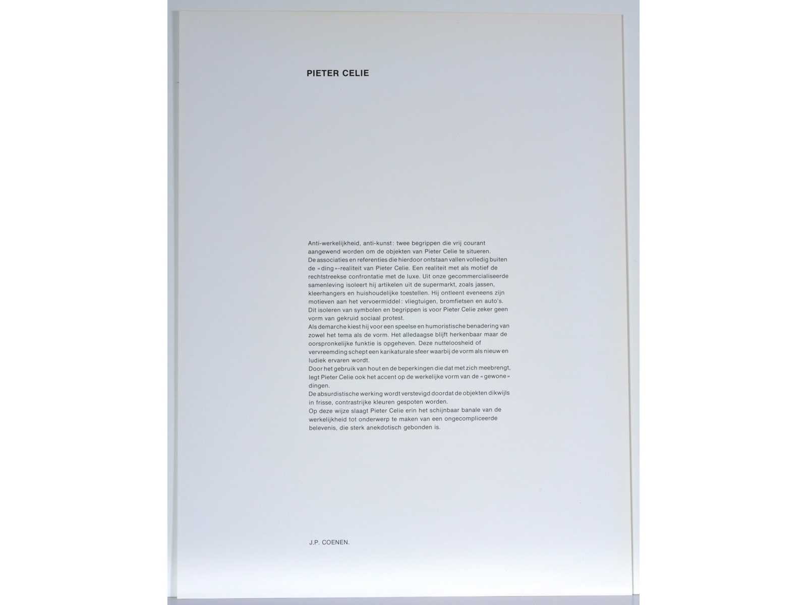 Drukatelier: Beca-Screen, Ekeren - Uitgever: Peter Bekaert, 1977 - In puntgave staat, nooit voorheen ingelijst, steeds in de grafiekmap bewaard - Bijgevoegd: bijhorende tekst op een afzonderlijk blad Nee Kunstenaar: Pieter Celie (Eindhoven 1942 - Borgerhout 2015) Periode: 1977 Datering: 1977 Techniek: Zeefdruk Handtekening/oplage: true Oplage: 214/250 Gesigneerd: Gesigneerd en genummerd Hoogte: 55cm Breedte: 42cm