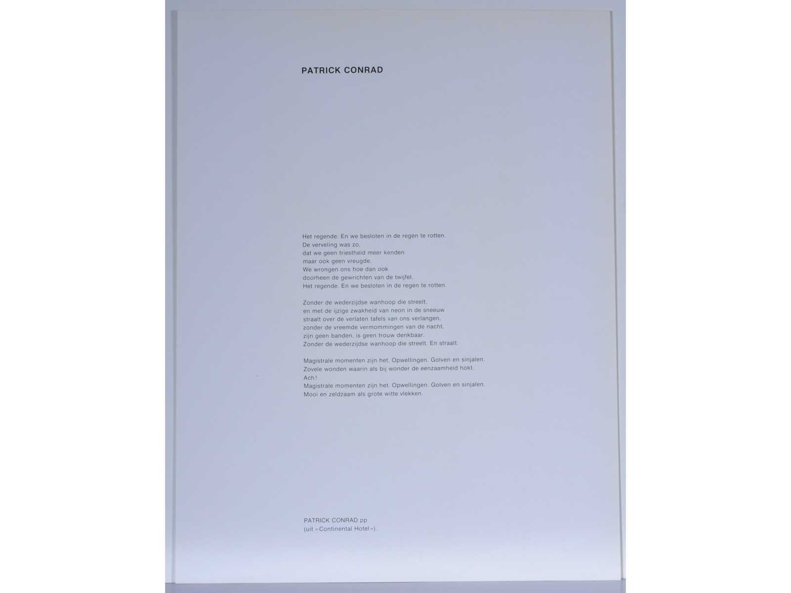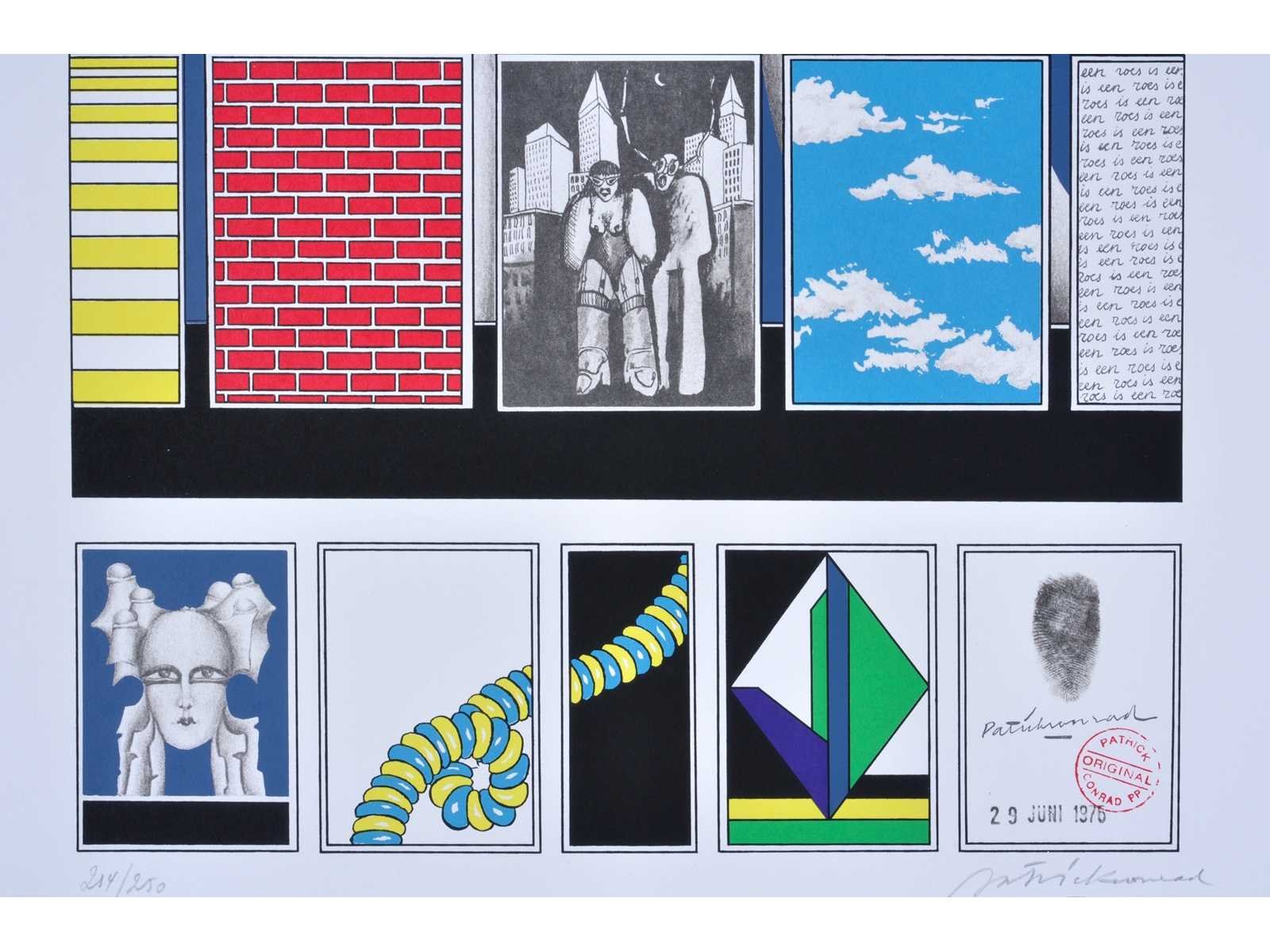 Drukatelier: Beca-Screen, Ekeren - Uitgever: Peter Bekaert, 1977 - In puntgave staat, nooit voorheen ingelijst, steeds in de grafiekmap bewaard - Bijgevoegd: bijhorende tekst op een afzonderlijk blad Nee Kunstenaar: Patrick Conrad (Wilrijk, 1945) Periode: 1977 Datering: 1977 Techniek: Zeefdruk Handtekening/oplage: true Oplage: 214/250 Gesigneerd: Gesigneerd en genummerd Hoogte: 55cm Breedte: 42cm