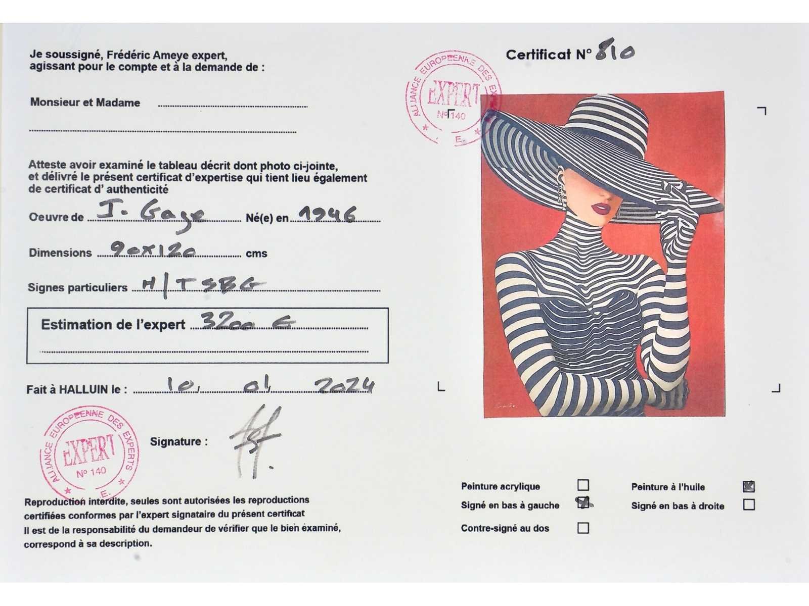 Origineel groot werk - ingelijst in baklijst - wordt geleverd met certificaat Nee Kunstenaar: Jack Gage (1946) Titel van werk: Chapeau Techniek: olieverf op doek Handtekening/oplage: true Gesigneerd: Gesigneerd Hoogte: 120cm Breedte: 90cm Frame: true